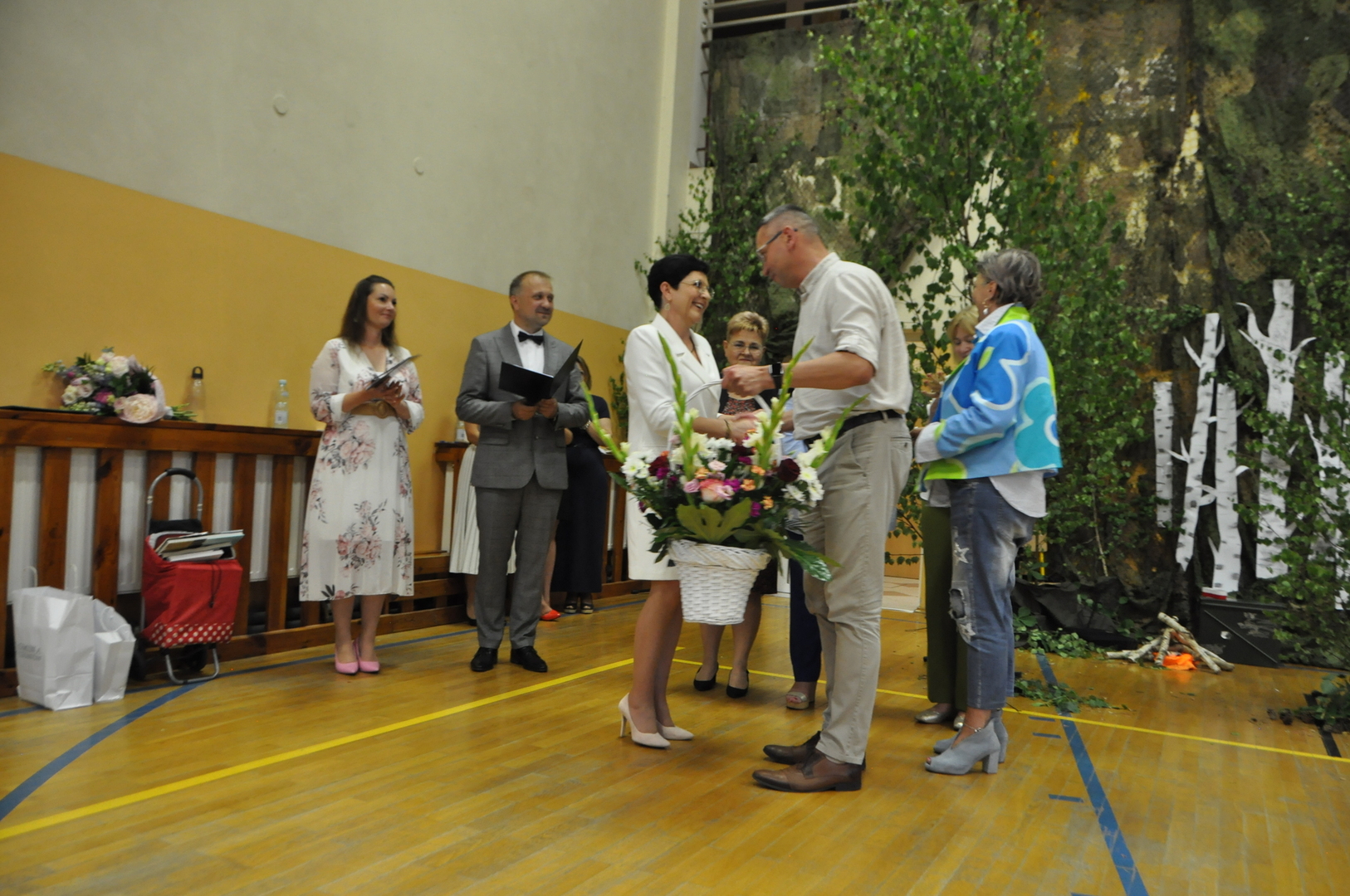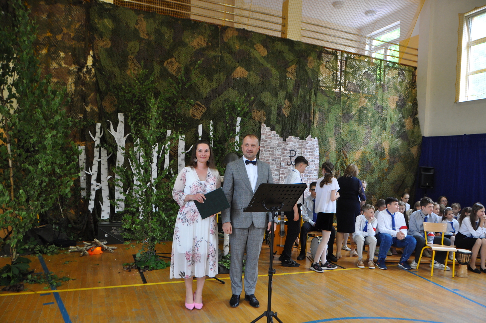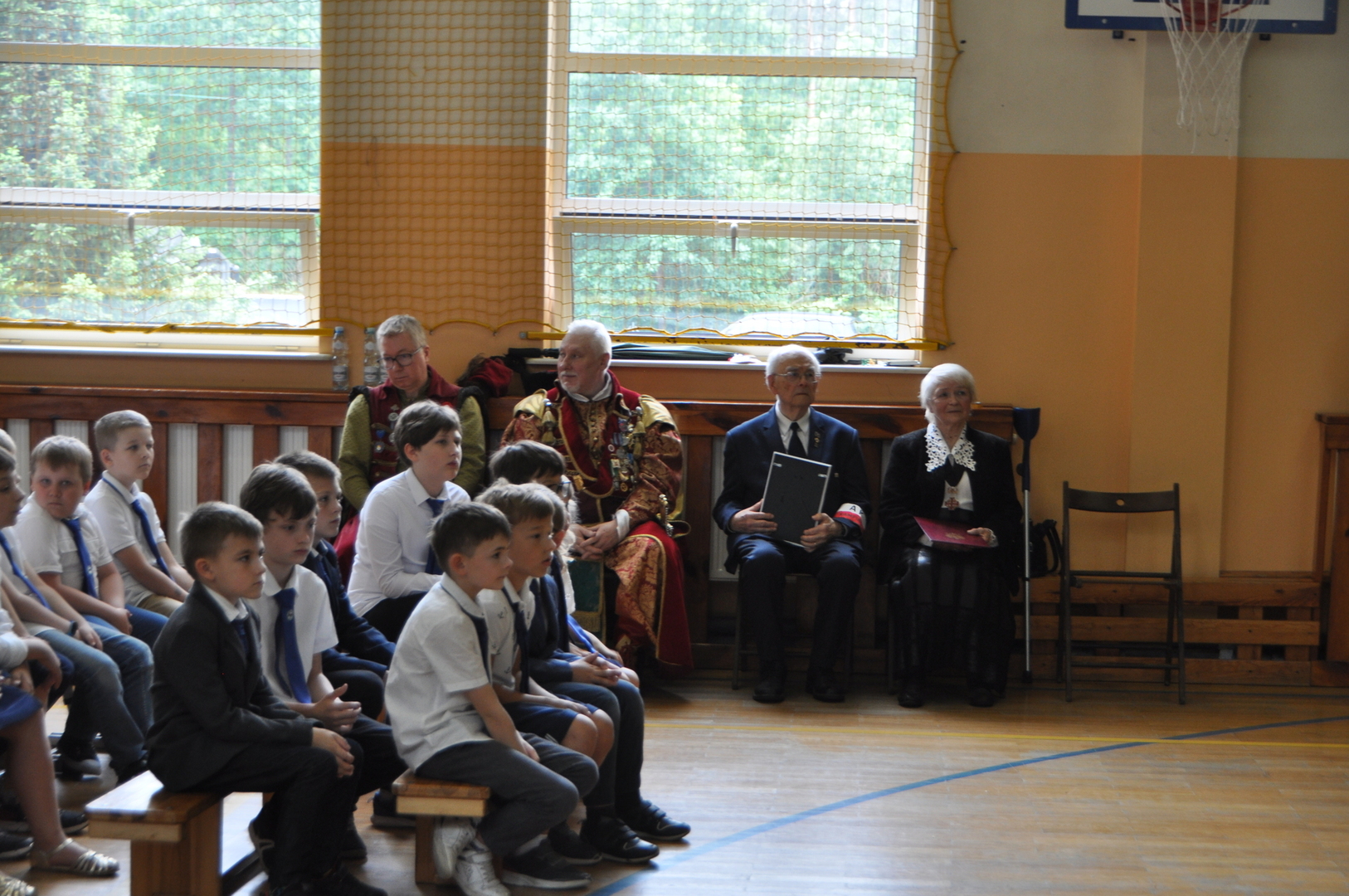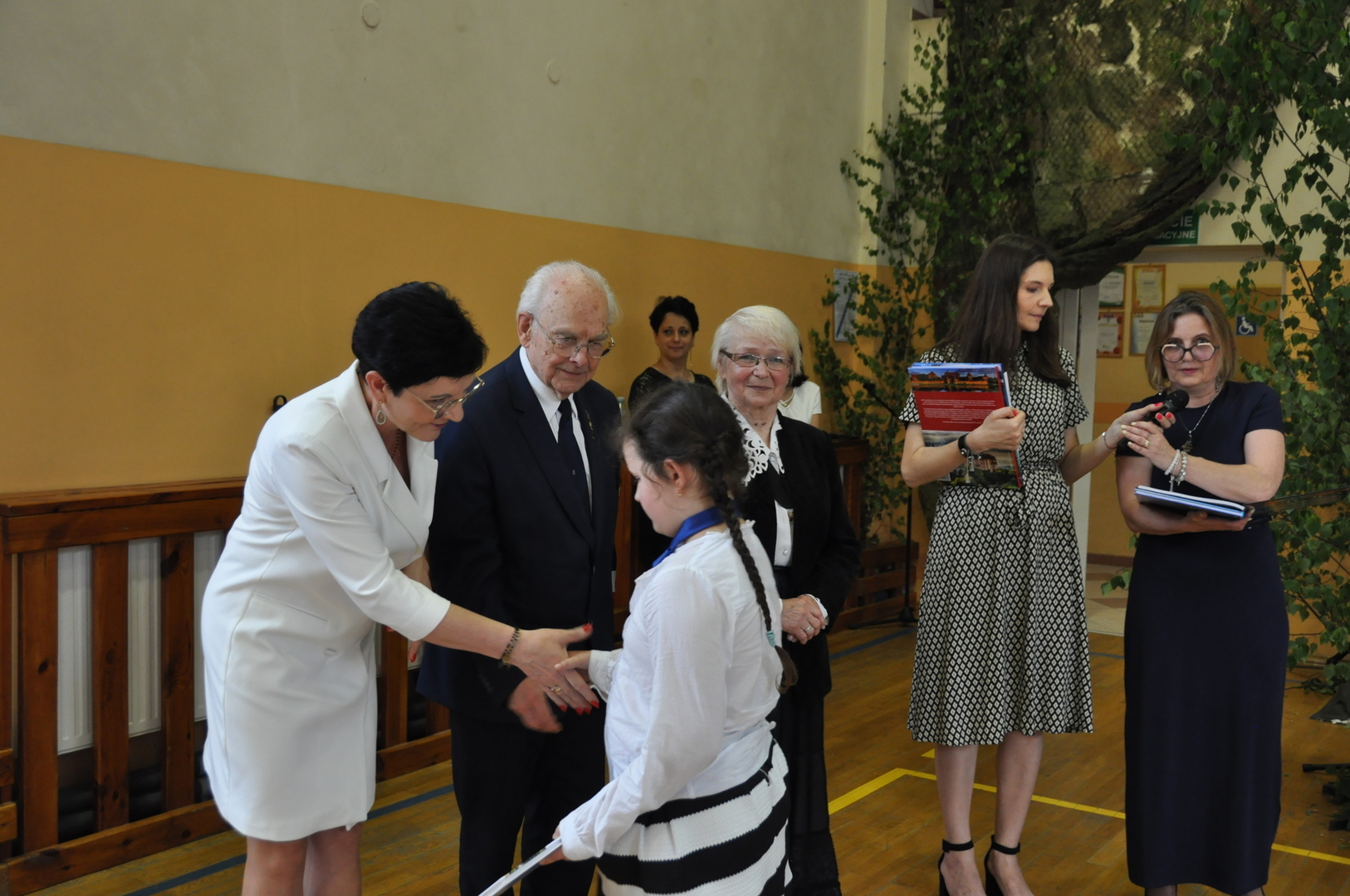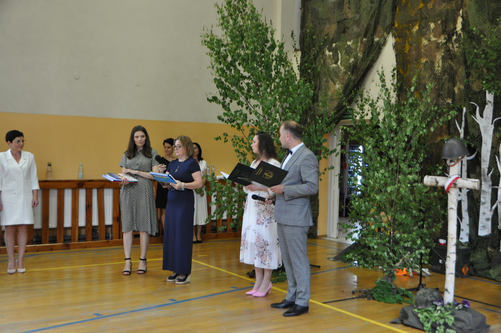 Jednym z ważniejszych punktów Jubileuszu było uroczyste przekazanie p. Dyrektor Annie Tarsale sztandaru Rady Pamięci Niepodległej Rzeczypospolitej Kampinoskiej przez panią Prezes RPNRK p. Urszulę Przymus. Ta chwila zapisała się na kartach historii szkoły złotymi literami ze względu na to, że otrzymaliśmy ważną pamiątkę związaną z działalnością żołnierzy Grupy Kampinos na naszym terytorium. W obecności wszystkich zebranych uczniowie złożyli uroczystą rotę przysięgi.