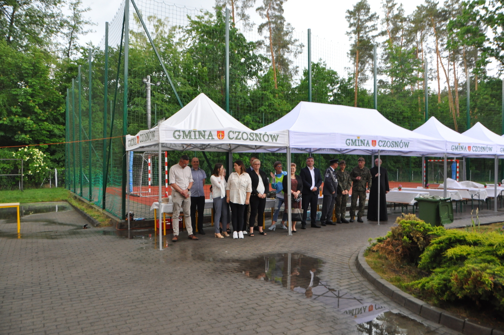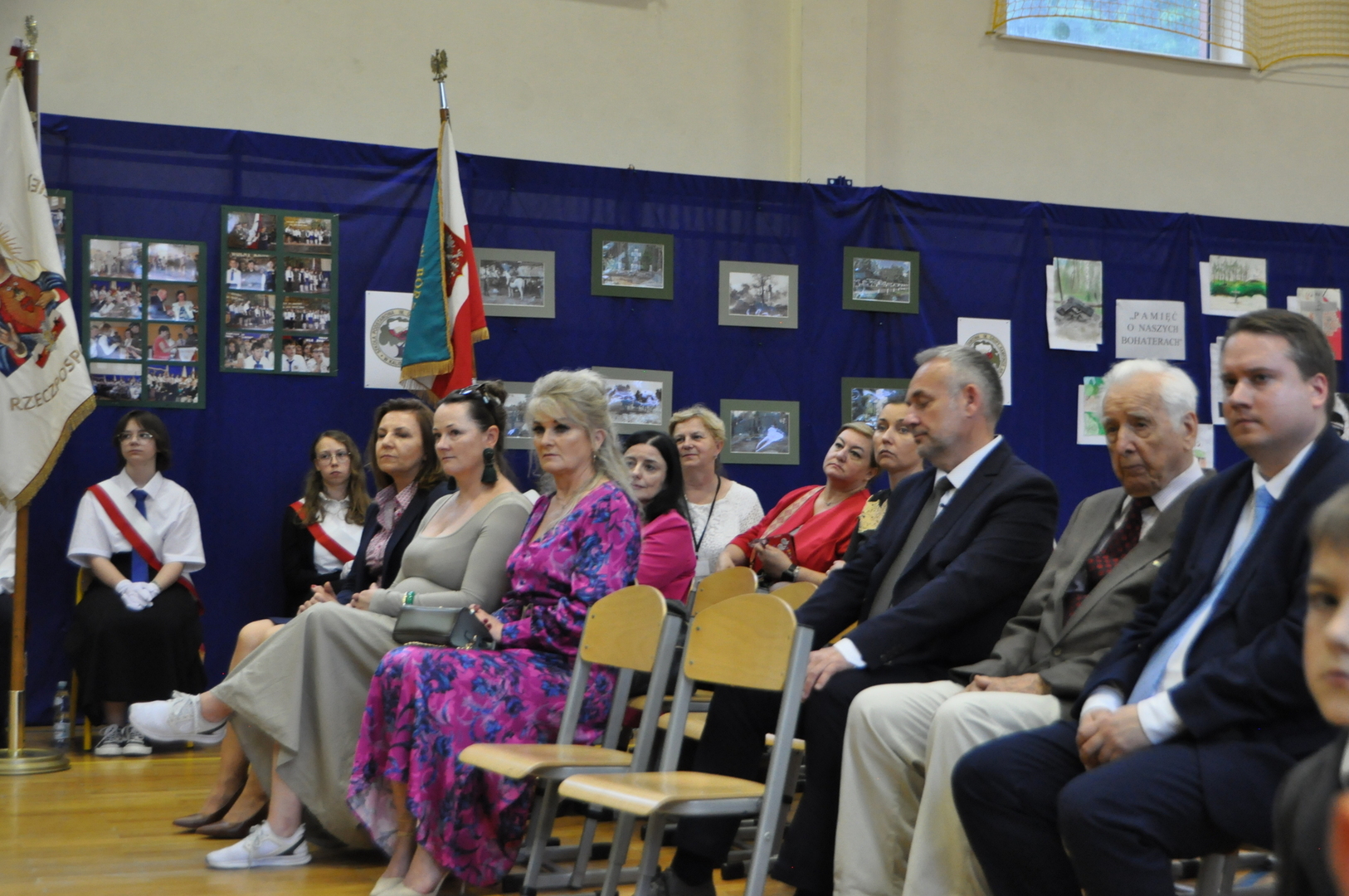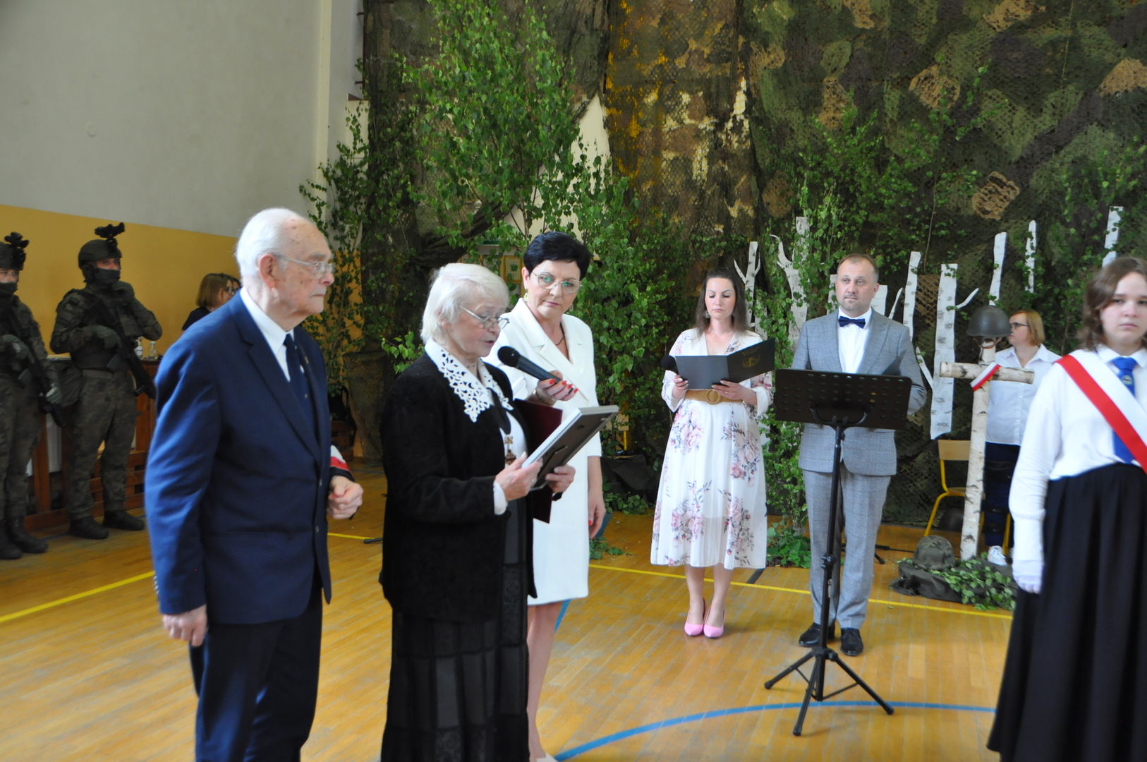 W uroczystości wzięli udział zaproszeni goście, w tym szczególni uczestnicy, kombatanci, żołnierze, przedstawiciele organu prowadzącego szkołę- Gminy Czosnów, dyrektorzy szkół Gminy Czosnów, Wicedyrektor Szkoły Podstawowej im. Armii Krajowej Grupy Kampinos AK w Borzęcinie, przedstawiciele instytucji, organizacji, nauczyciele, uczniowie i rodzice.