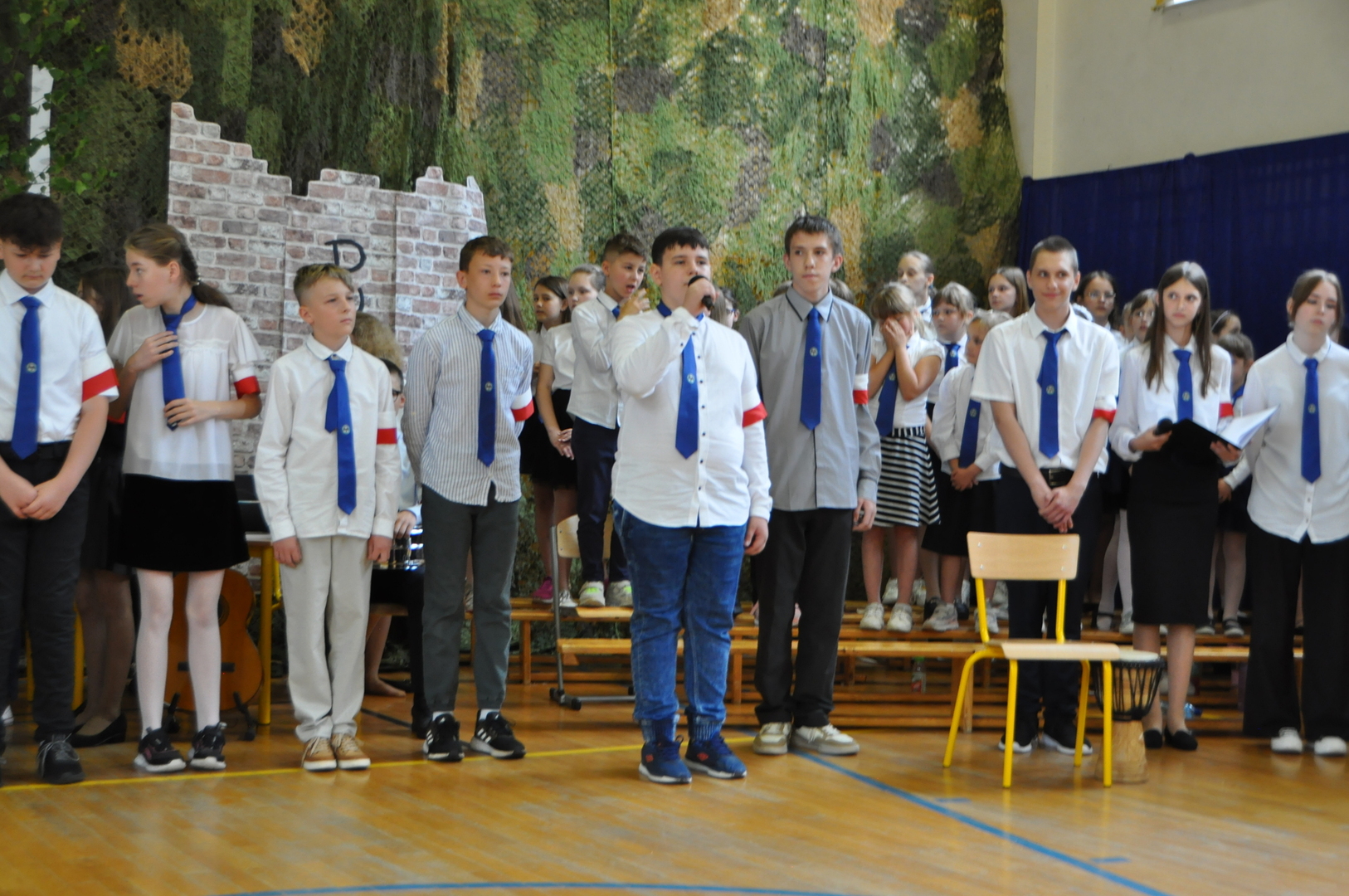 Po uroczystym przekazaniu sztandaru uczniowie naszej szkoły pod kierunkiem nauczycieli p. Ewy Dudek i p. Anny Michalak zaprezentowali specjalnie przygotowany program artystyczny.