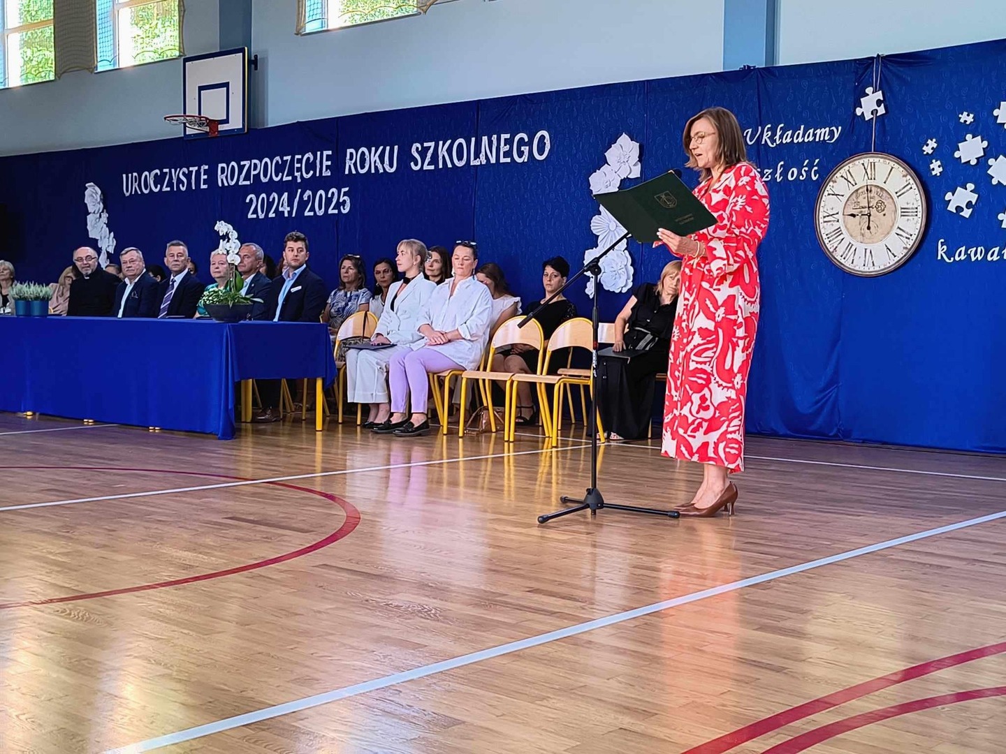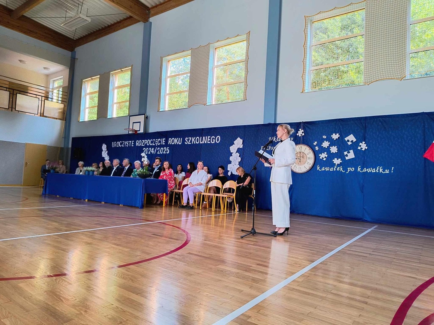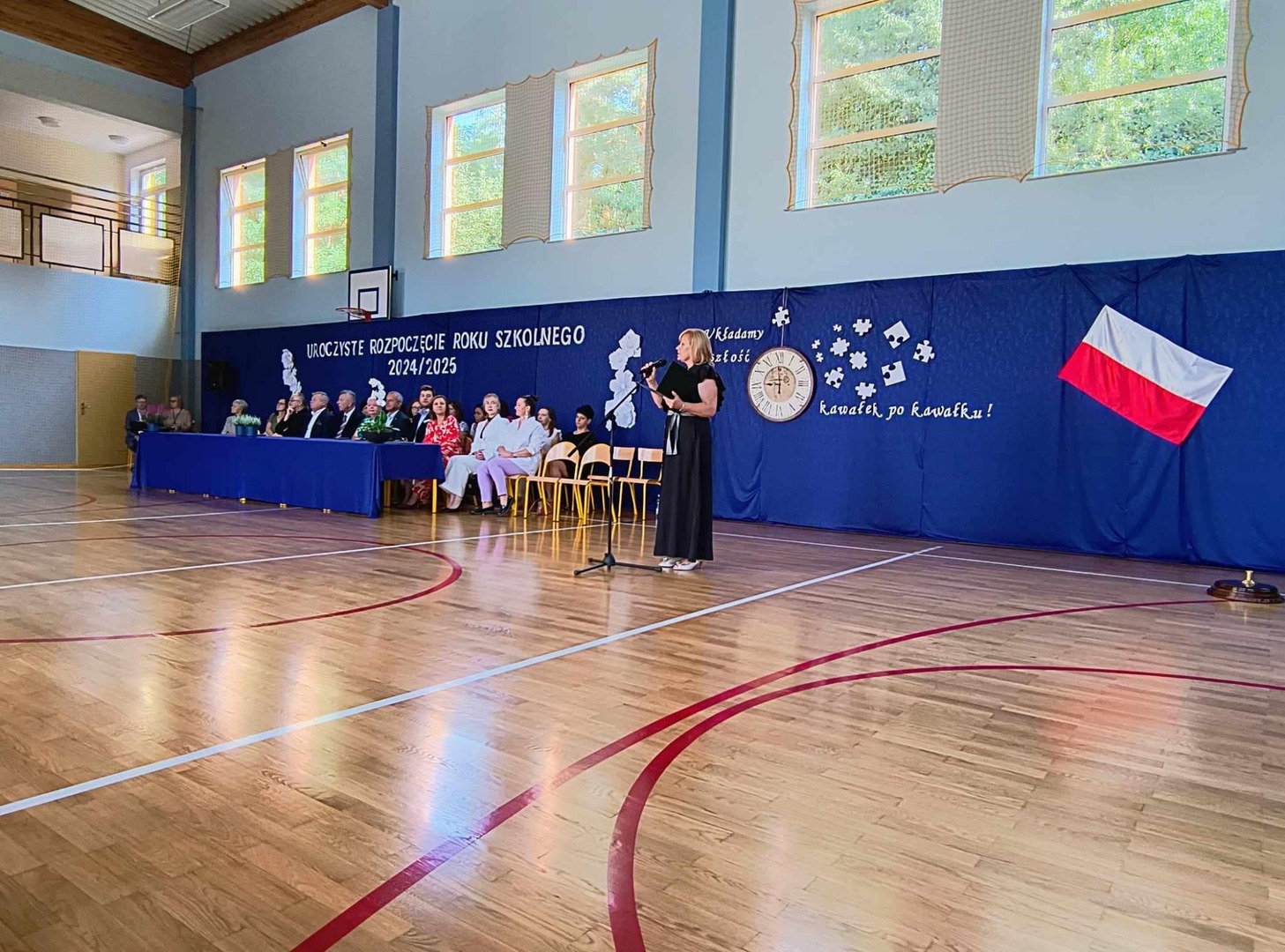 Pani Dyrektor, w swoim przemówieniu, podkreśliła znaczenie wspólnego zaangażowania w edukację oraz życie szkoły. Wyraziła nadzieję, że nadchodzący rok przyniesie wiele sukcesów, inspirujących doświadczeń oraz że będzie pełen wzajemnej życzliwości i wsparcia. Podziękowała również za ciepłe przyjęcie i wyraziła chęć współpracy ze wszystkimi członkami szkolnej społeczności.