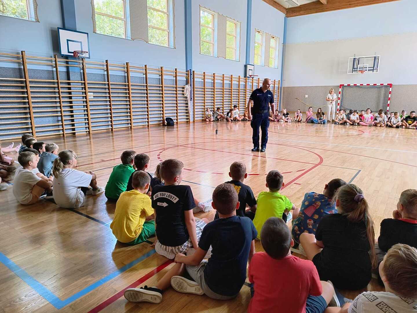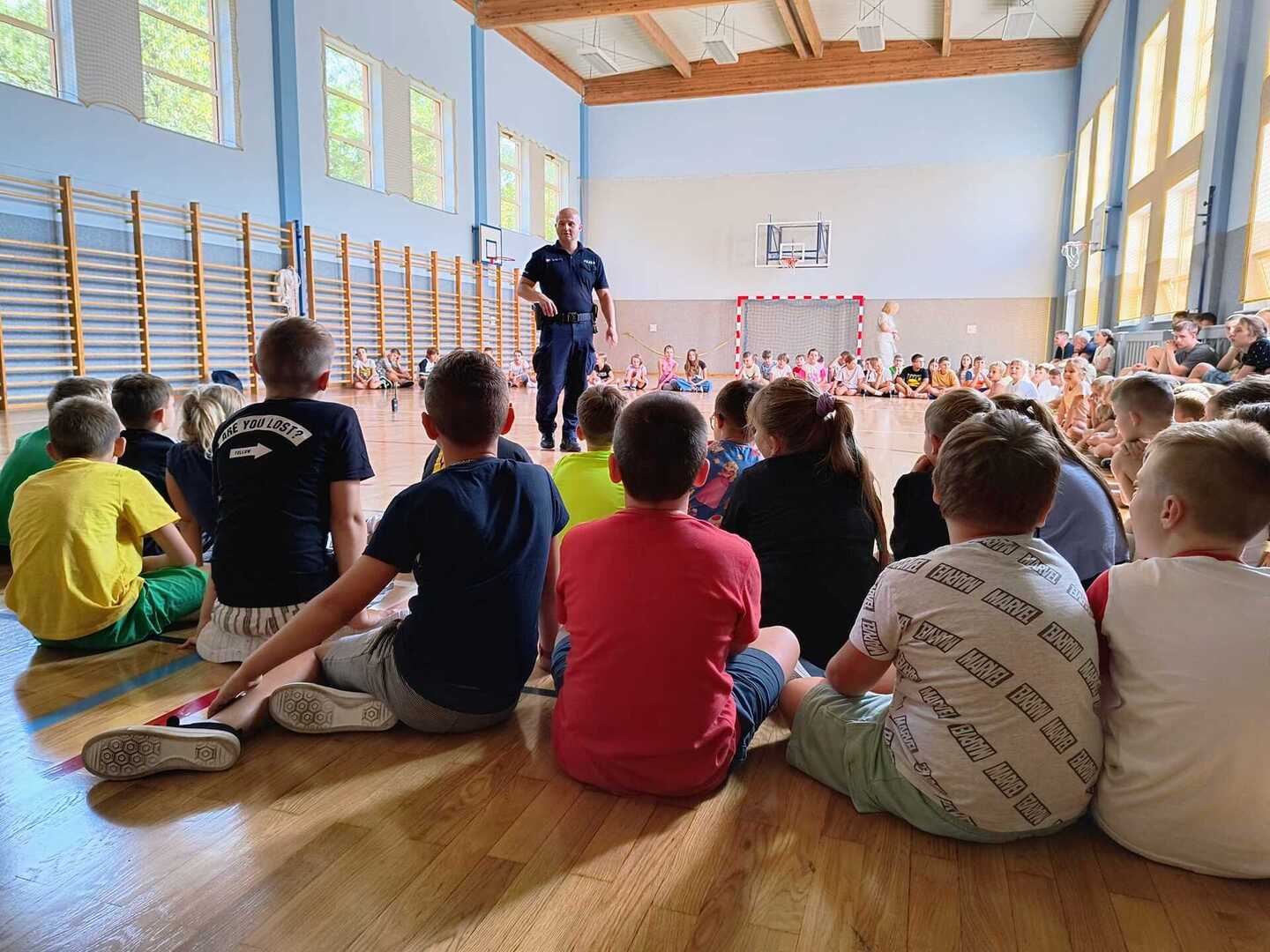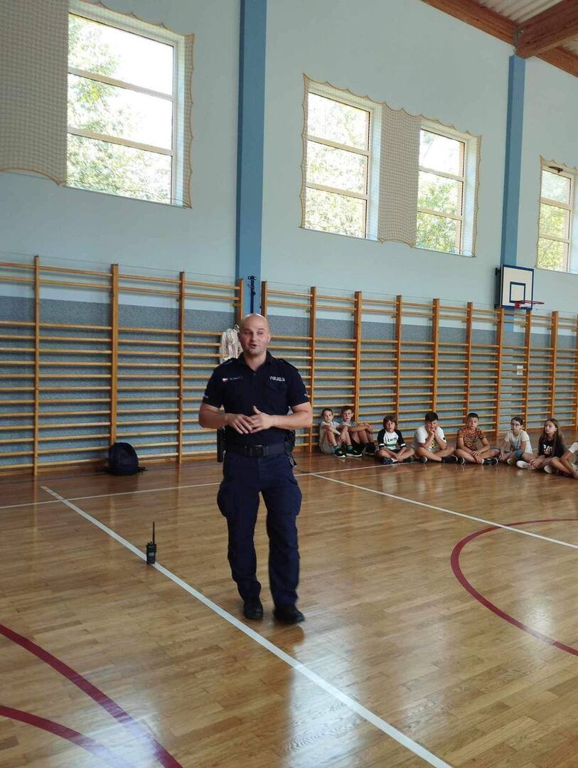 W piątek (06.09.2024 r.) naszą szkołę odwiedził Pan aspirant Kamil Maciejko z Komisariatu Policji w Czosnowie.