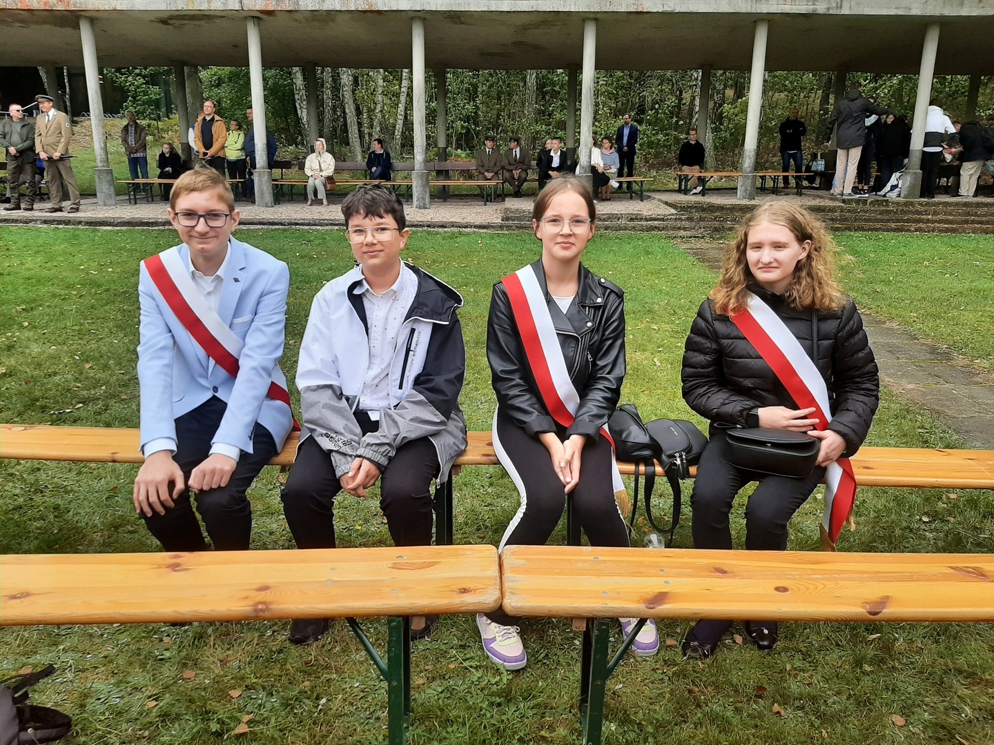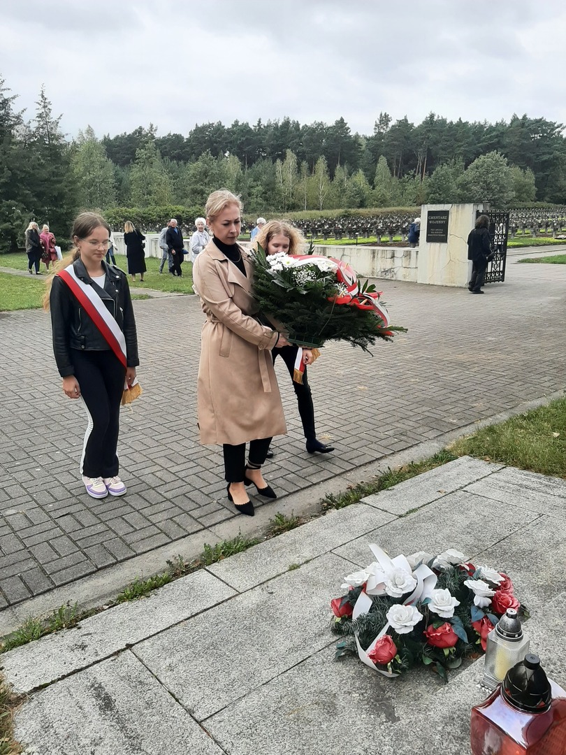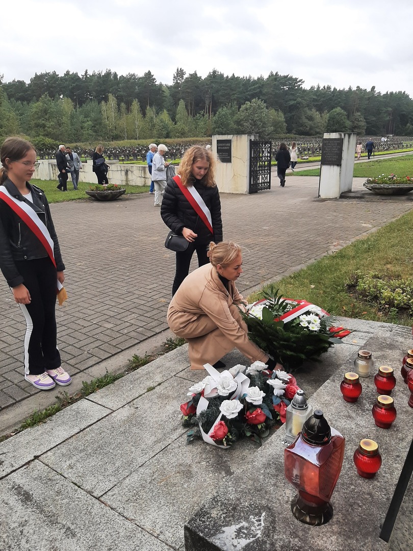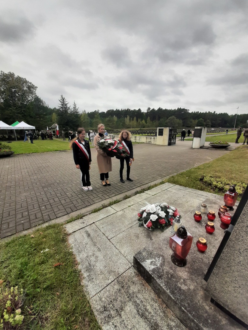 W niedzielę (14.09.2024 r.) uczniowie reprezentujący naszą szkołę w poczcie sztandarowym wzięli udział w kolejnej uroczystości patriotycznej upamiętniającej 85 rocznicę wybuchu II wojny światowej oraz ofiary egzekucji w Puszczy Kampinoskiej. Tym razem centralnym punktem uroczystości był cmentarz w Palmirach.