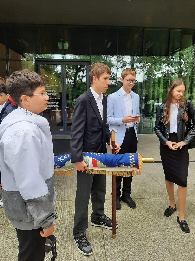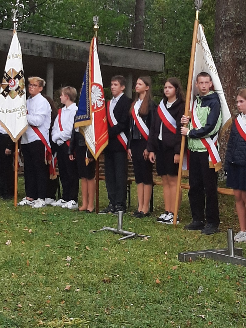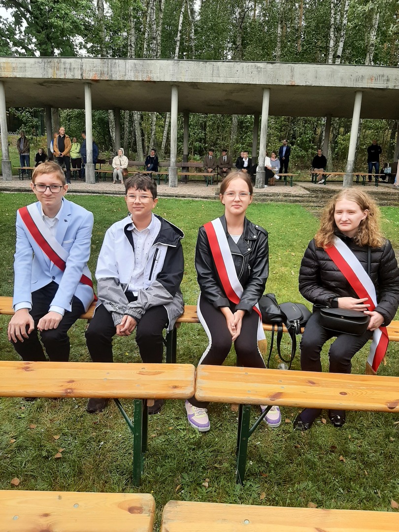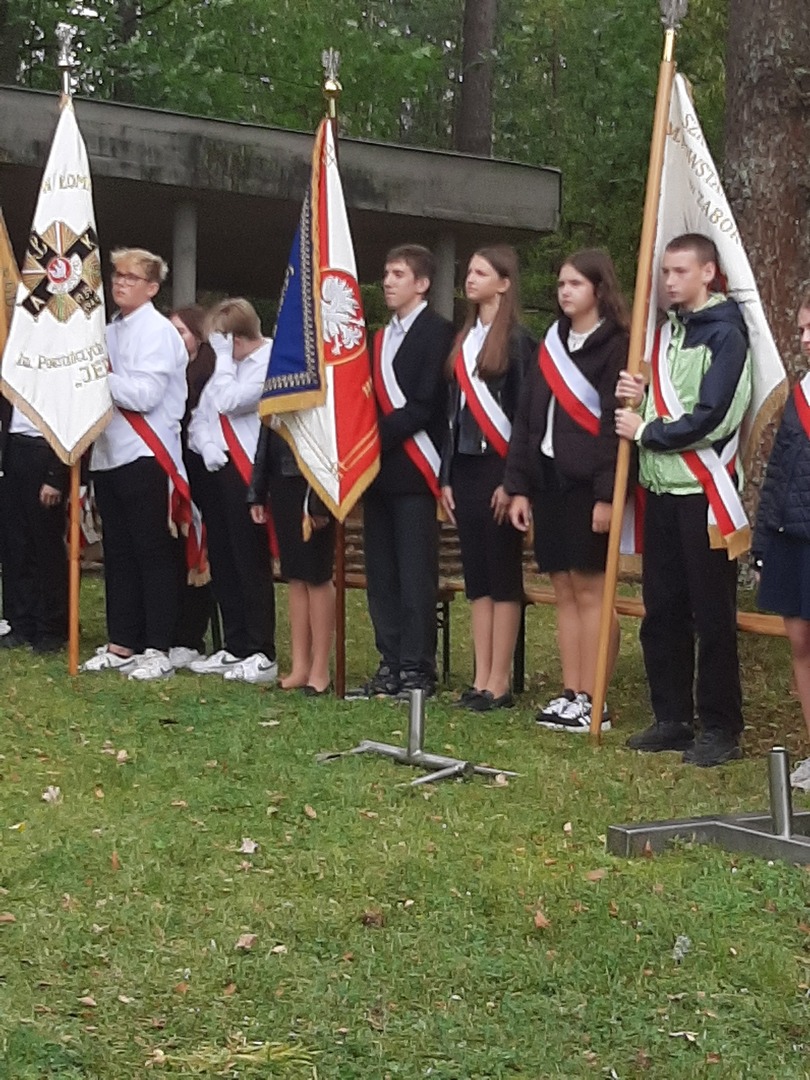 W niedzielę (14.09.2024 r.) uczniowie reprezentujący naszą szkołę w poczcie sztandarowym wzięli udział w kolejnej uroczystości patriotycznej upamiętniającej 85 rocznicę wybuchu II wojny światowej oraz ofiary egzekucji w Puszczy Kampinoskiej. Tym razem centralnym punktem uroczystości był cmentarz w Palmirach.