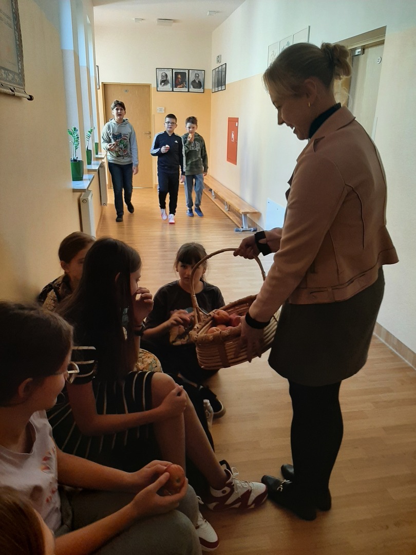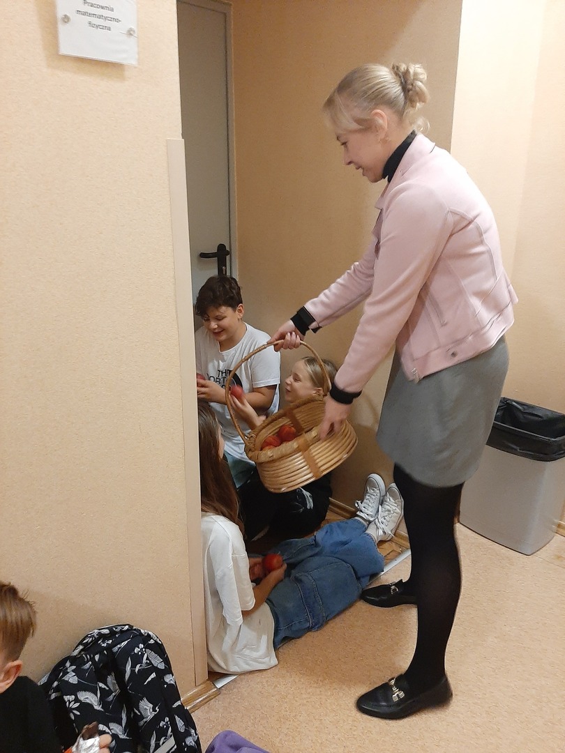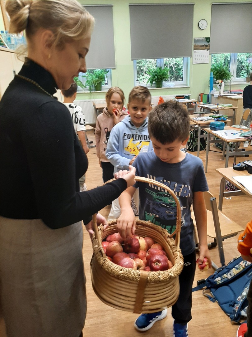 Na każdego ucznia i pracownika czekało słodkie i pyszne jabłuszko :)