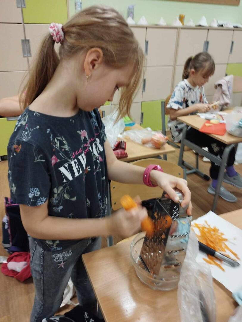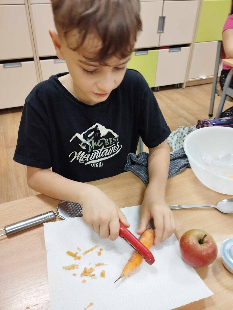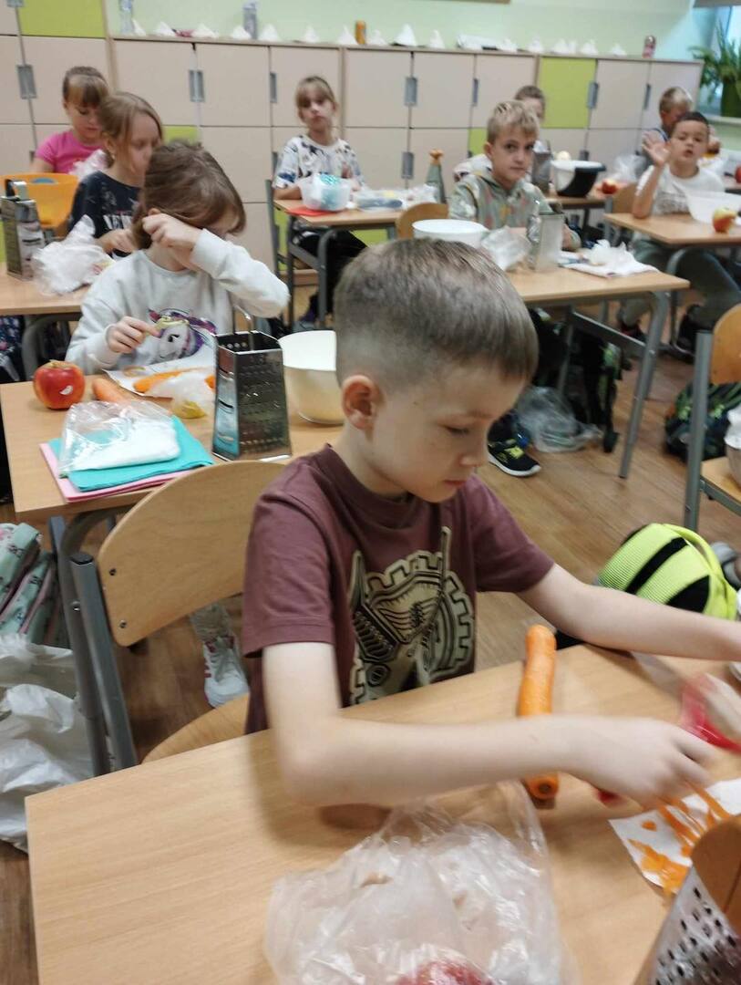 We wtorek (08.10.2024 r.) uczniowie klasy II zamienil swoją salę lekcyjną w kuchnię. Dzieci pod czujnym okiem p. Agnieszki przyrządzili pyszną sałatkę jabłkowo - marchewkową.