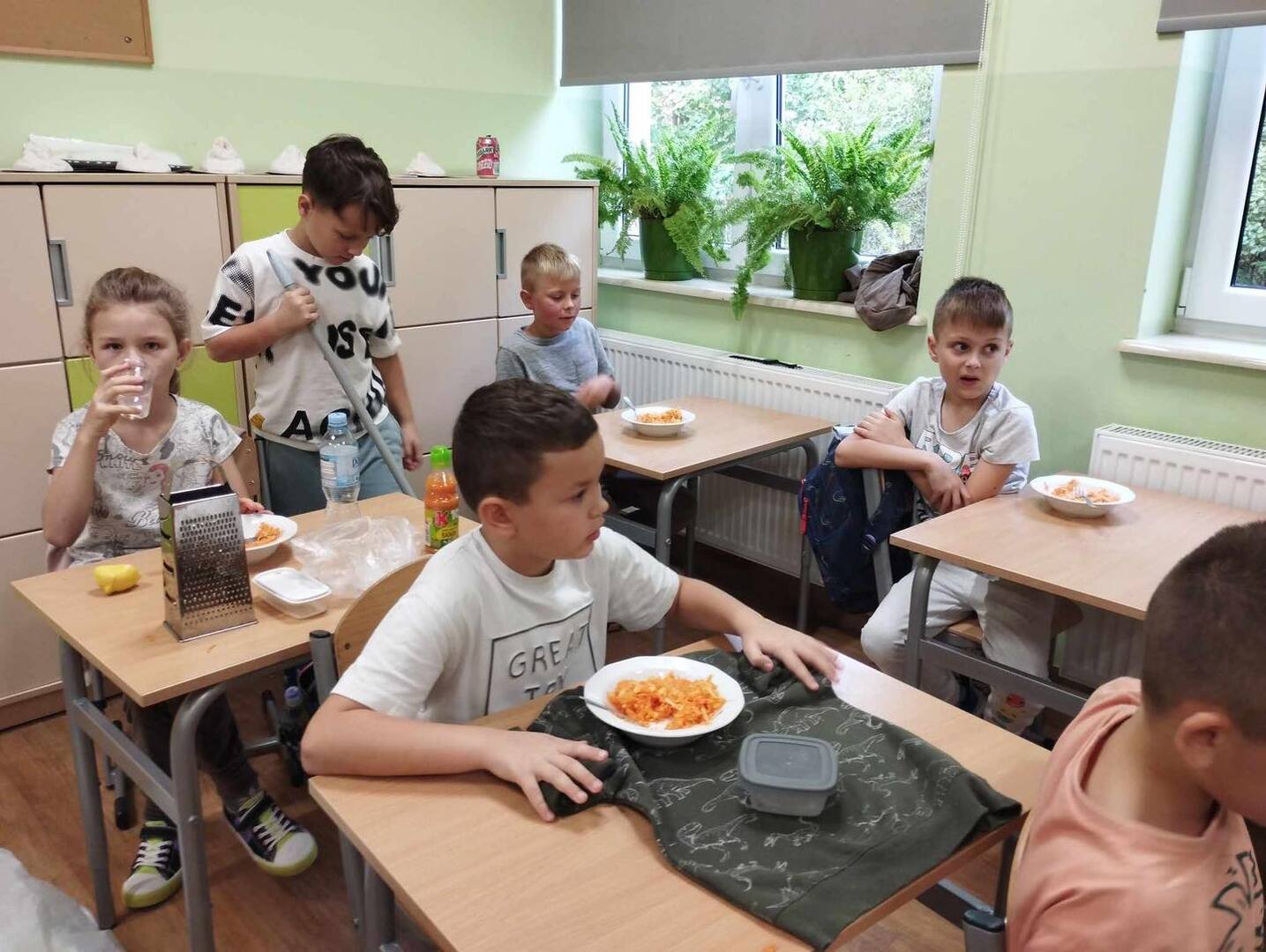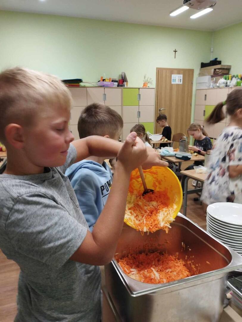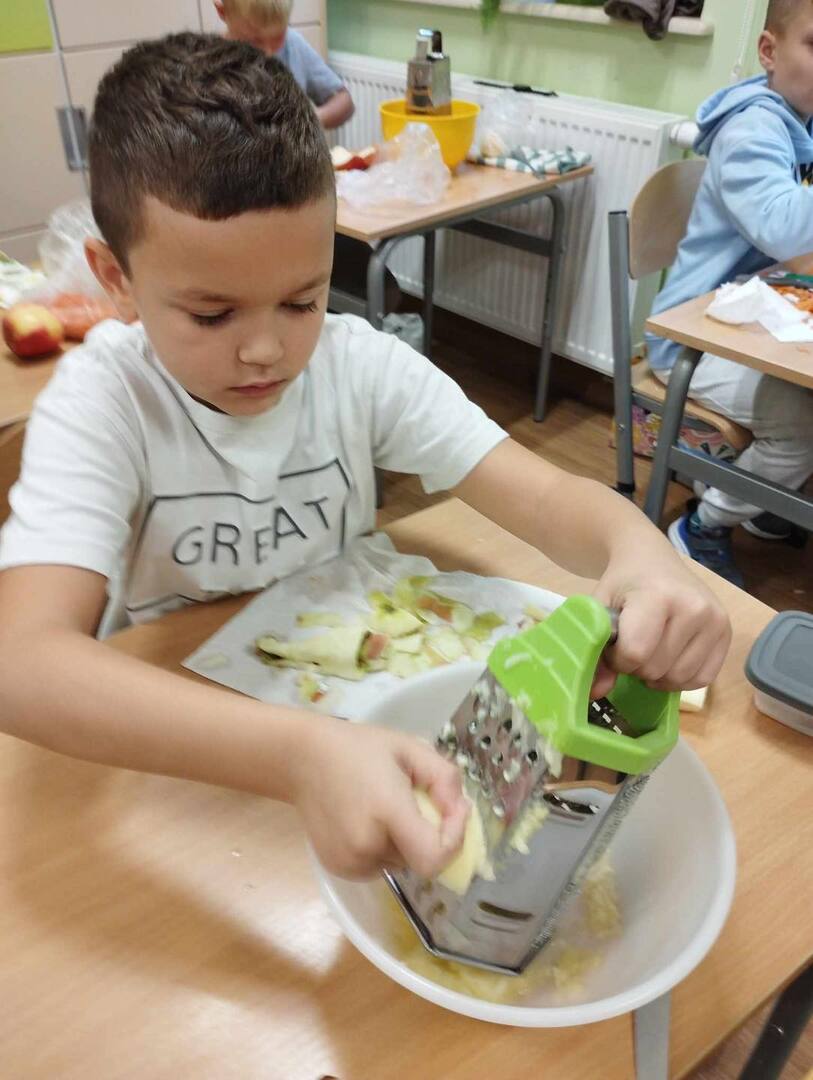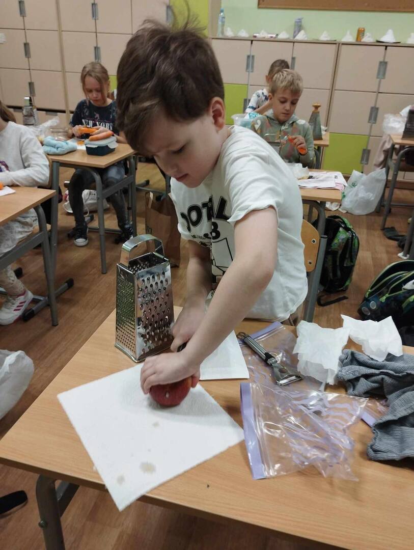 Uczniowie z wielkim zapałem obierali, ścierali oraz doprawiali swoje smaczne danie i przy okazji wykazali sie dużą cierpliwością i zaangażowanie.