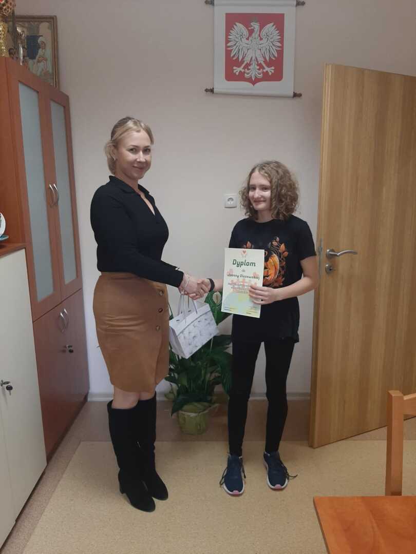 Nasza uczennica Joanna Olszewska z kl. 8 otrzymała dyplom oraz nagrodę za zaprojektowanie logo Szkolnego Klubu Wolontariatu. Znajduje się ono na koszulkach SKW. Oto efekt końcowy. Gratulujemy