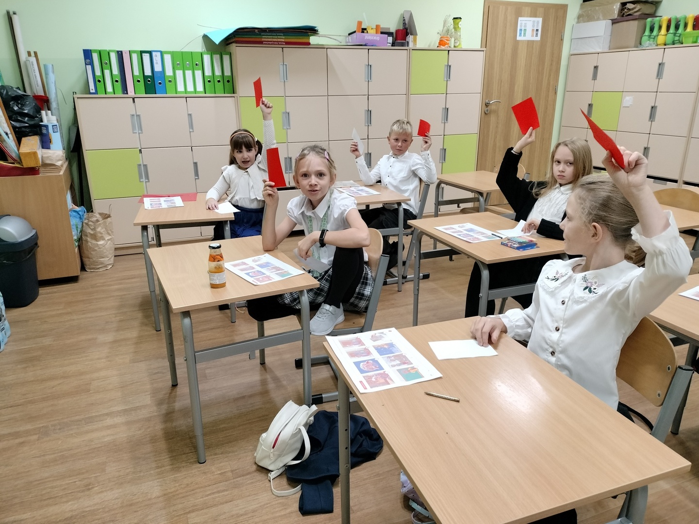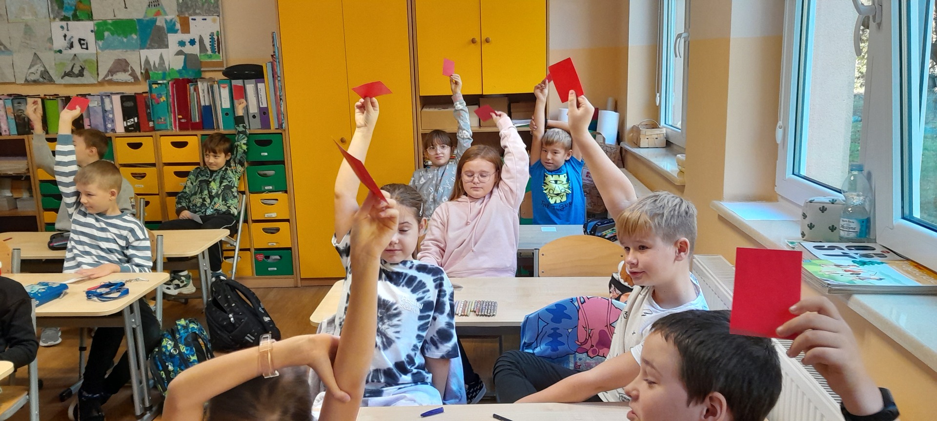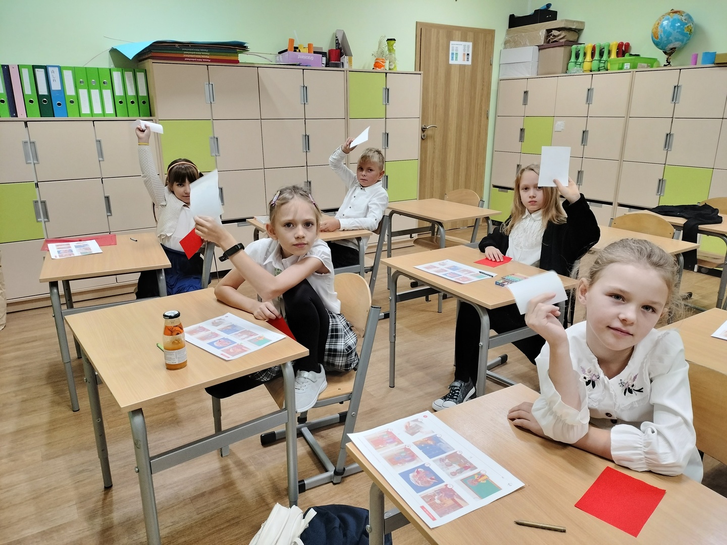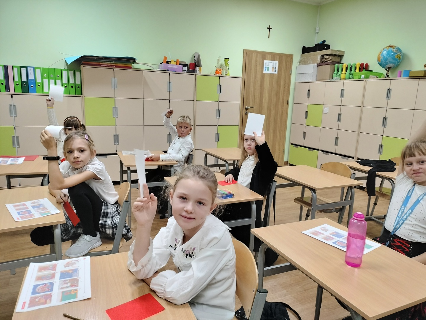 W klasach zostały przeprowadzone lekcje według scenariusza „Bohaterem być kiedyś i dziś” nadesłane w materiałach edukacyjnych, w ramach którego dzieci: