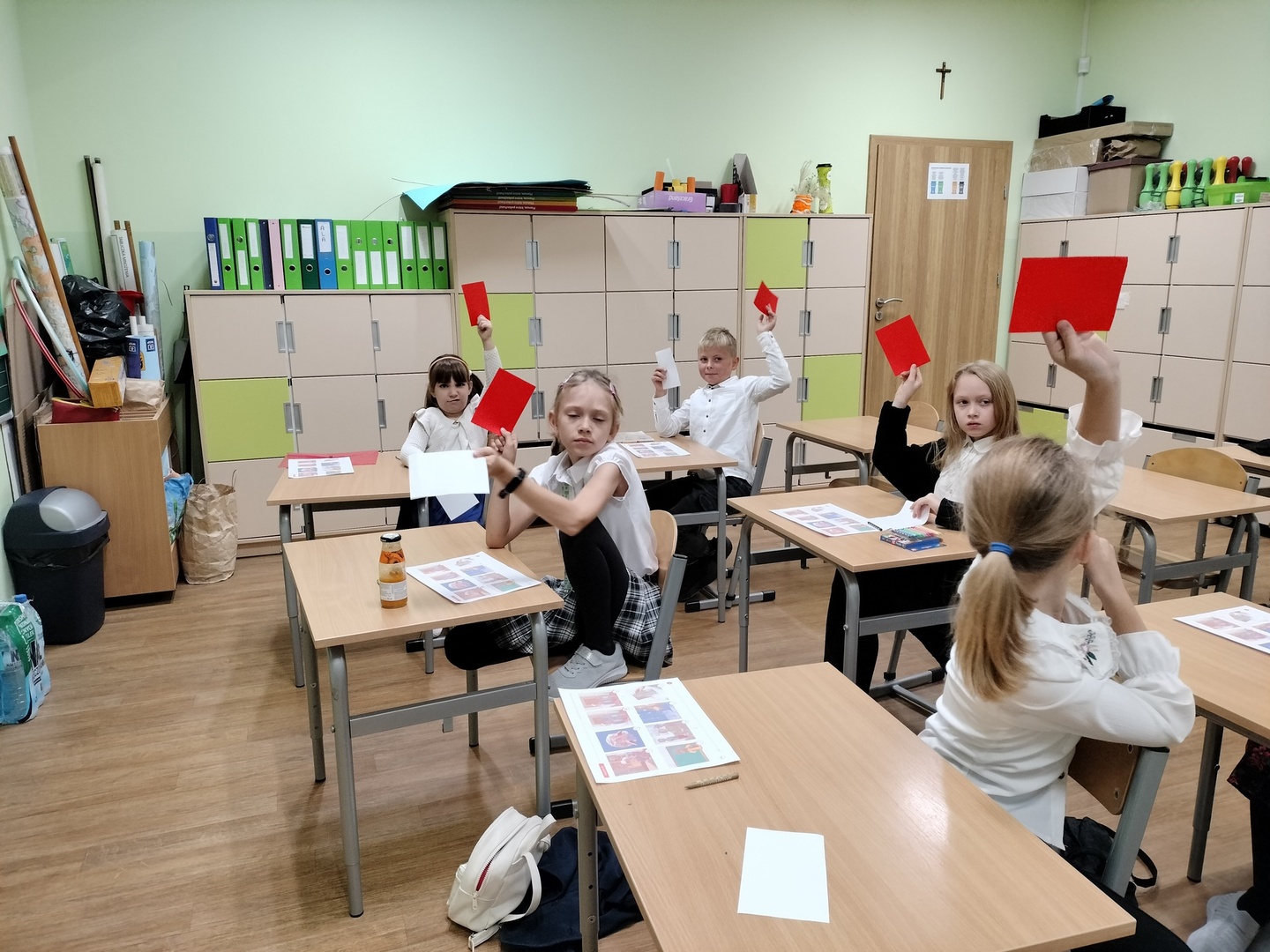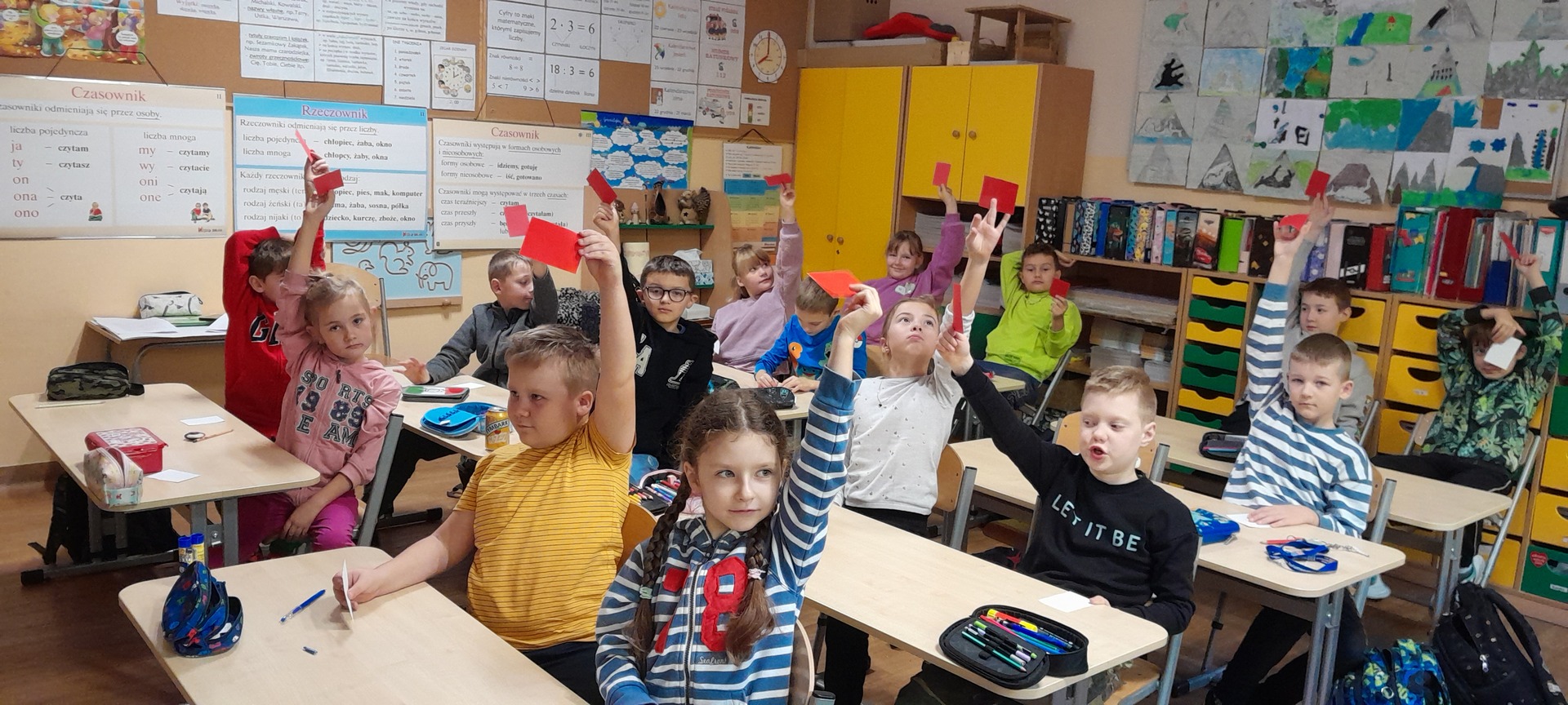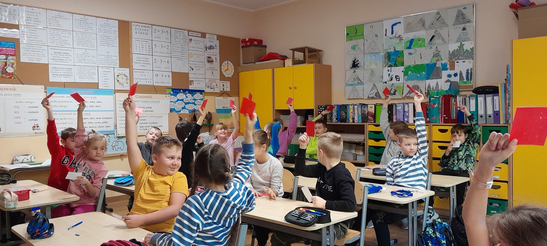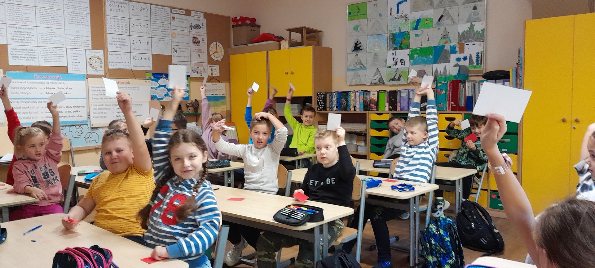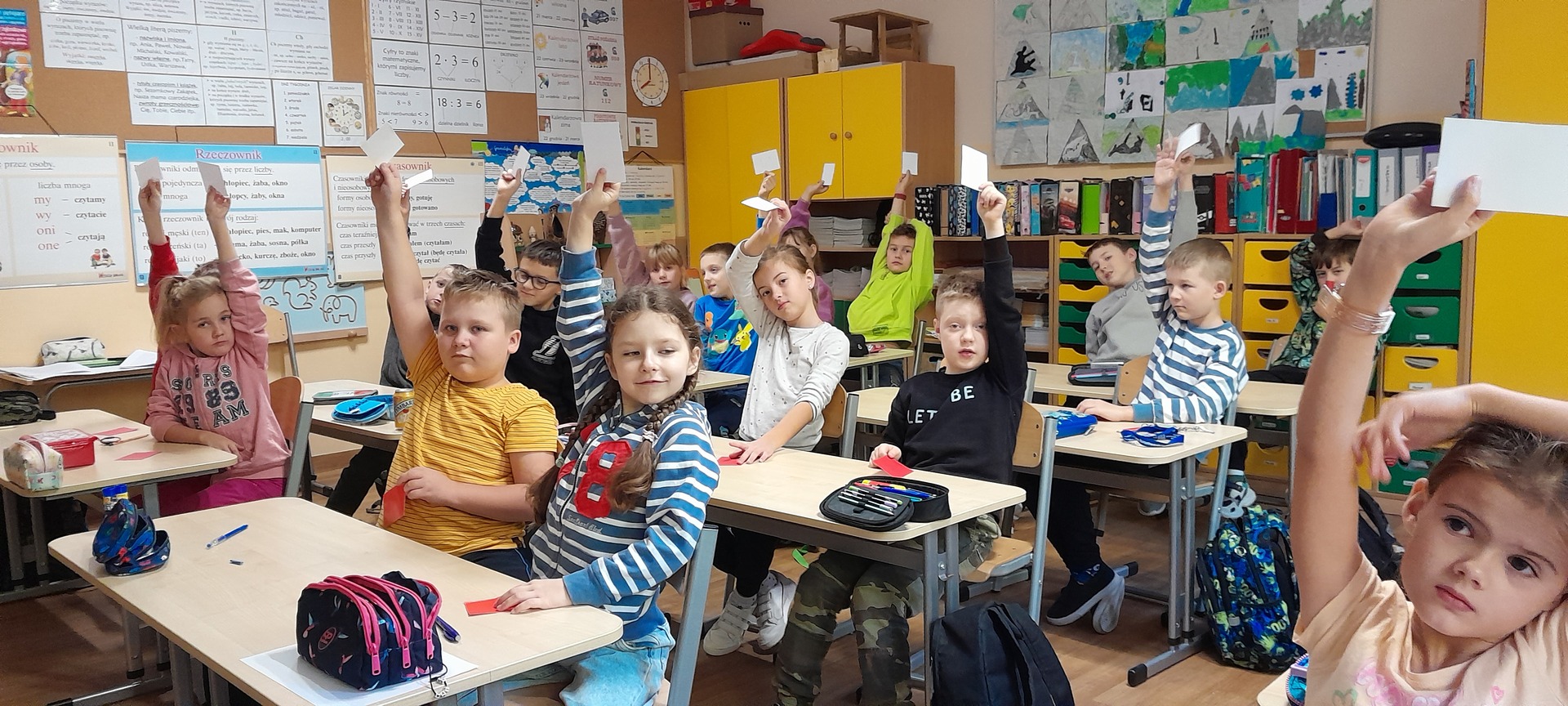 W klasach zostały przeprowadzone lekcje według scenariusza „Bohaterem być kiedyś i dziś” nadesłane w materiałach edukacyjnych, w ramach którego dzieci: