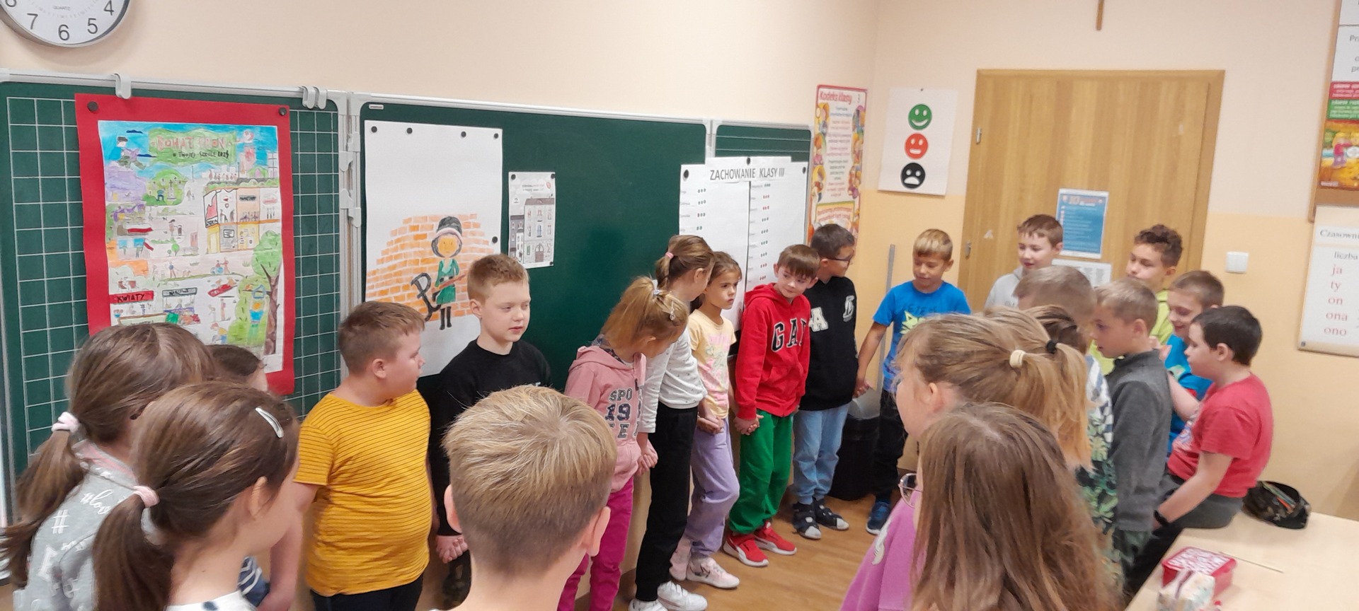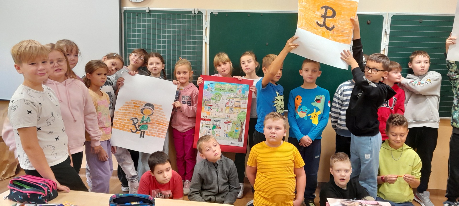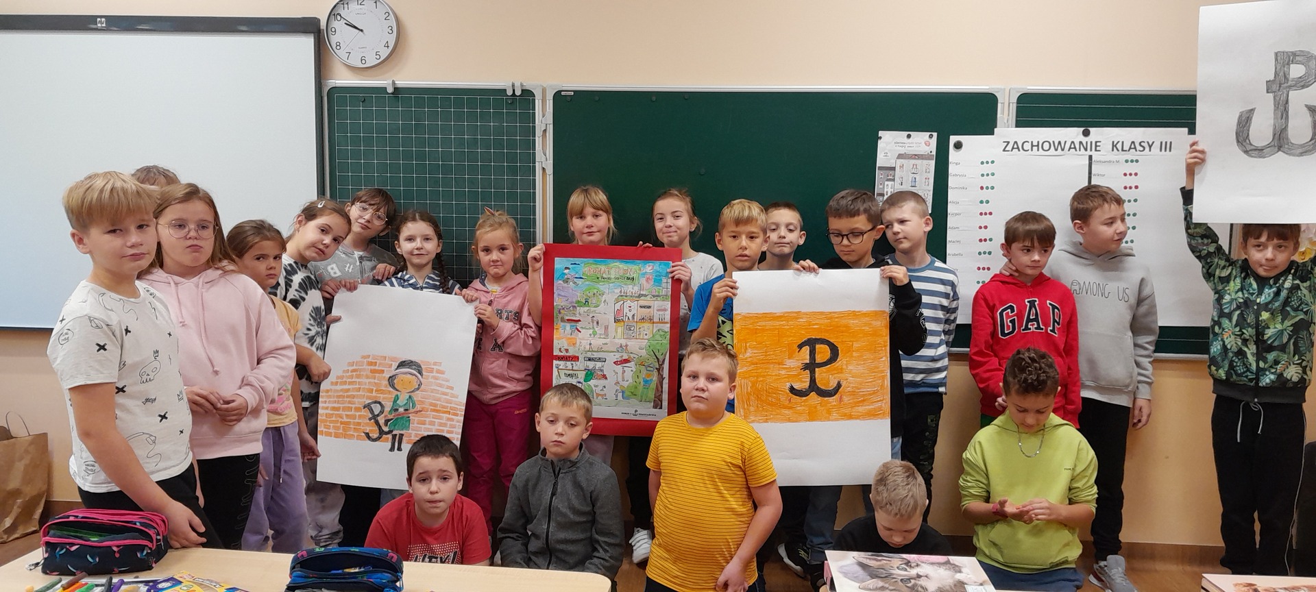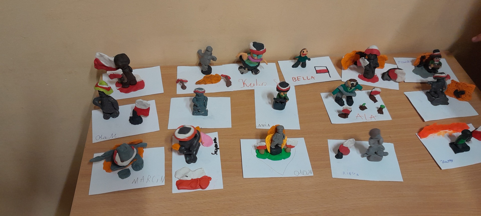 Dodatkowo w klasie III uczniowie zapoznali się treścią lektury ,,Asiunia’’ Joanny Papuzińskiej opartej na prawdziwych wydarzeniach, gdzie autorka książki opisuje swoje dzieciństwo, które przeżyła w czasach II Wojny Światowej. Przeprowadzono zajęcia na temat: Wrzesień 1939. Uczniowie poznali zagadnienia II Wojny Światowej. Wypełnili planszę „Co wiemy o II Wojnie Światowej?”. Ponadto wzięli udział w teście sprawdzającym wiedzę o przeczytanym tekście lektury. Przy podanych zdaniach dotyczących lektury uczniowie zaznaczali: prawda/fałsz. Dodatkowo pisali odpowiedzi na pytania otwarte. Na zakończenie zajęć ulepili z plasteliny postać Małego Powstańca.