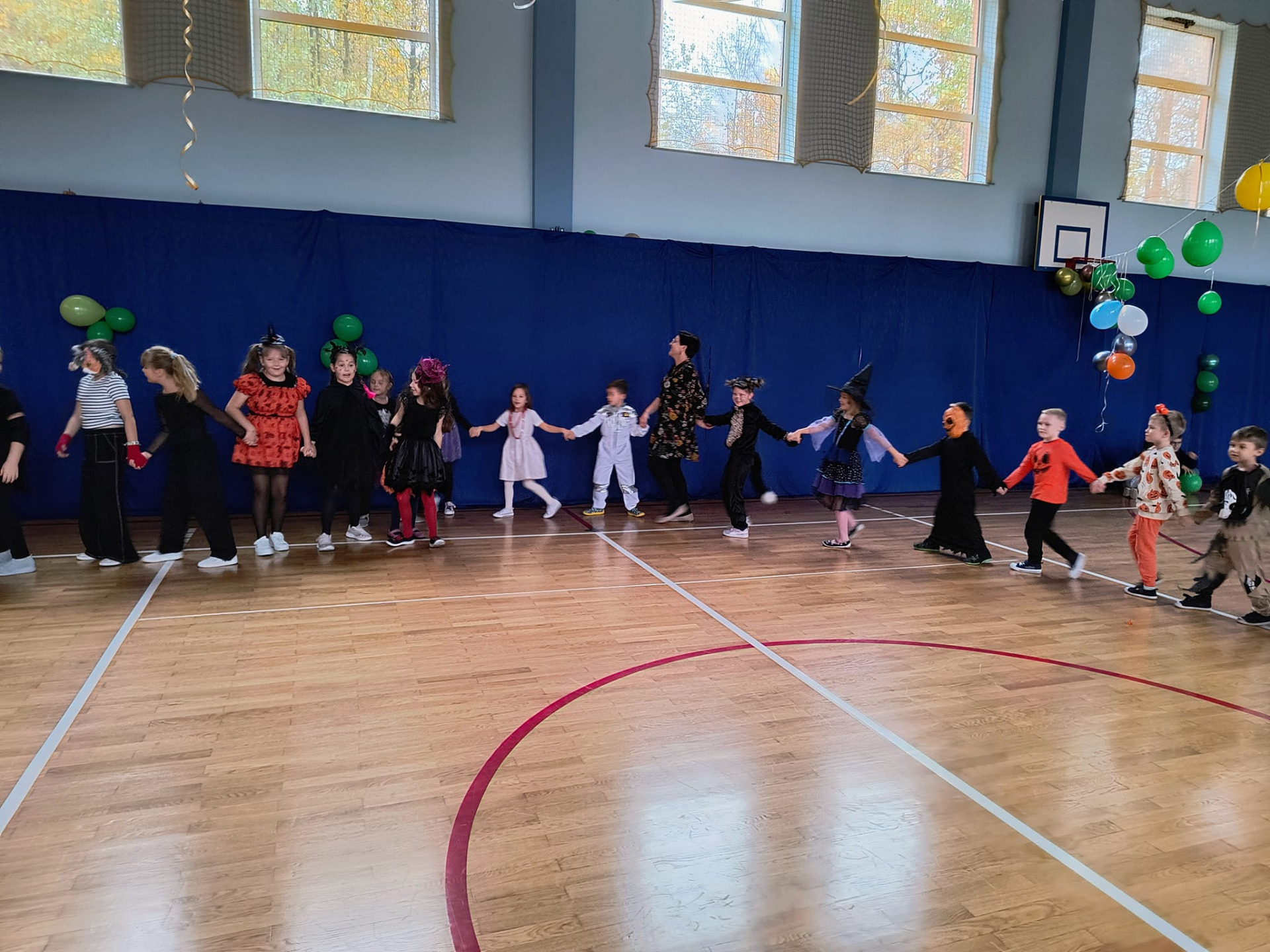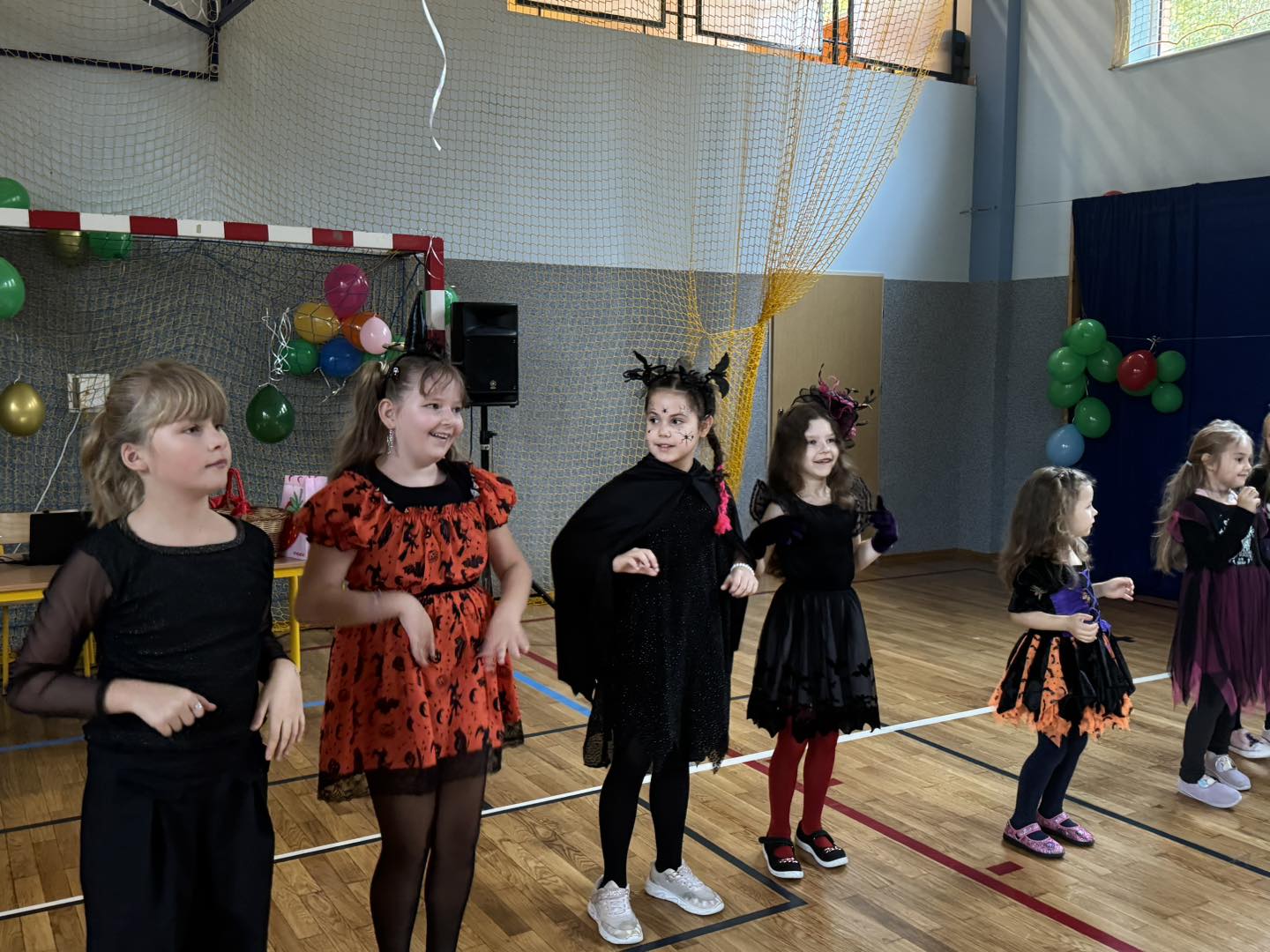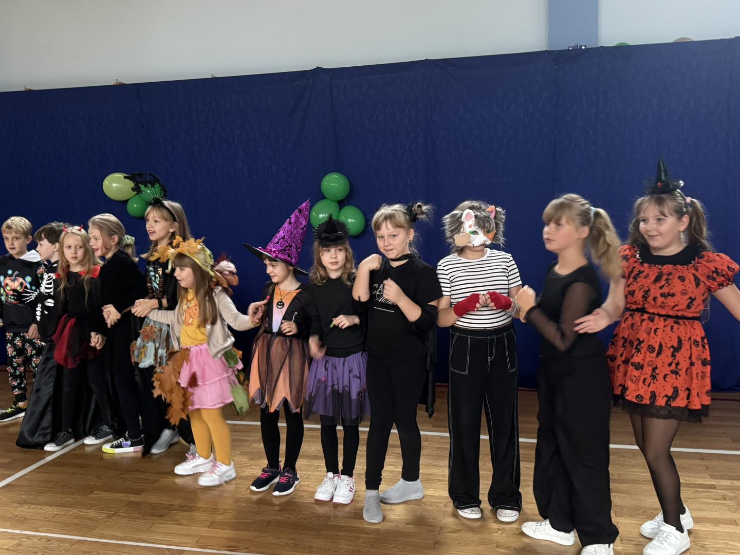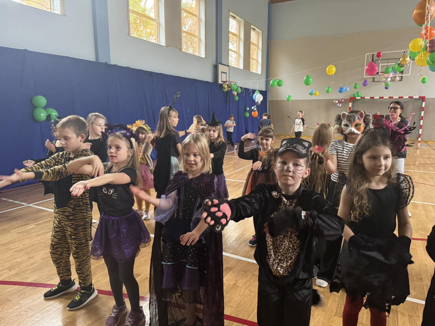 30 października odbyła się w naszej szkole JESIENNA DYSKOTEKA dla klas 0 -III. Dzieci ubrane w kolorowe stroje bawiły się przy swoich ulubionych piosenkach. Wszyscy uczniowie w dobrych humorach tańczyli, brali udział w zabawach i atrakcjach. W czasie imprezy zostały rozstrzygnięte konkursy na najciekawszy strój, najpiękniejszą dynię oraz najładniejszy taniec. Zwycięzcy otrzymali upominki oraz gratulacje. To był miły dzień, pełen radości i wspólnej zabawy!