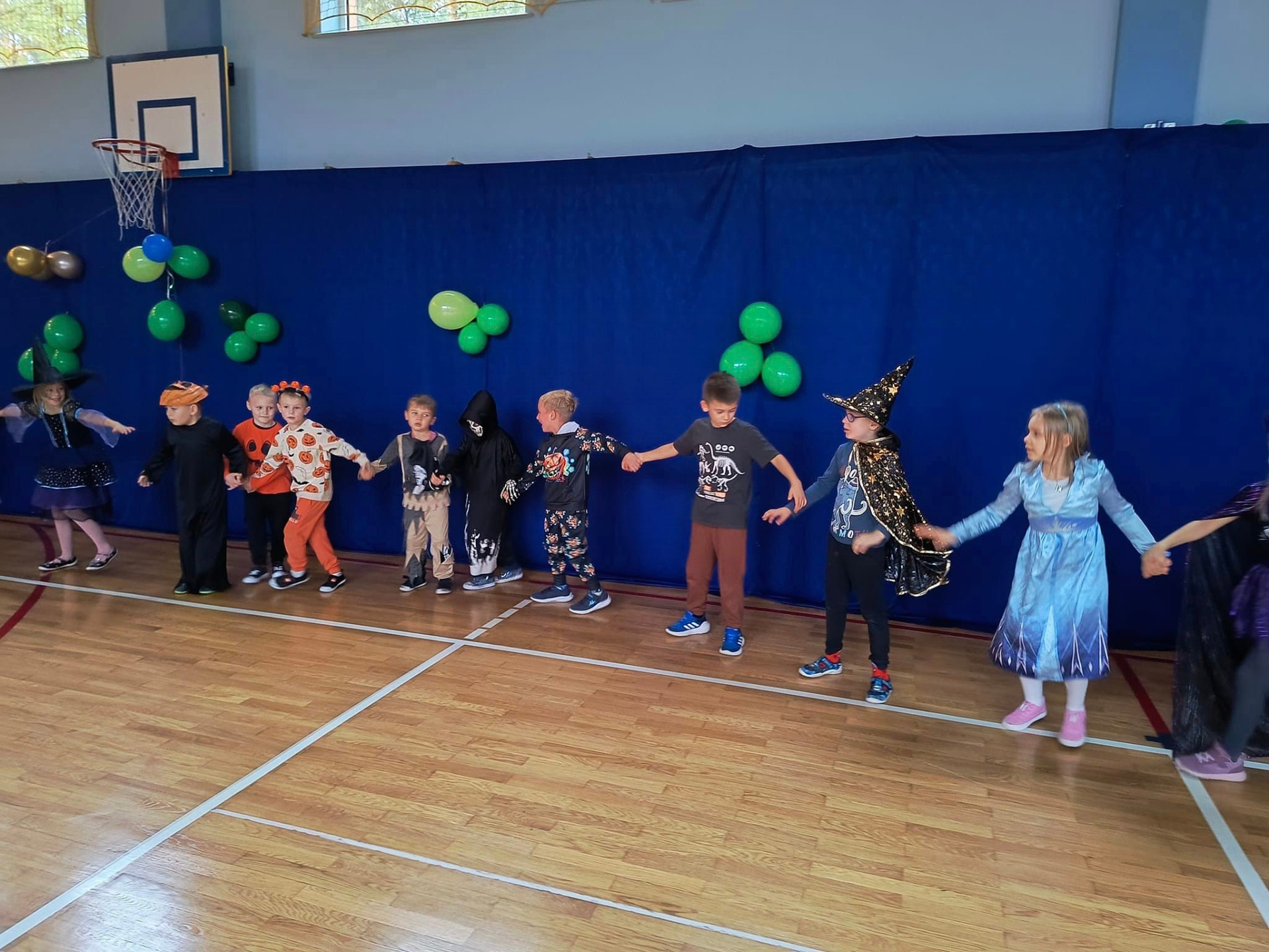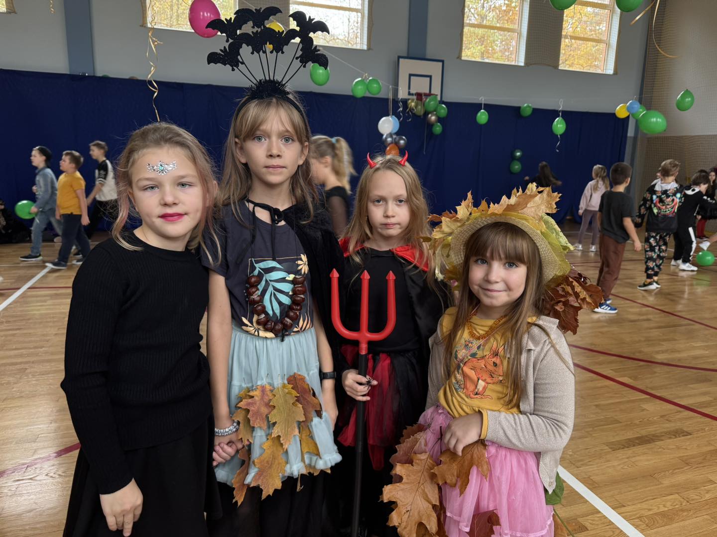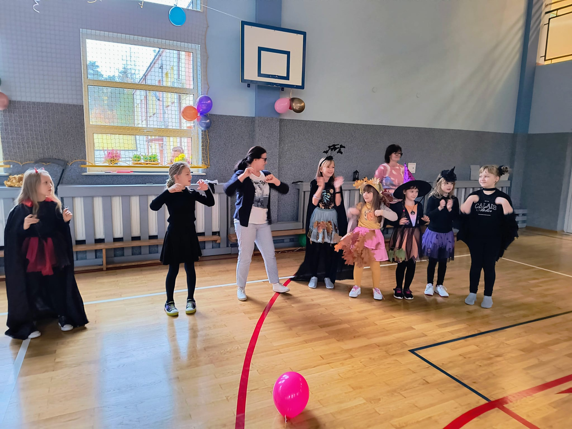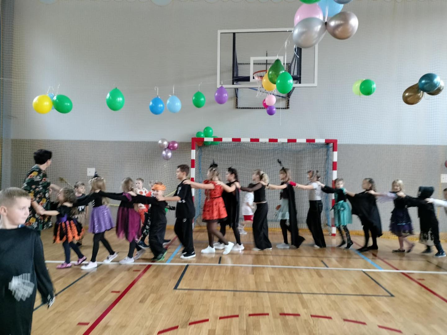 30 października odbyła się w naszej szkole JESIENNA DYSKOTEKA dla klas 0 -III. Dzieci ubrane w kolorowe stroje bawiły się przy swoich ulubionych piosenkach. Wszyscy uczniowie w dobrych humorach tańczyli, brali udział w zabawach i atrakcjach. W czasie imprezy zostały rozstrzygnięte konkursy na najciekawszy strój, najpiękniejszą dynię oraz najładniejszy taniec. Zwycięzcy otrzymali upominki oraz gratulacje. To był miły dzień, pełen radości i wspólnej zabawy!