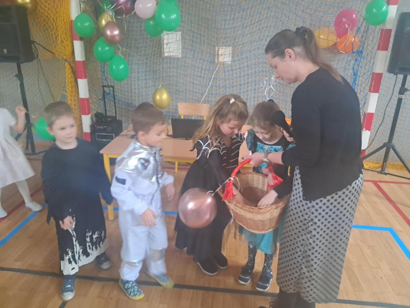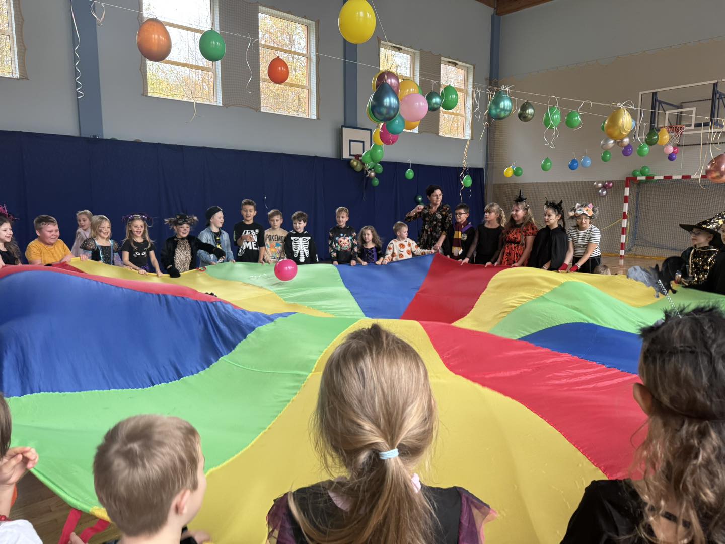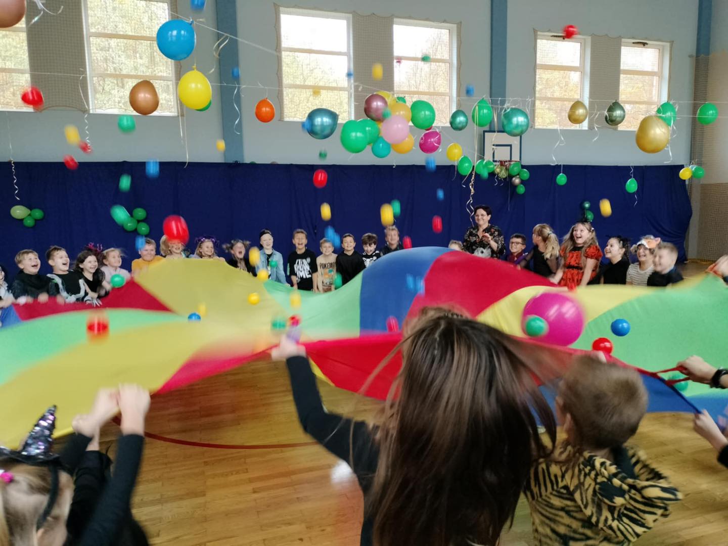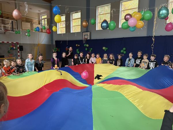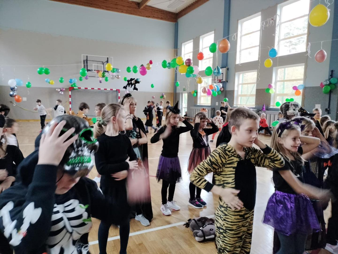 30 października odbyła się w naszej szkole JESIENNA DYSKOTEKA dla klas 0 -III. Dzieci ubrane w kolorowe stroje bawiły się przy swoich ulubionych piosenkach. Wszyscy uczniowie w dobrych humorach tańczyli, brali udział w zabawach i atrakcjach. W czasie imprezy zostały rozstrzygnięte konkursy na najciekawszy strój, najpiękniejszą dynię oraz najładniejszy taniec. Zwycięzcy otrzymali upominki oraz gratulacje. To był miły dzień, pełen radości i wspólnej zabawy!