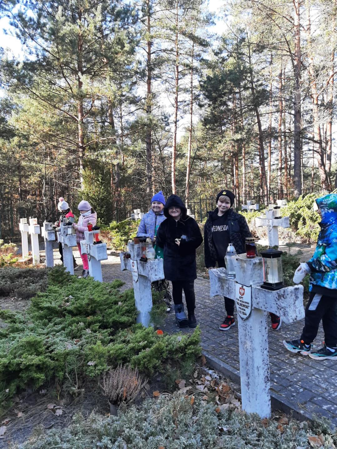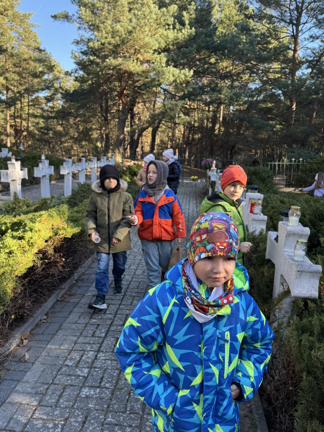 4 i 5 listopada dzieci z klas 1-3 oraz klasy 6 odwiedziły Miejsce Pamięci Narodowej - cmentarz wojenny w Wierszach. W nastroju refleksji i zadumy uczniowie oddali hołd żołnierzom. Zapalili również znicze na grobach Bohaterów, którzy walczyli o wolność naszej Ojczyzny. W czasie wycieczki dzieci poznawały zwyczaje związane ze Świętem Zmarłych oraz utrwalały zasady właściwego zachowania się na cmentarzu. Zdobywanie wiedzy o historii naszego kraju to również ważna lekcja kształtowania tożsamości narodowej oraz świadomości obywatelskiej .