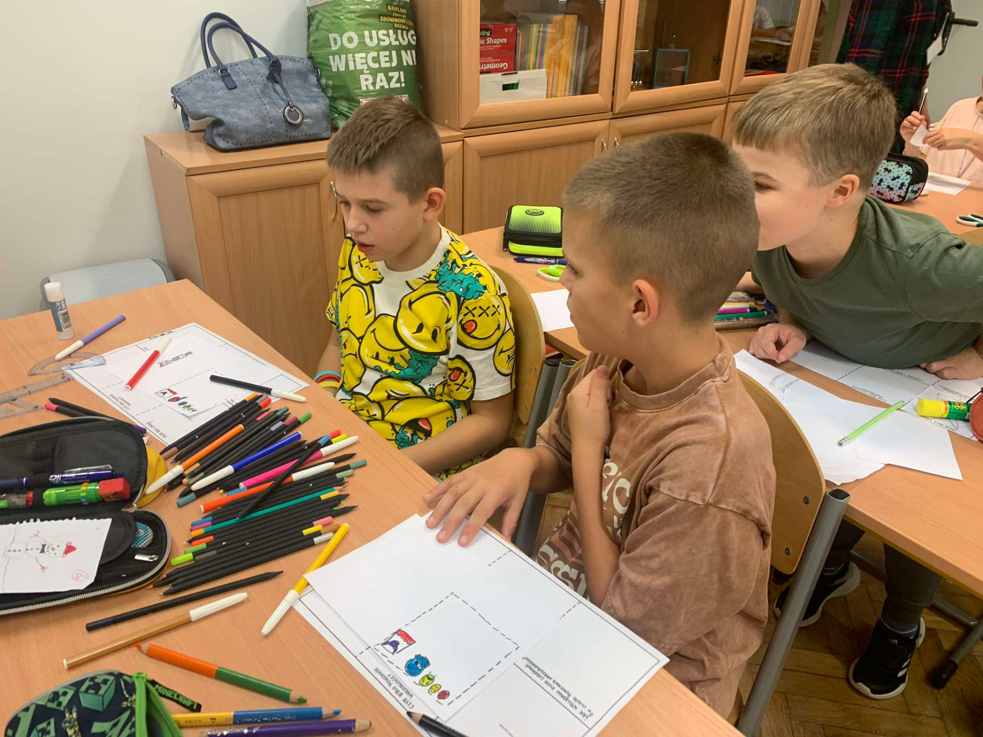 Uczniowie klas 4-6 zrealizowali scenariusz „Tajemniczy pamiętnik”, w ramach którego zapoznali się z ważnymi informacjami o Powstaniu Warszawskim oraz wysłuchali opowiadania Magdaleny Górskiej. Na podstawie jego treści mówili o emocjach oraz przedstawiali je za pomocą symboli, kolorów. Stosując różne formy, tworzyli książeczki dotyczące życia codziennego w powstańczej Warszawie, swoich emocji oraz uczuć i myśli bohaterki opowiadania. Proponowali też, w jaki sposób można pomóc innym.