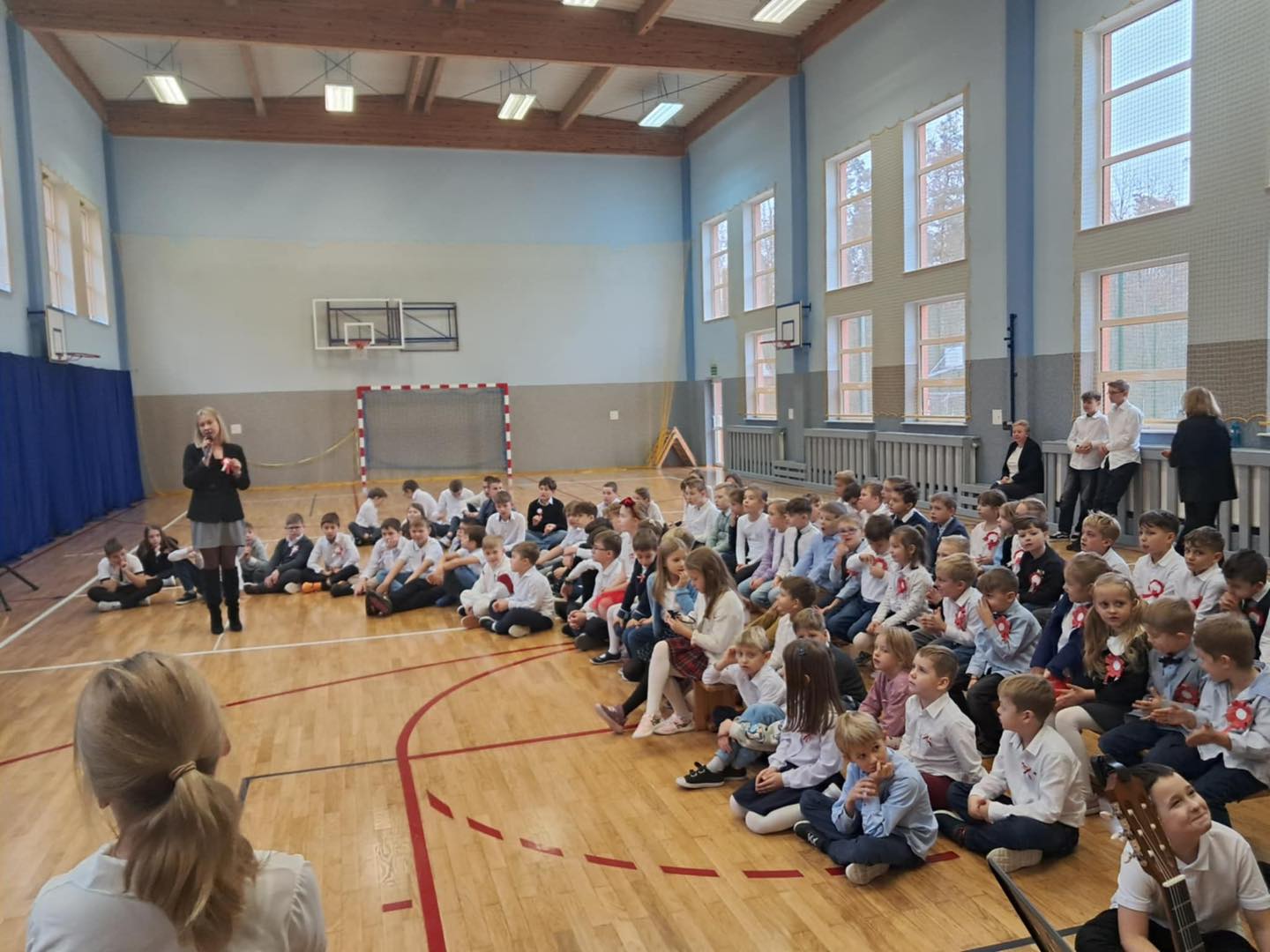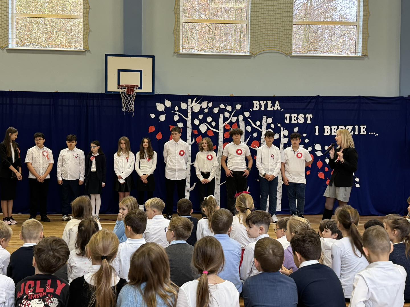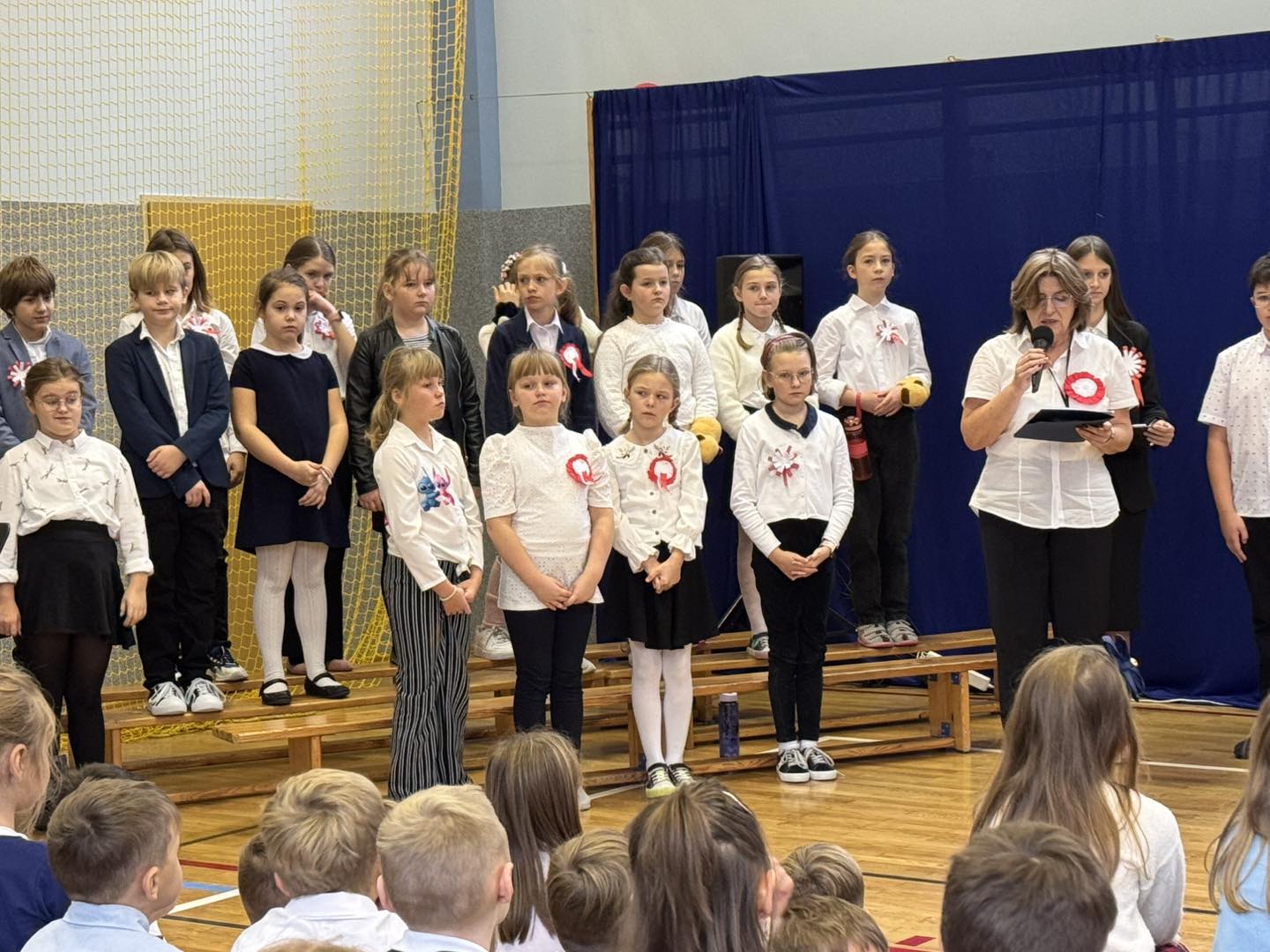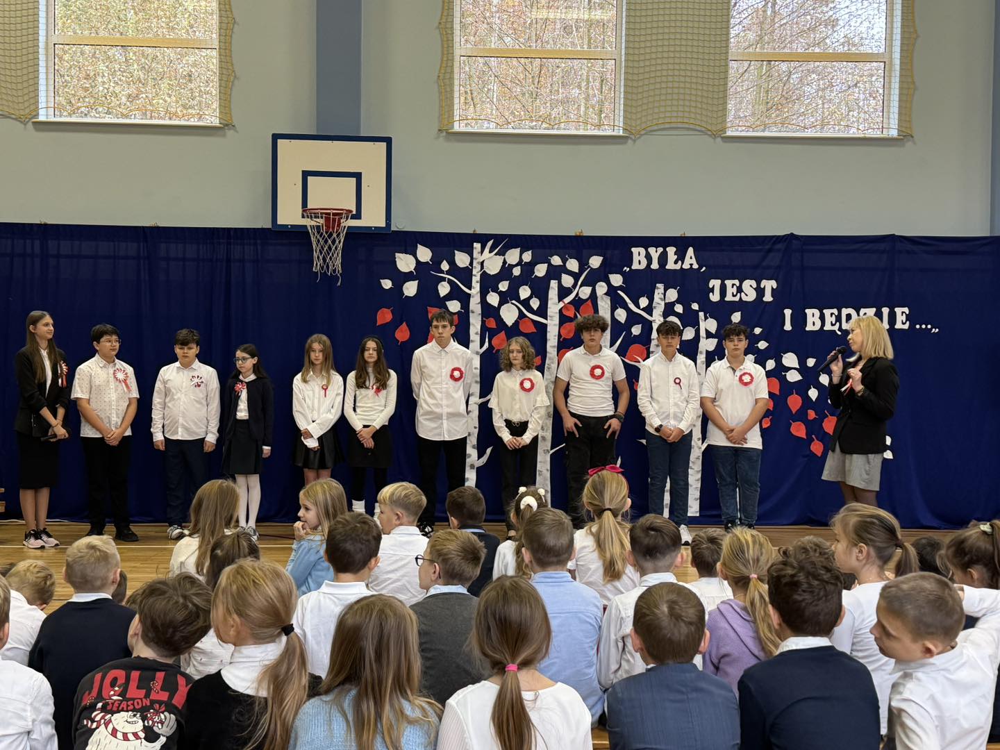 W piątek (08.11.2024 r.) w naszej szkole obchodziliśmy 106. rocznicę odzyskania przez Polskę niepodległości. Rozpoczęliśmy od części artystycznej, którą przygotowała z uczniami klas V-VIII Pani Ewa Dudek. Podczas uroczystego apelu występował również nasz szkolny chór pod opieką Pani Anny Michalak. O godzinie 11.11 wszyscy wspólnie odśpiewaliśmy Hymn Narodowy zgodnie z założeniami ogólnopolskiej akcji „Szkoła do hymnu”.