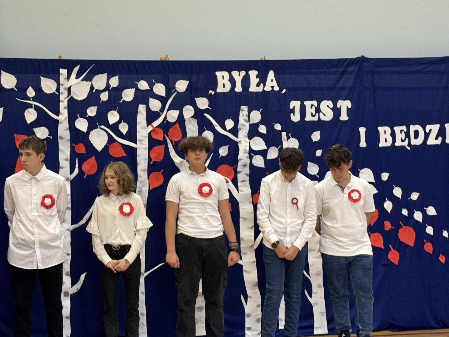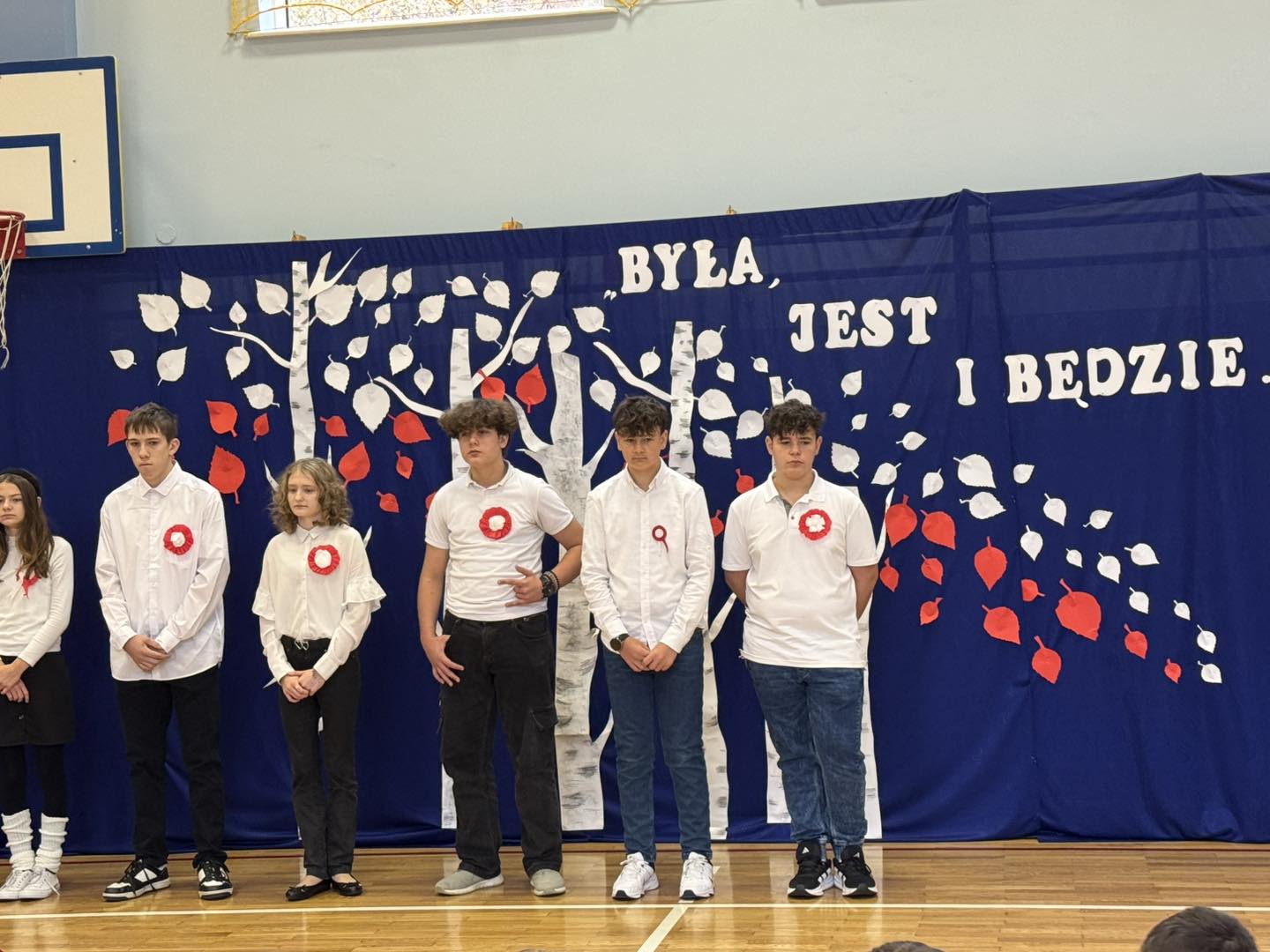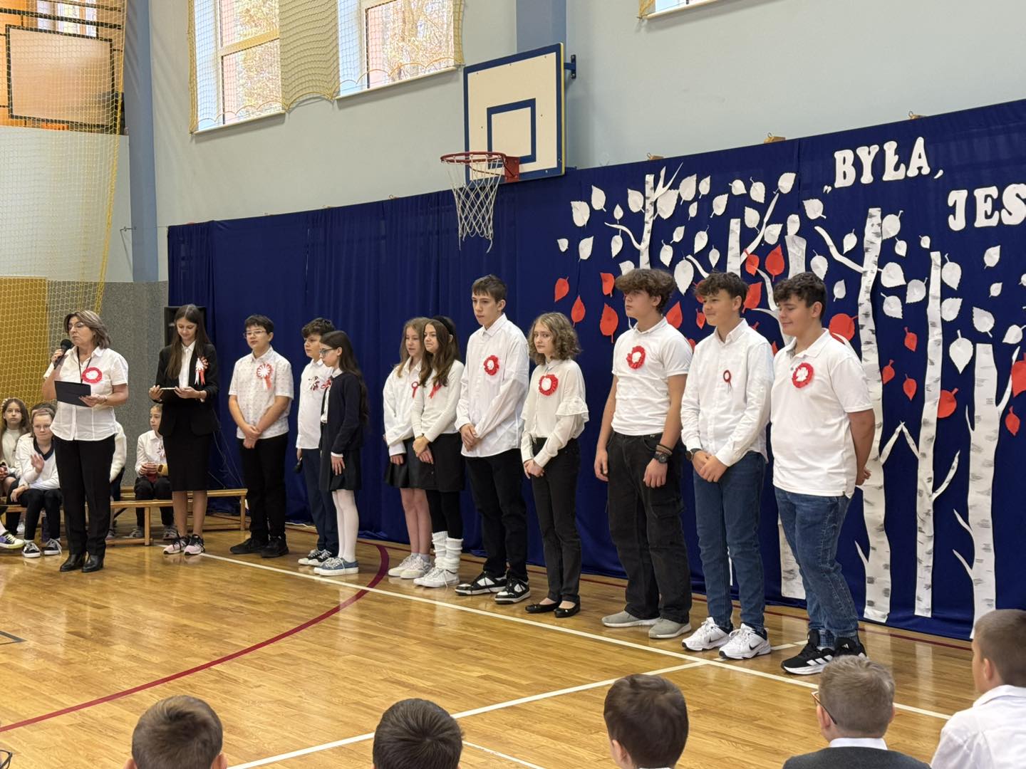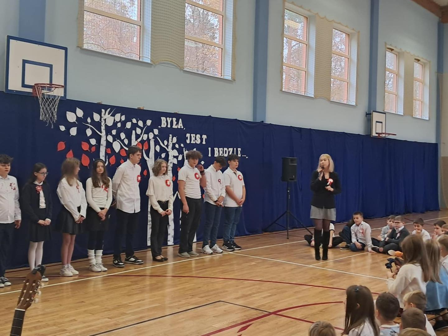 W piątek (08.11.2024 r.) w naszej szkole obchodziliśmy 106. rocznicę odzyskania przez Polskę niepodległości. Rozpoczęliśmy od części artystycznej, którą przygotowała z uczniami klas V-VIII Pani Ewa Dudek. Podczas uroczystego apelu występował również nasz szkolny chór pod opieką Pani Anny Michalak. O godzinie 11.11 wszyscy wspólnie odśpiewaliśmy Hymn Narodowy zgodnie z założeniami ogólnopolskiej akcji „Szkoła do hymnu”.