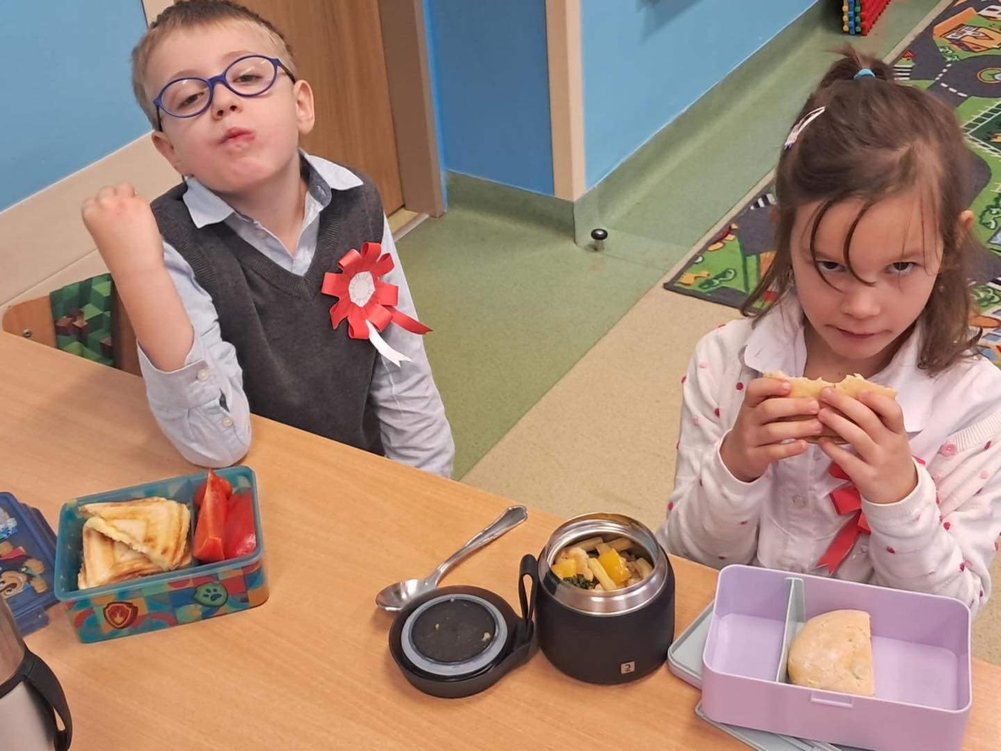 8 listopada uczniowie klas 0-3 włączyli się w obchody Międzynarodowego Dnia Zdrowego Śniadania. Dzieci zasiadły do wspólnego posiłku składającego się głównie z owoców i warzyw. Taki dzień jest doskonałą okazją do utrwalania wiadomości na temat prawidłowego odżywiania. Wiemy, jak ważne jest zdrowe śniadanie, aby mieć dużo energii do działania.