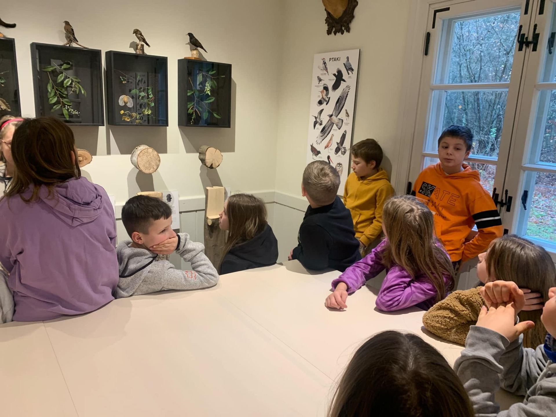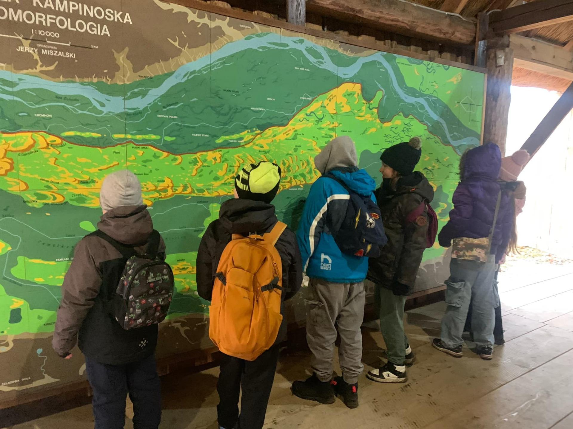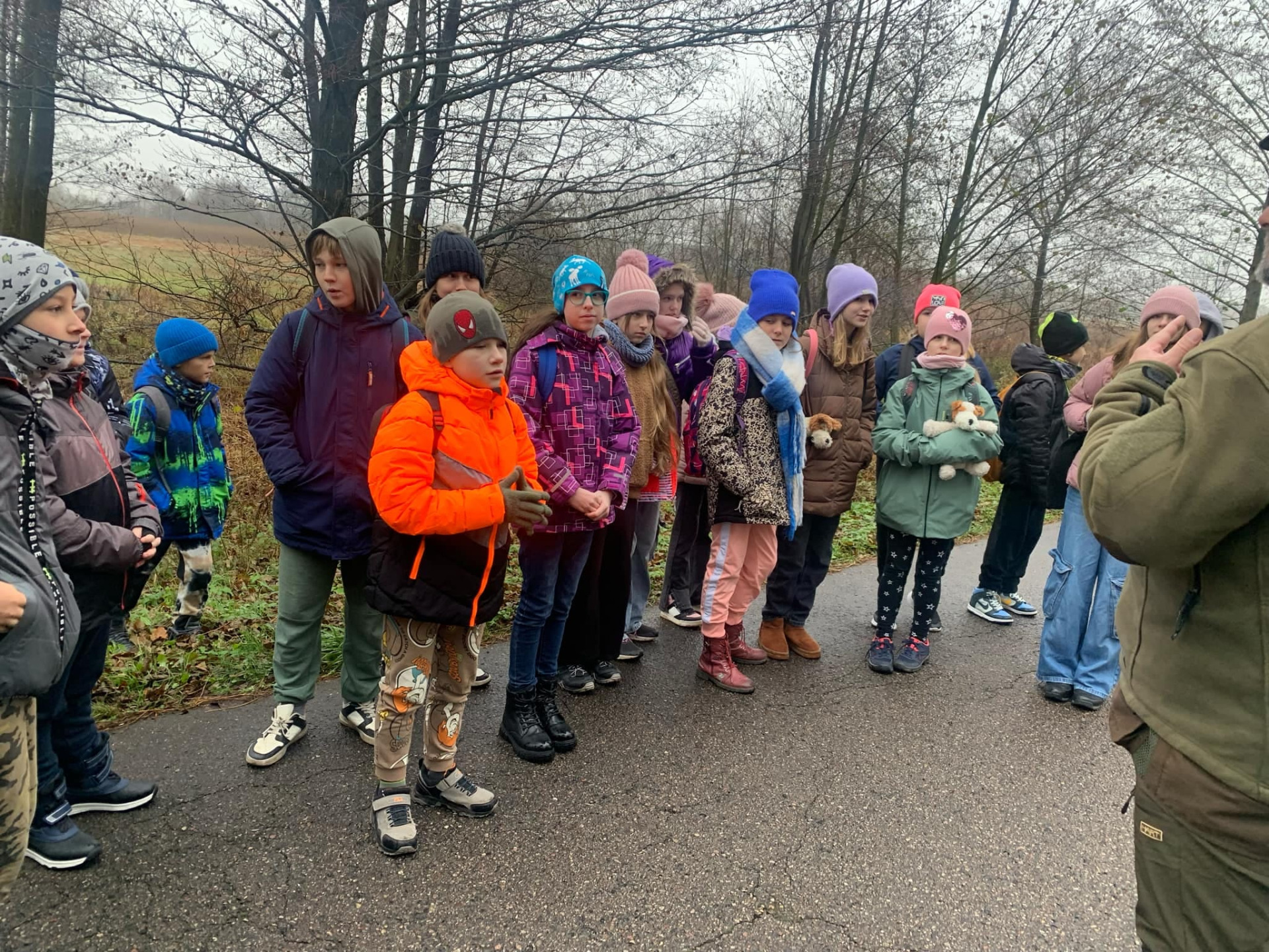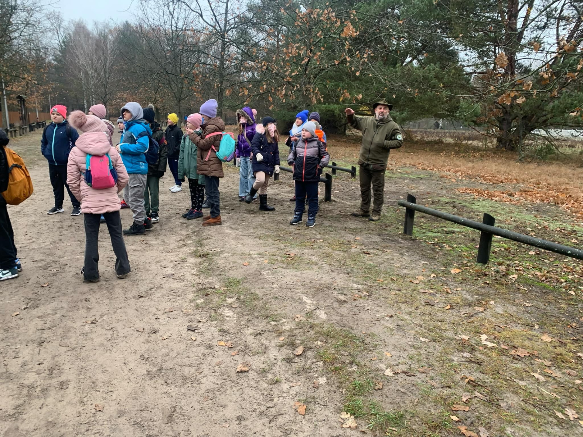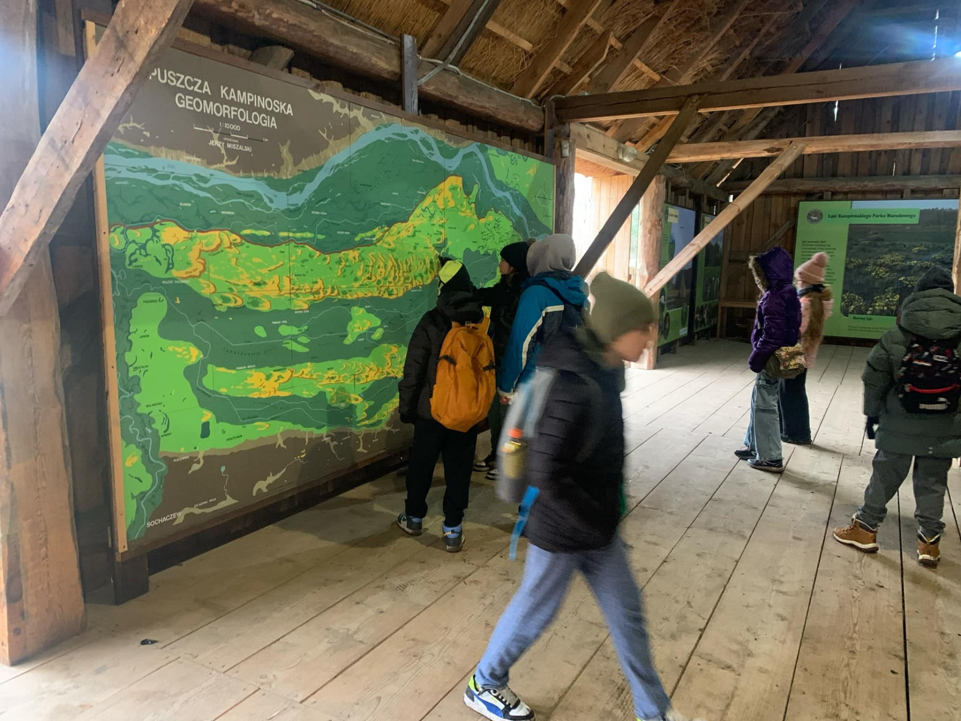 Dnia 13 listopada klasy 4 i 5 miały wyjątkową okazję uczestniczyć w niezwykłej lekcji przyrody naszego regionu podczas wycieczki do Ośrodka Dydaktyczno-Muzealnego Kampinoskiego Parku Narodowego w Granicy. Na miejscu czekał na nas pan leśnik, który opowiedział dzieciom o roślinach i zwierzętach występują na terenie KPN, o wyjątkowości środowiska naturalnego tego miejsca, a szczególnie o tropach i śladach zwierząt żyjących na tym obszarze, m.in. wilka, dzika i jelenia. Uczniowie podziwiali również ekspozycję Muzeum Puszczy Kampinoskiej, która prezentuje unikatowość lasów, wydm i bagien oraz zróżnicowanie fauny i flory. To była wspaniała lekcja w terenie, pełna nowych doświadczeń i inspiracji!