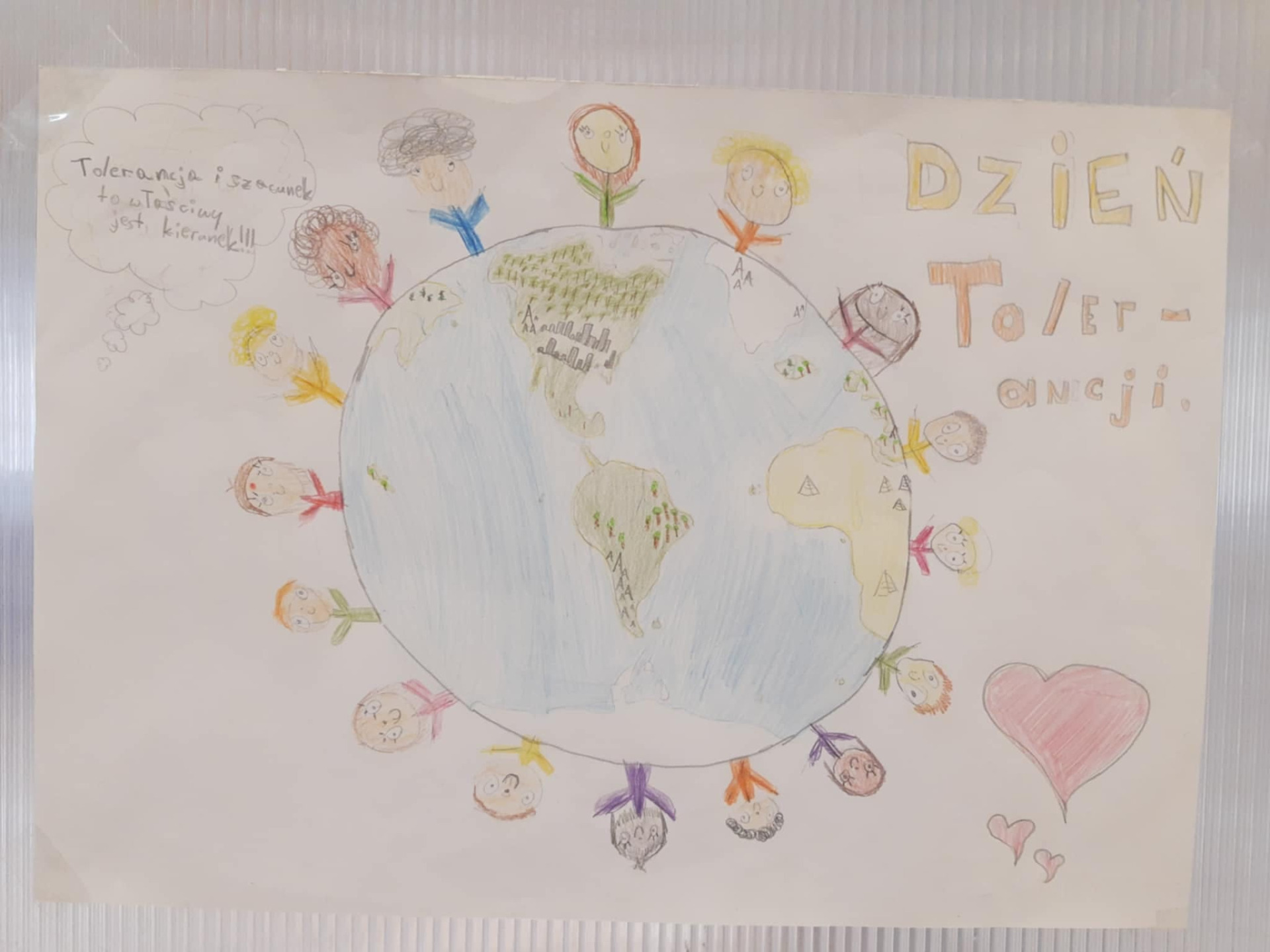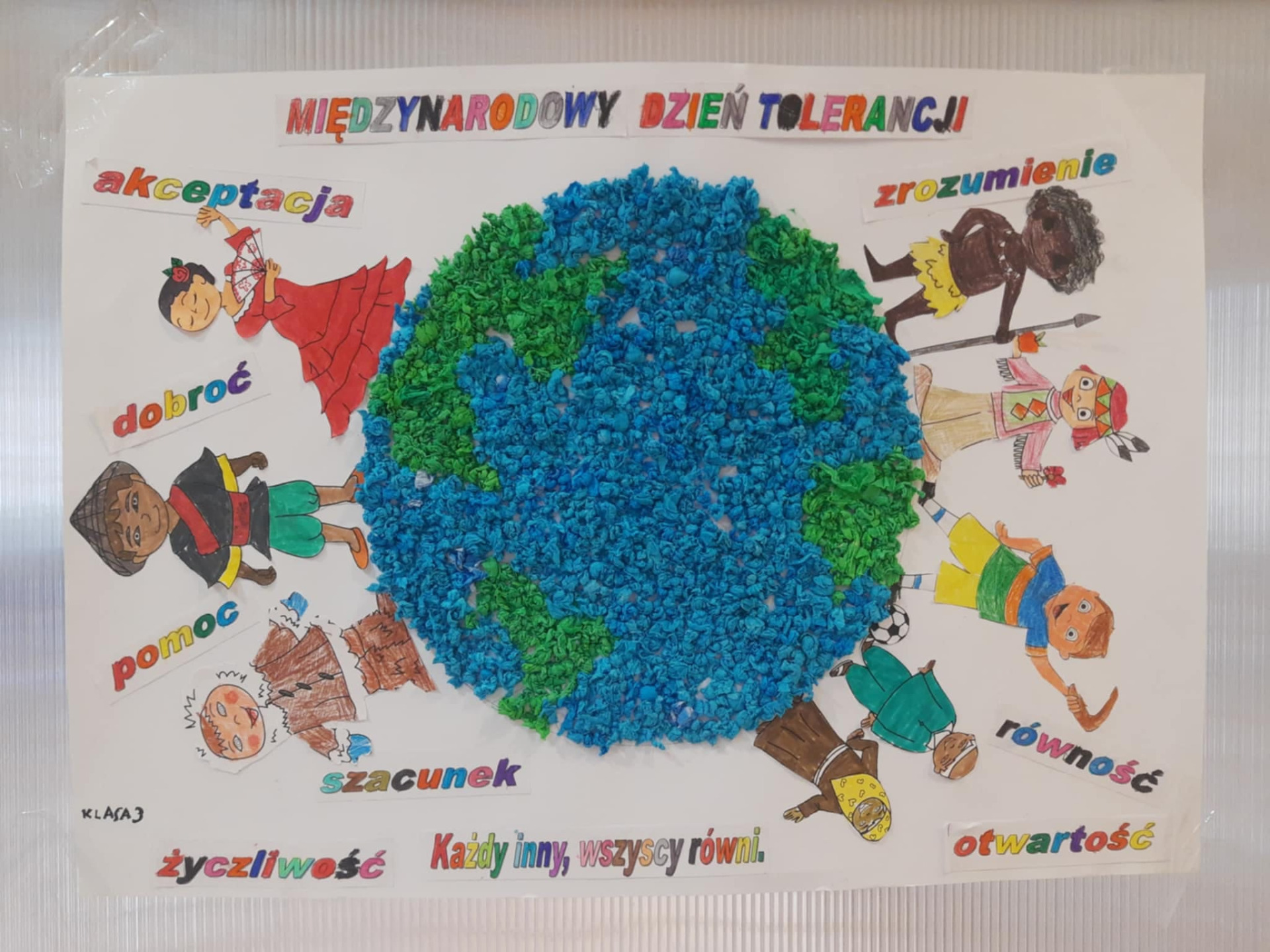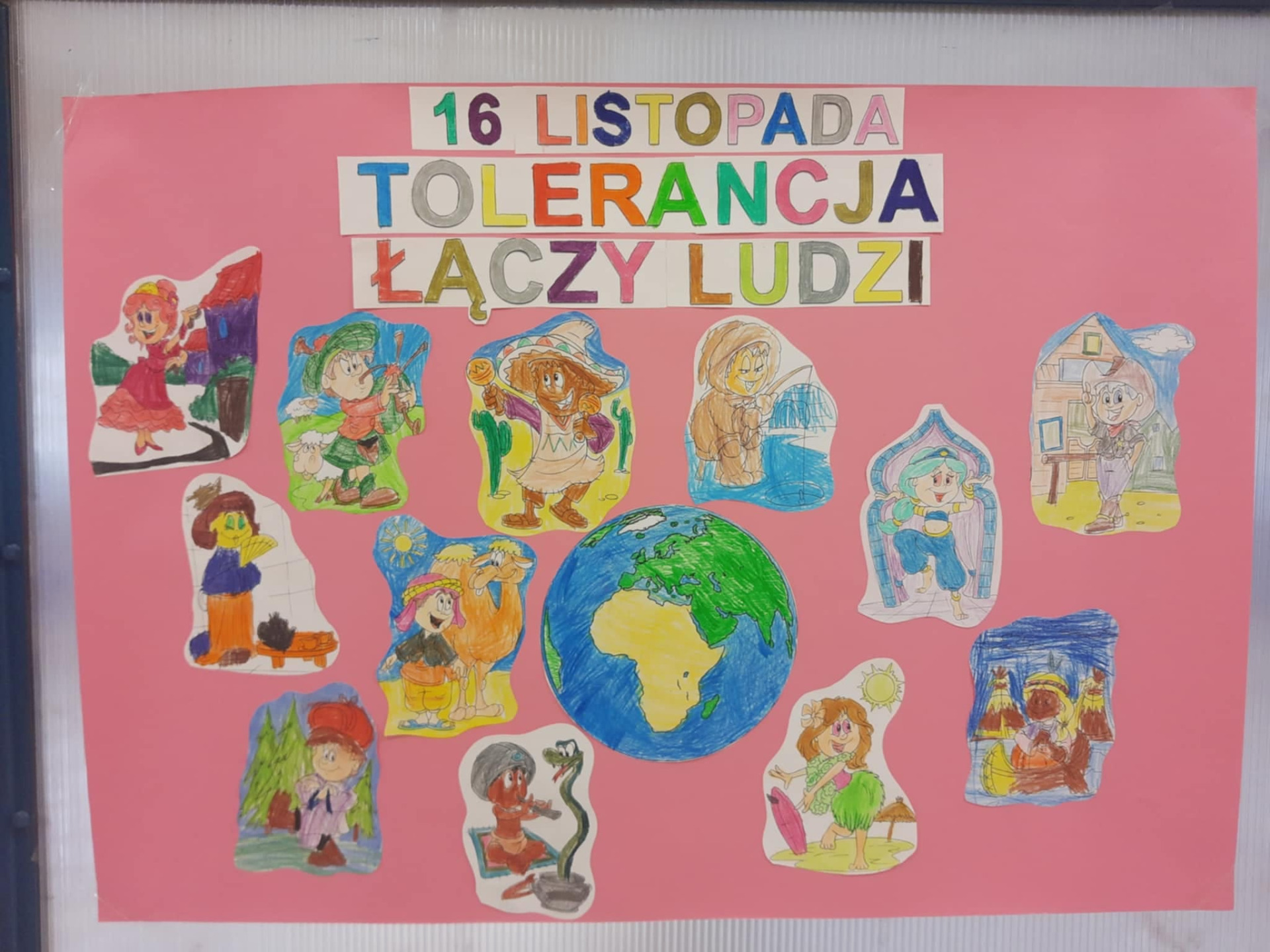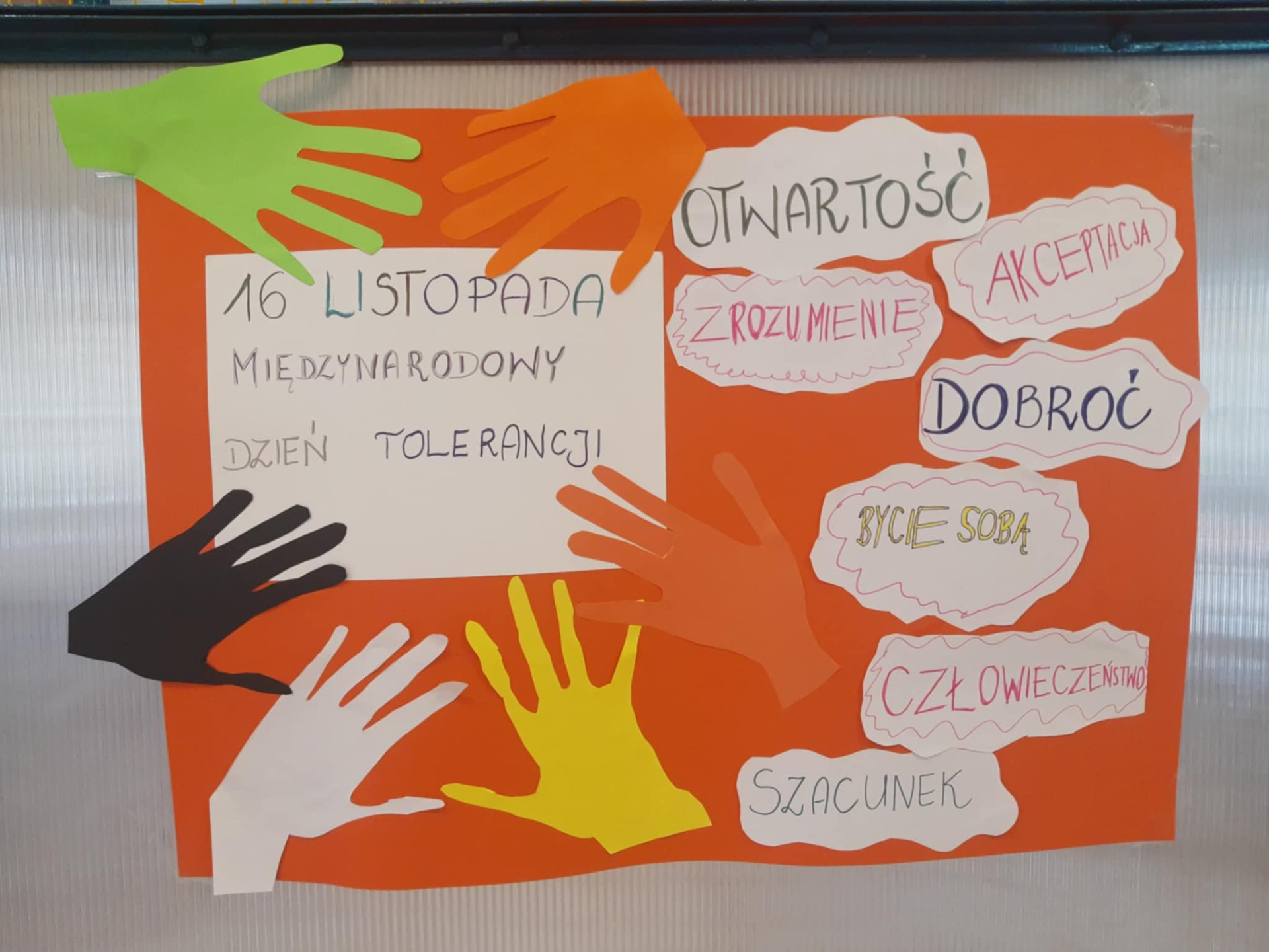 Z okazji tego święta Samorząd Uczniowski ogłosił akcję, która polegała na wykonaniu przez wszystkie klasy naszej szkoły plakatów dotyczących tolerancji. Była to także okazja do refleksji i rozmów nad własną postawą w odniesieniu do innych osób. Wykonane przez dzieci prace, przedstawiające różne symbole i hasła nawiązujące do tematyki i ogólnych założeń Międzynarodowego Dnia Tolerancji, można podziwiać na górnym korytarzu naszej szkoły.