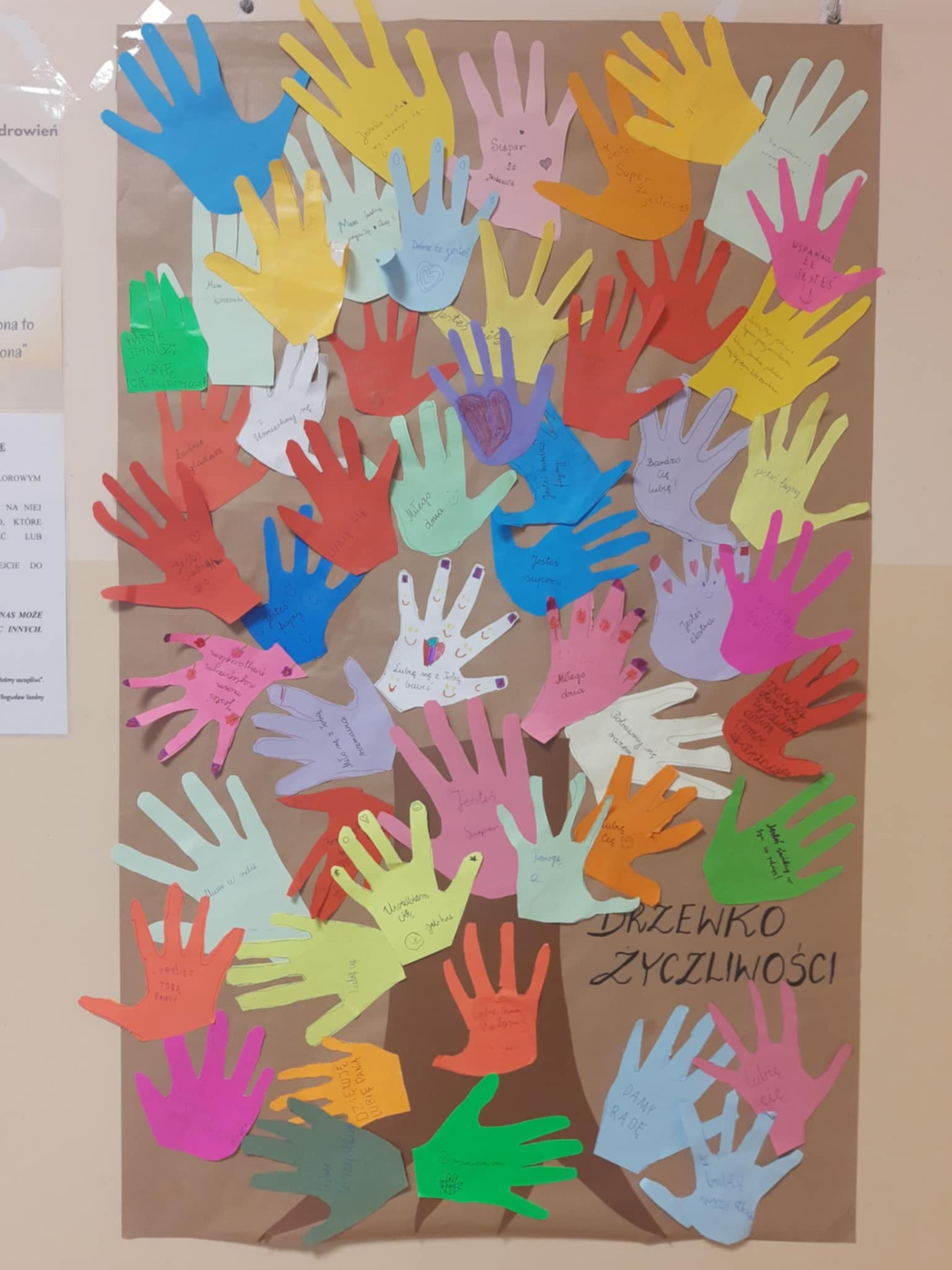 Z okazji obchodzonego 21 listopada Światowego Dnia Życzliwości i Pozdrowień "wyrosło" w naszej szkole specjalne drzewko, na którym każdy uczeń mógł zamieścić cytat, pozdrowienie lub miłe słowo skierowane do szkolnych kolegów. Działanie to pokazuje, że każdy z nas może być miły i serdeczny wobec innych. Pamiętajmy, że życzliwość to nie tylko wielkie czyny, ale przede wszystkim okazywana serdeczność i drobne gesty, które nic nie kosztują, a sprawiają radość i wywołują pozytywne emocje. Mamy nadzieję, że takiej życzliwości będziemy doświadczać na co dzień.