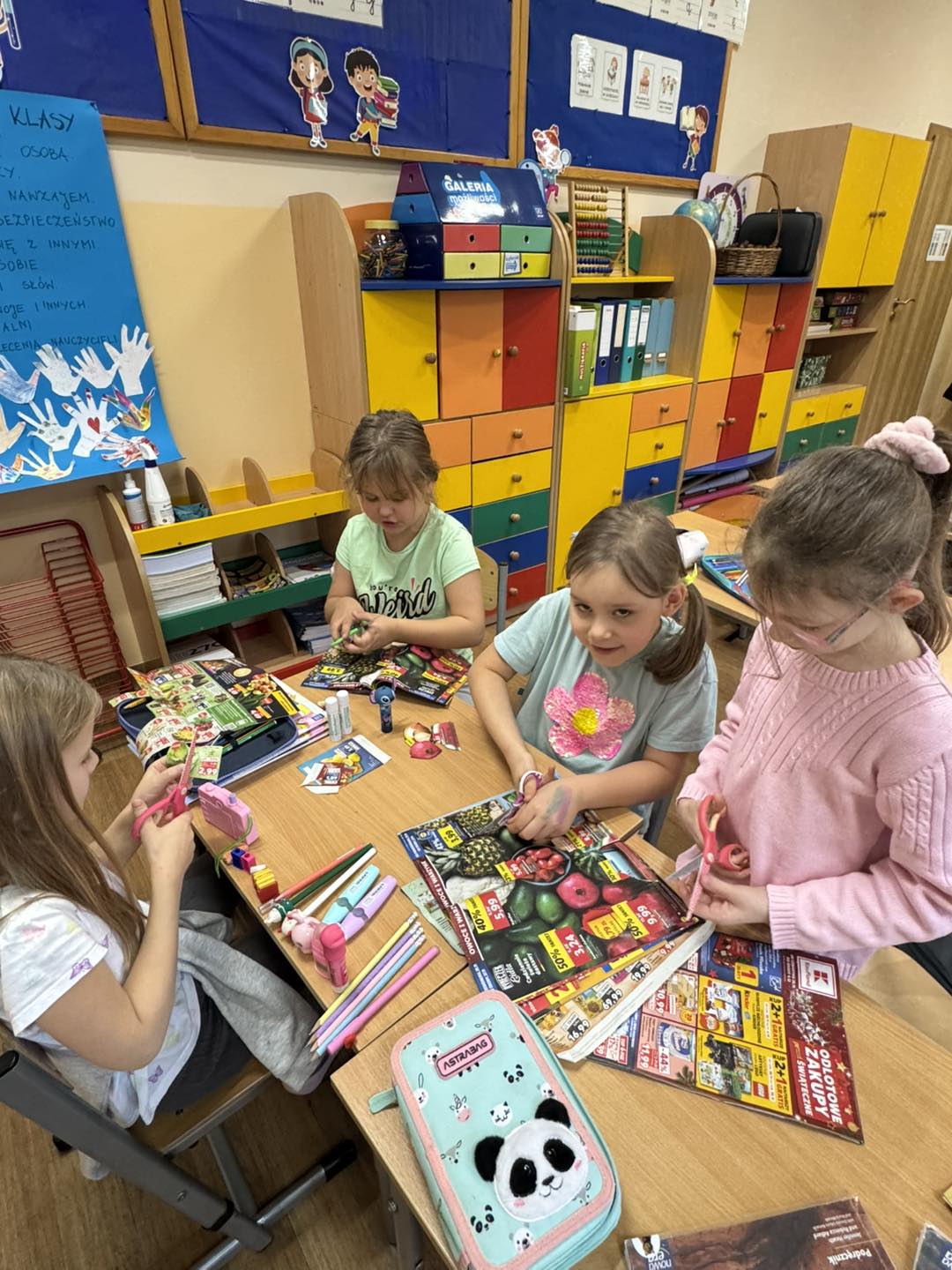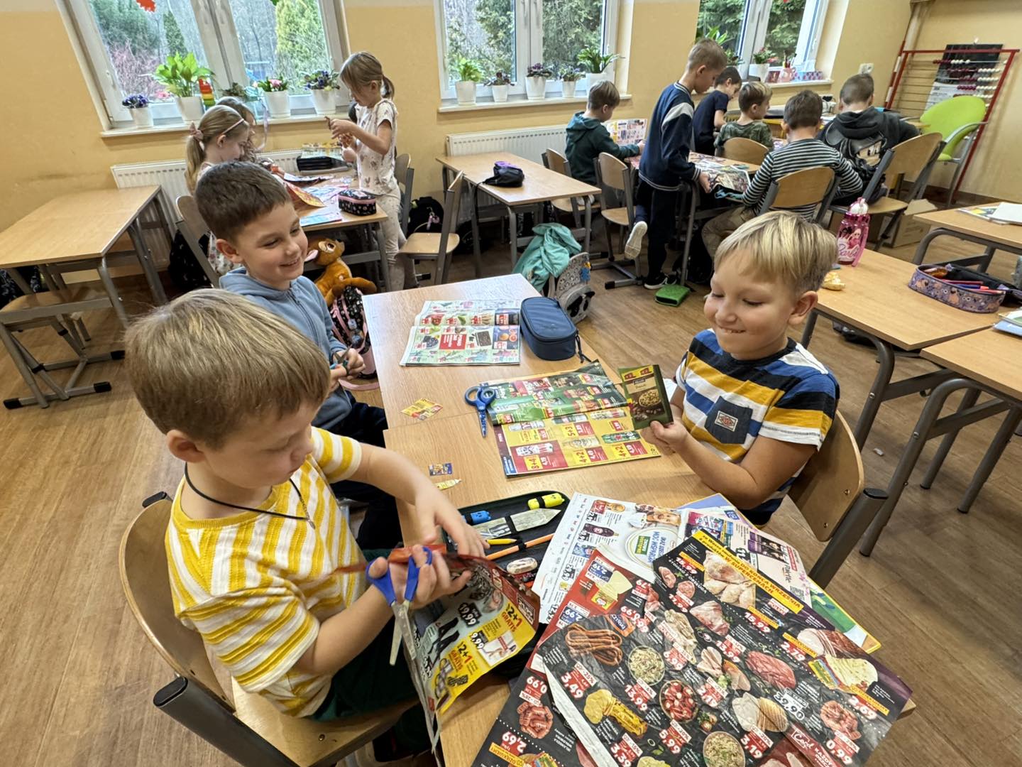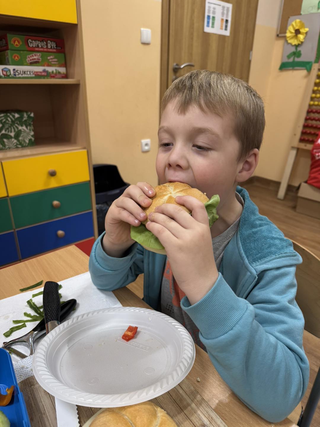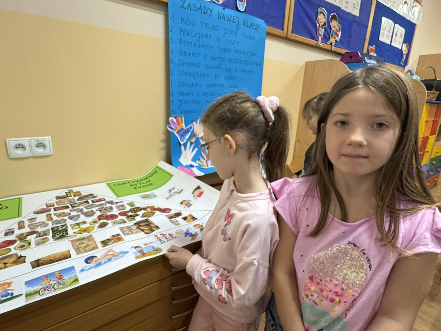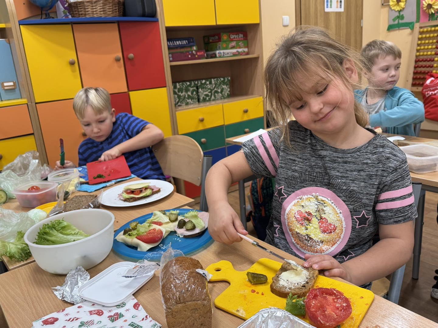 W osatnim czasie klasa 1 realizowała różne zadania zawarte w projekcie „ZDROWA ŚNIADANIÓWKA”. Pierwszaki rozpoczęły przygodę z edukacją prozdrowotną od zapoznania się z zasadami zdrowego odżywiania i aktywnego stylu życia na podstawie piramidy żywienia. Od teorii uczniowie przeszli do praktyki i samodzielnie przygotowali zdrowe, kolorowe kanapki. Wszystkie dzieci z zaangażowaniem dobierały składniki tak, aby każda kanapka wyglądała wyjątkowo. Na stołach królowały warzywa: i inne zdrowe produkty. Z pewnością samodzielnie wykonane potrawy smakują wyśmienicie. Kolejnym kreatywnym działaniem było stworzenie klasowej piramidy żywienia oraz aktywnego stylu życia. Uczniowie z ogromnym zapałem wypełniali kolejne piętra piramidy, wykorzystując do tego wycięte z gazet obrazki produktów żywnościowych. Pamiętali również o ważnych elementach zdrowego stylu życia takich, jak: aktywność fizyczna, picie wody, higiena osobista oraz sen. Nauka poprzez zabawę to najbardziej efektywny sposób przyswajania wiedzy!