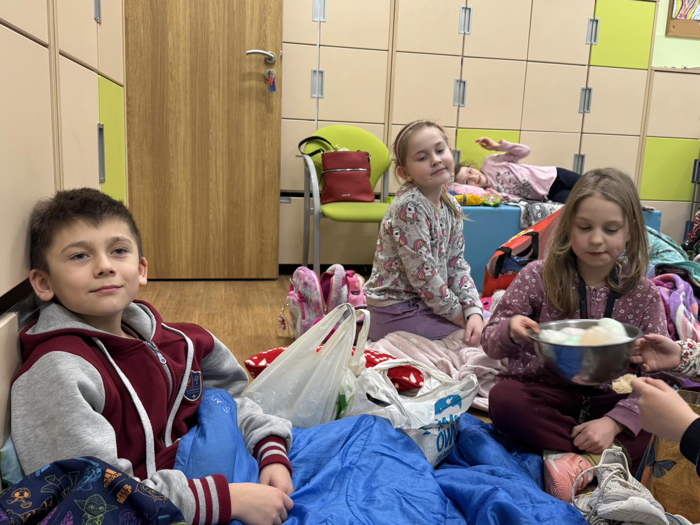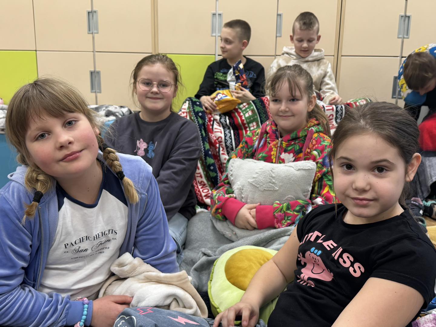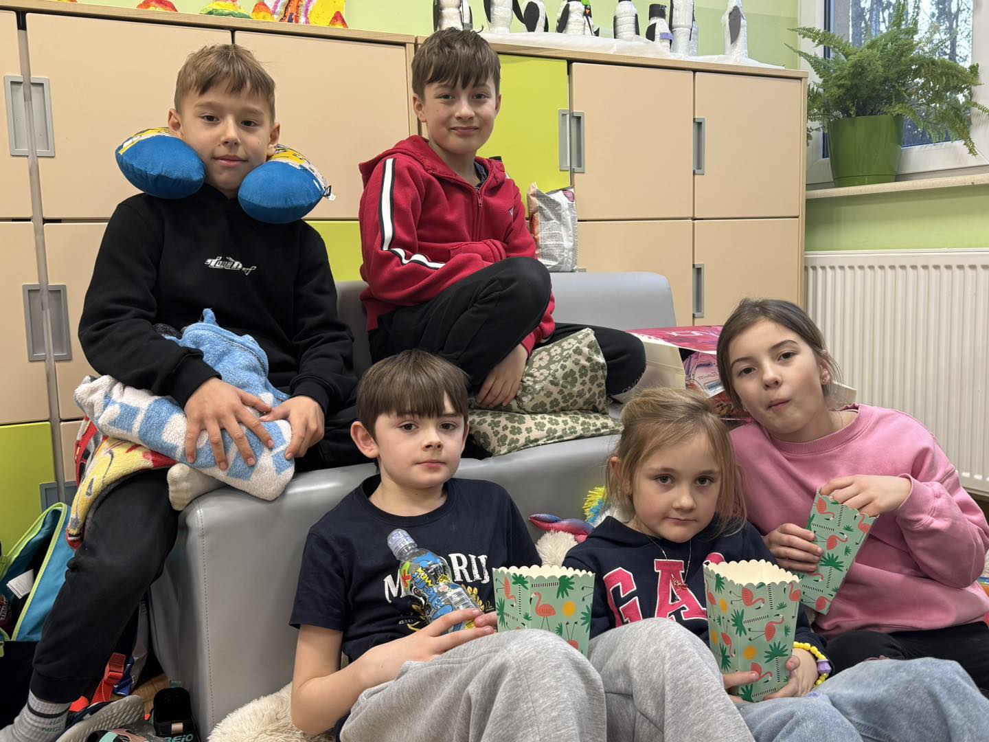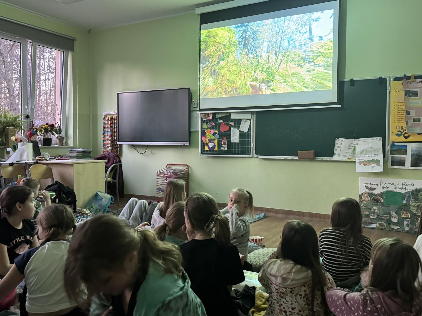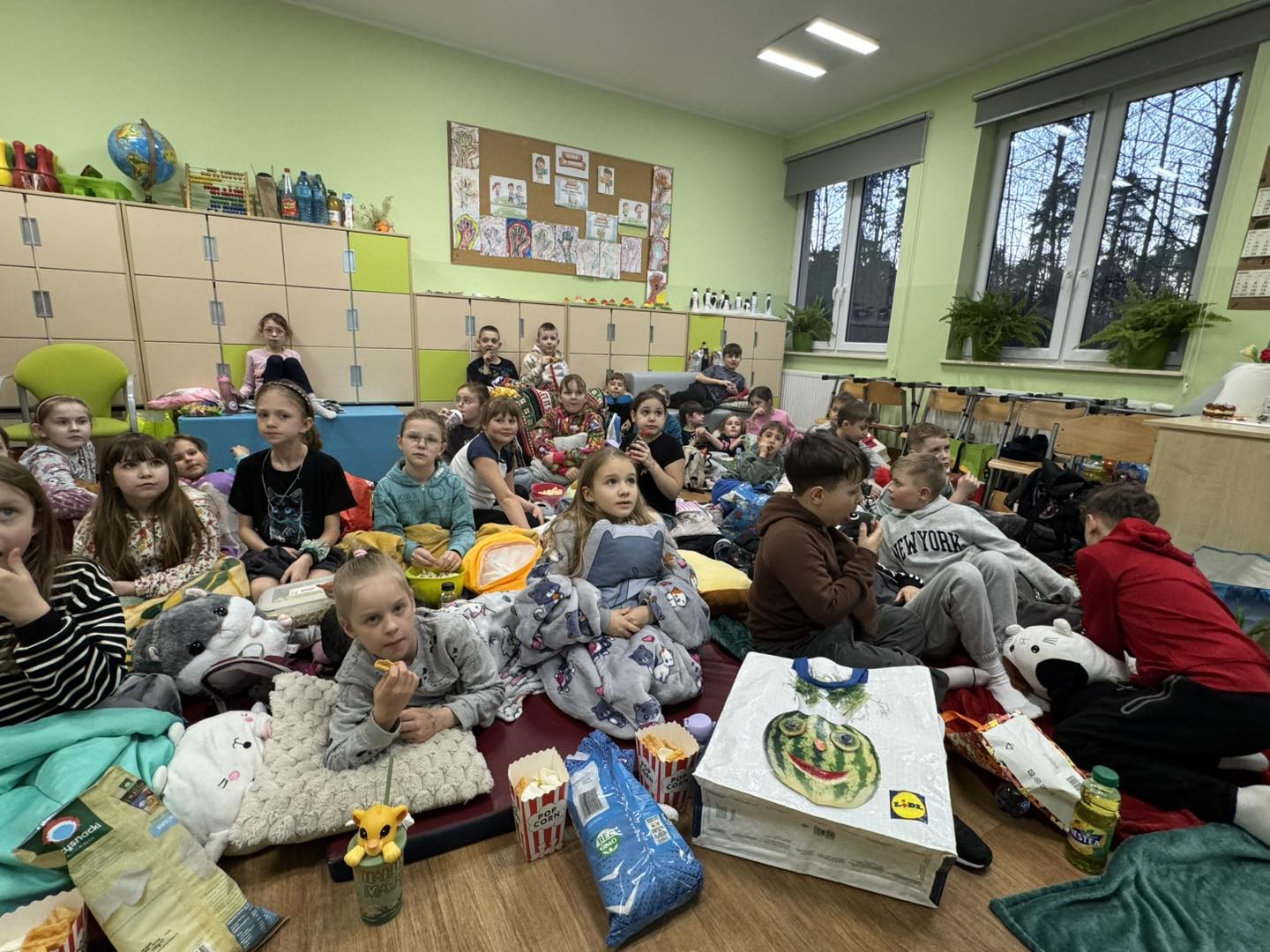 W piątek 28 marca w naszej szkole jedno z pomieszczeń na parterze zamieniło się w salę kinową . Wychowawczynie klas młodszych przygotowały dla dzieci niespodziankę - wieczór filmowy. Uczniowie obejrzeli bajkę pt. „Magiczna słonica” oraz film pt. „Ruby na ratunek”. Wszyscy bawili się doskonale!