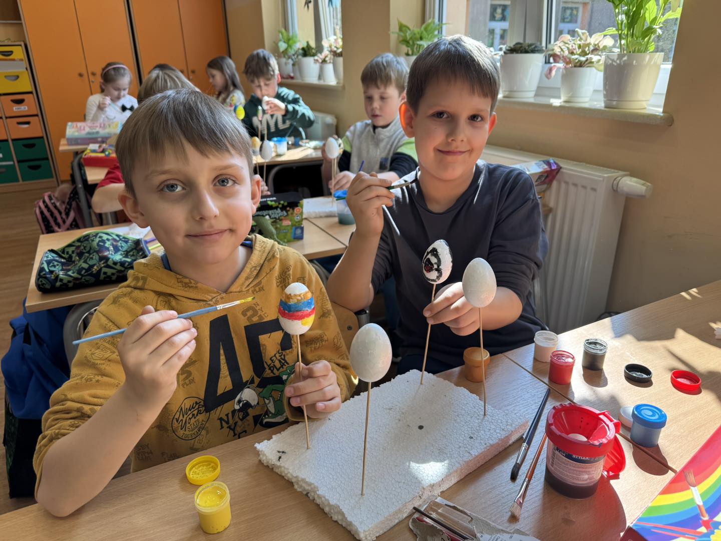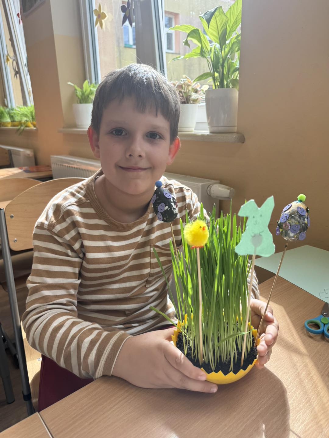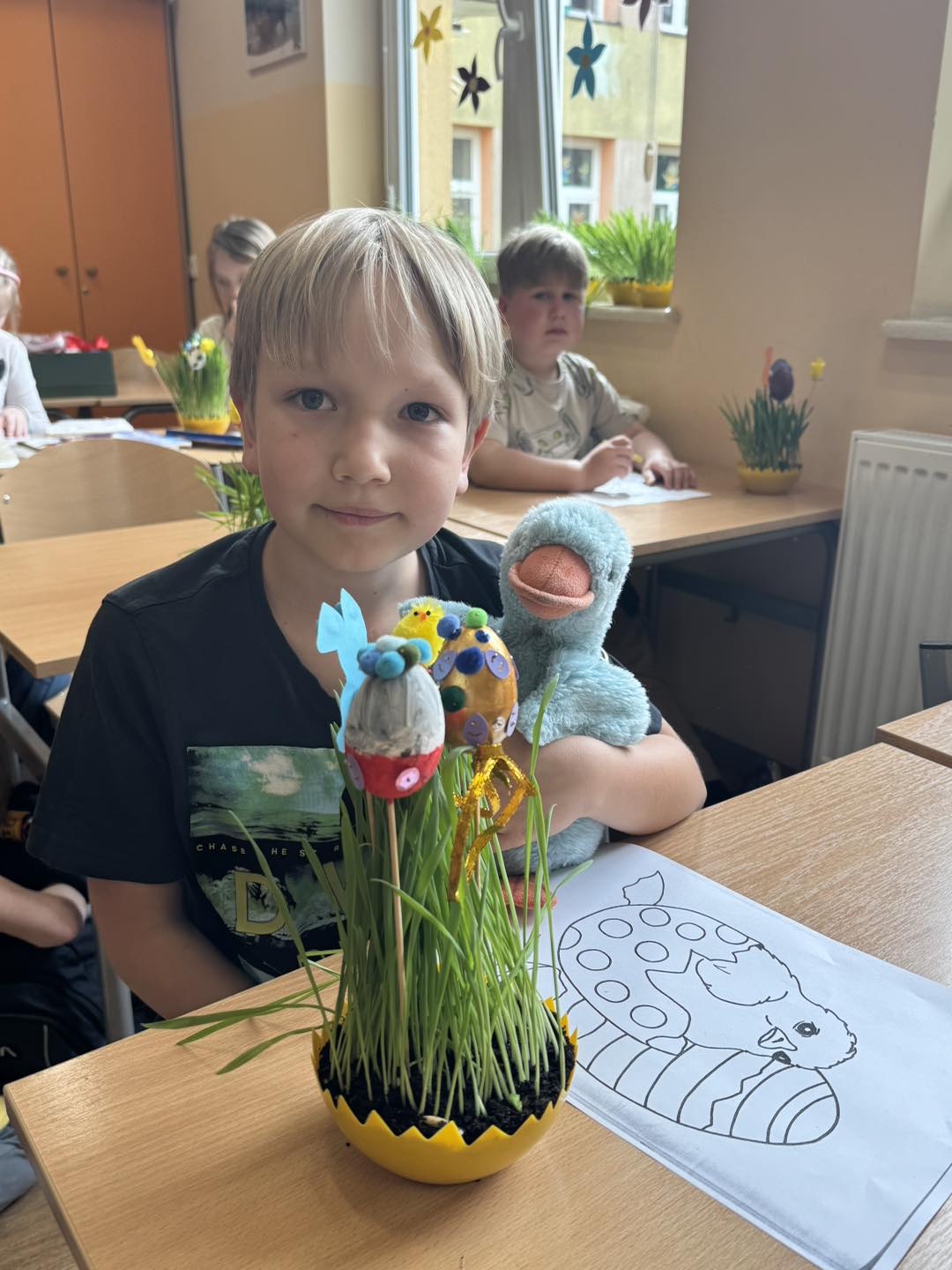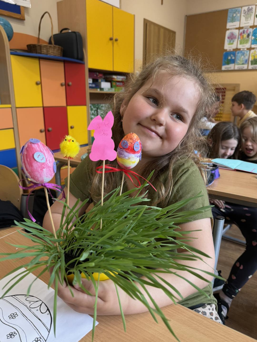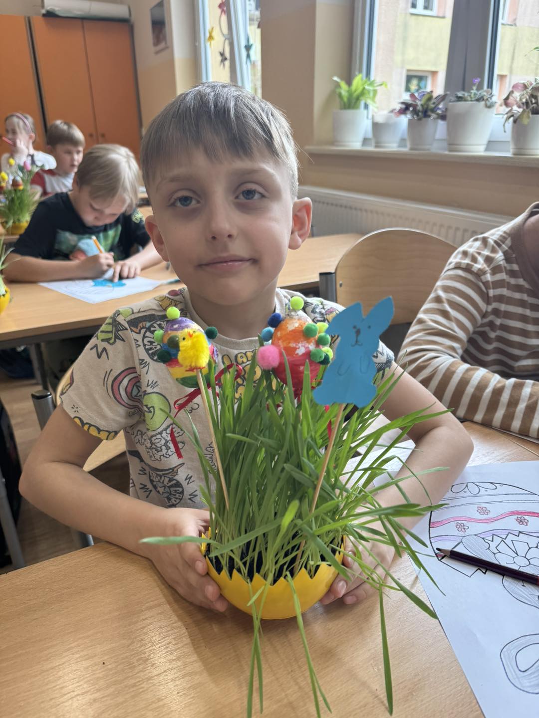 Wielkanoc kojarzy nam się z wiosną, przebudzeniem natury oraz radosnymi spotkaniami z rodziną. Przygotowania do Świąt Wielkanocnych klasa 1 rozpoczęła od poznania zwyczajów i tradycji ludowych. Następnie dzieci samodzielnie posiały owies, pomalowały i ozdobiły wielkanocne jajka oraz wykonały świątecznego króliczka. Powstały piękne stroiki, które udekorują domy uczniów na święta.