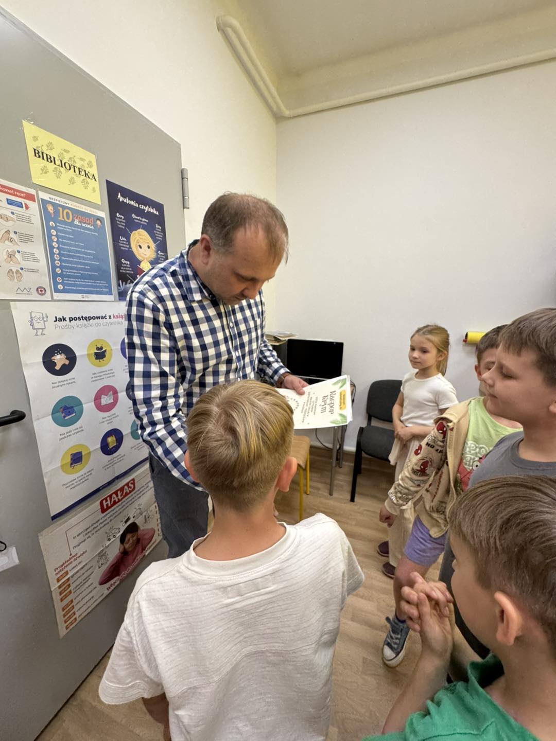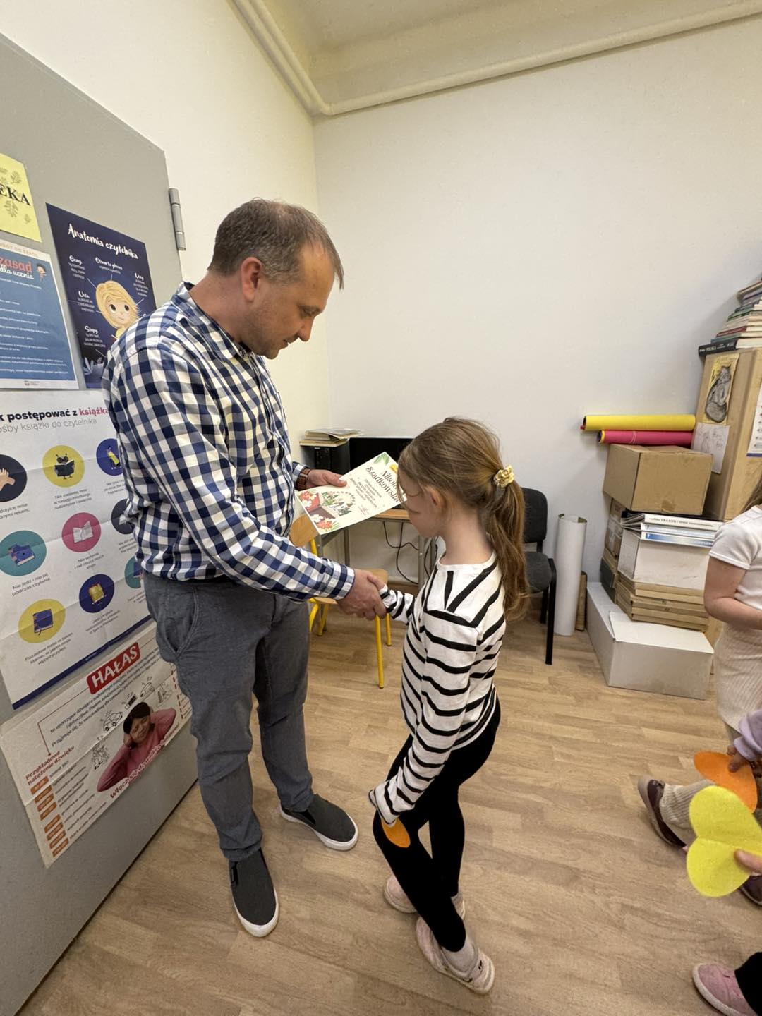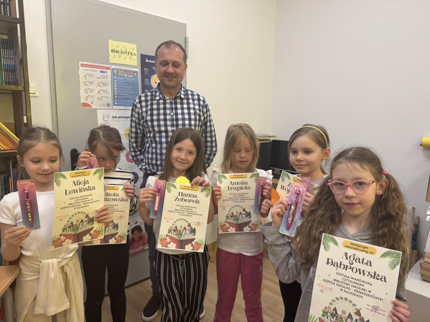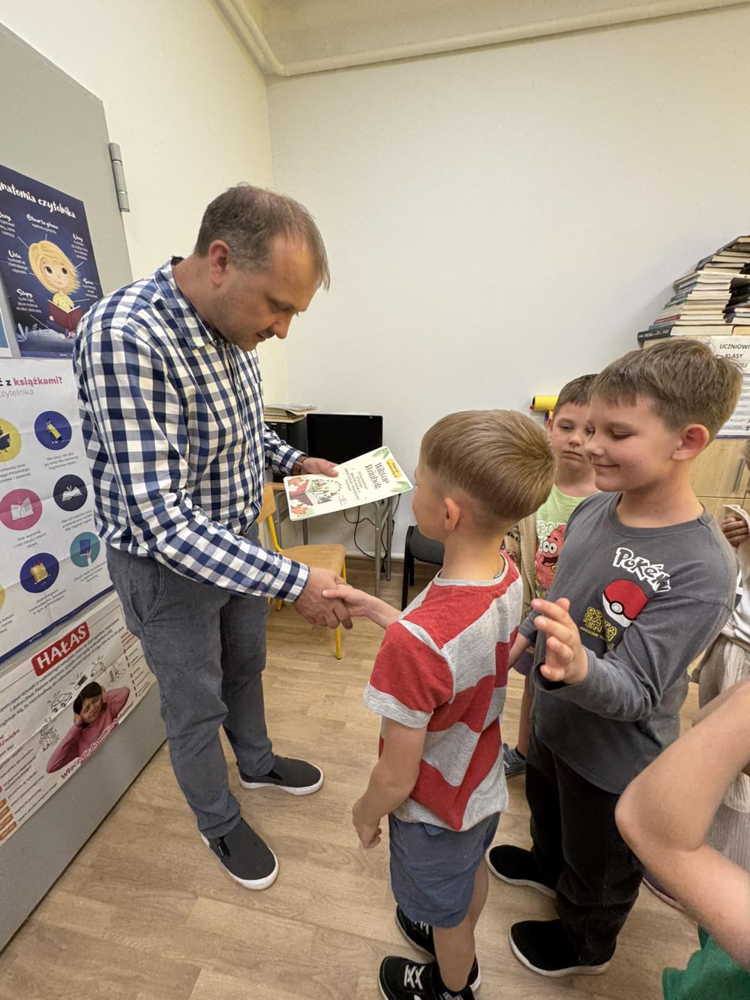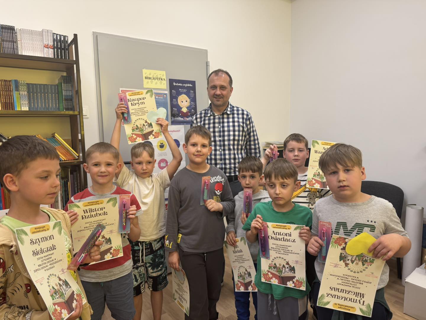 23 kwietnia obchodzimy Światowy Dzień Książki i Praw Autorskich. Właśnie tego dnia najmłodsi uczniowie naszej szkoły zostali oficjalnie przyjęci do grona czytelników biblioteki szkolnej. Głównym celem uroczystego wydarzenia było zachęcenie dzieci do systematycznego odwiedzania biblioteki szkolnej oraz promowanie czytelnictwa. Bardzo dziękujemy Pani Halince Roszczyk za przygotowanie wspaniałych zadań, zagadek, dyplomów i upominków dla dzieci oraz Panu Dyrektorowi za uroczyste pasowanie na czytelników uczniów klasy 1.