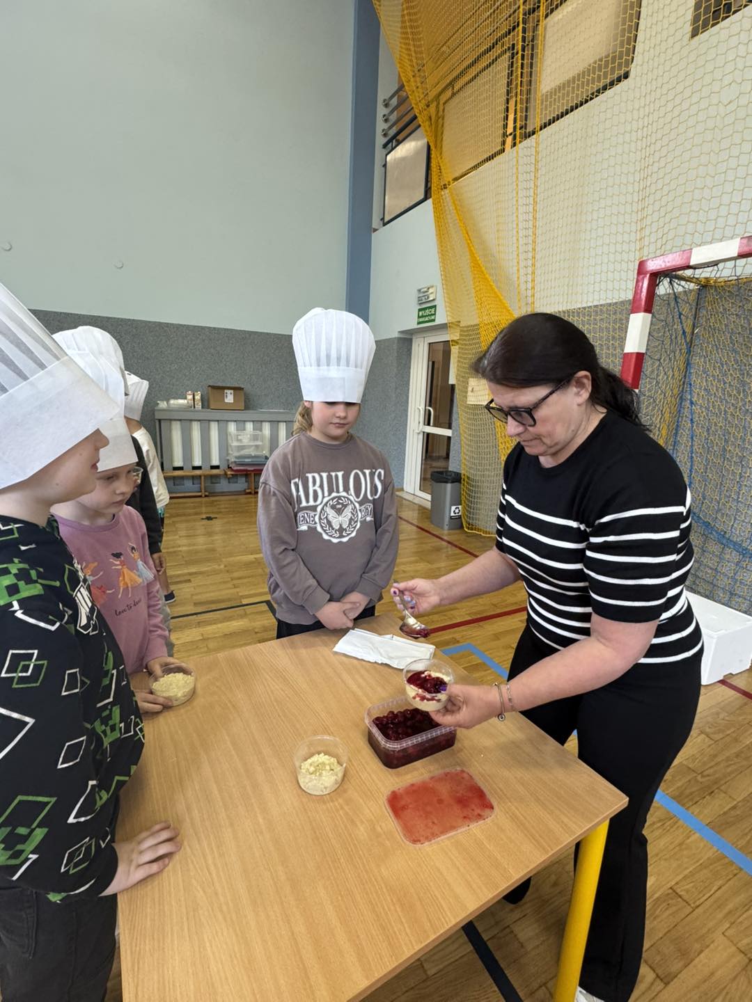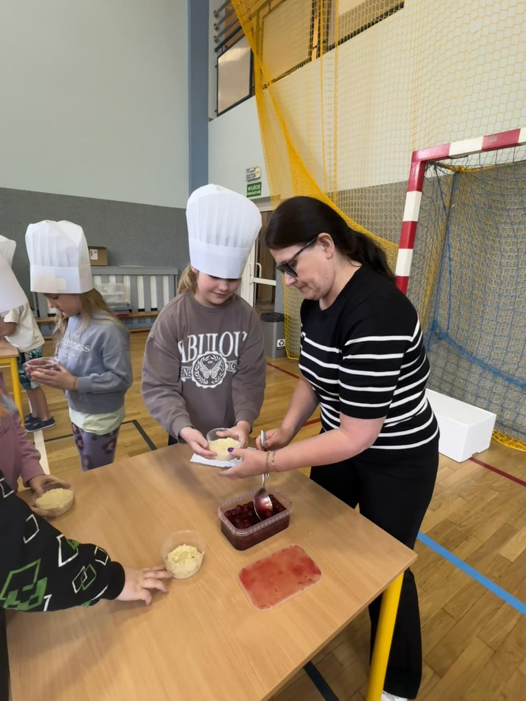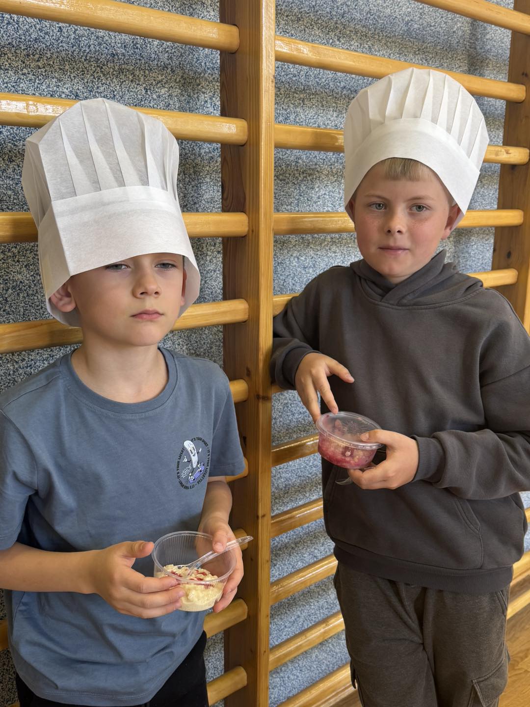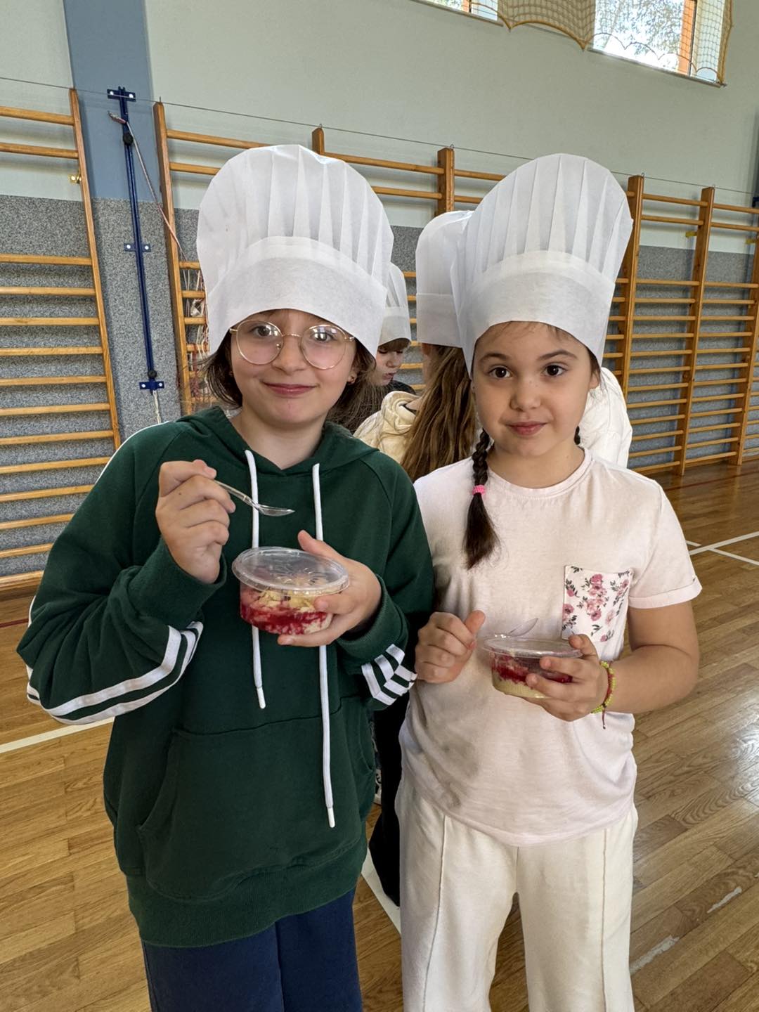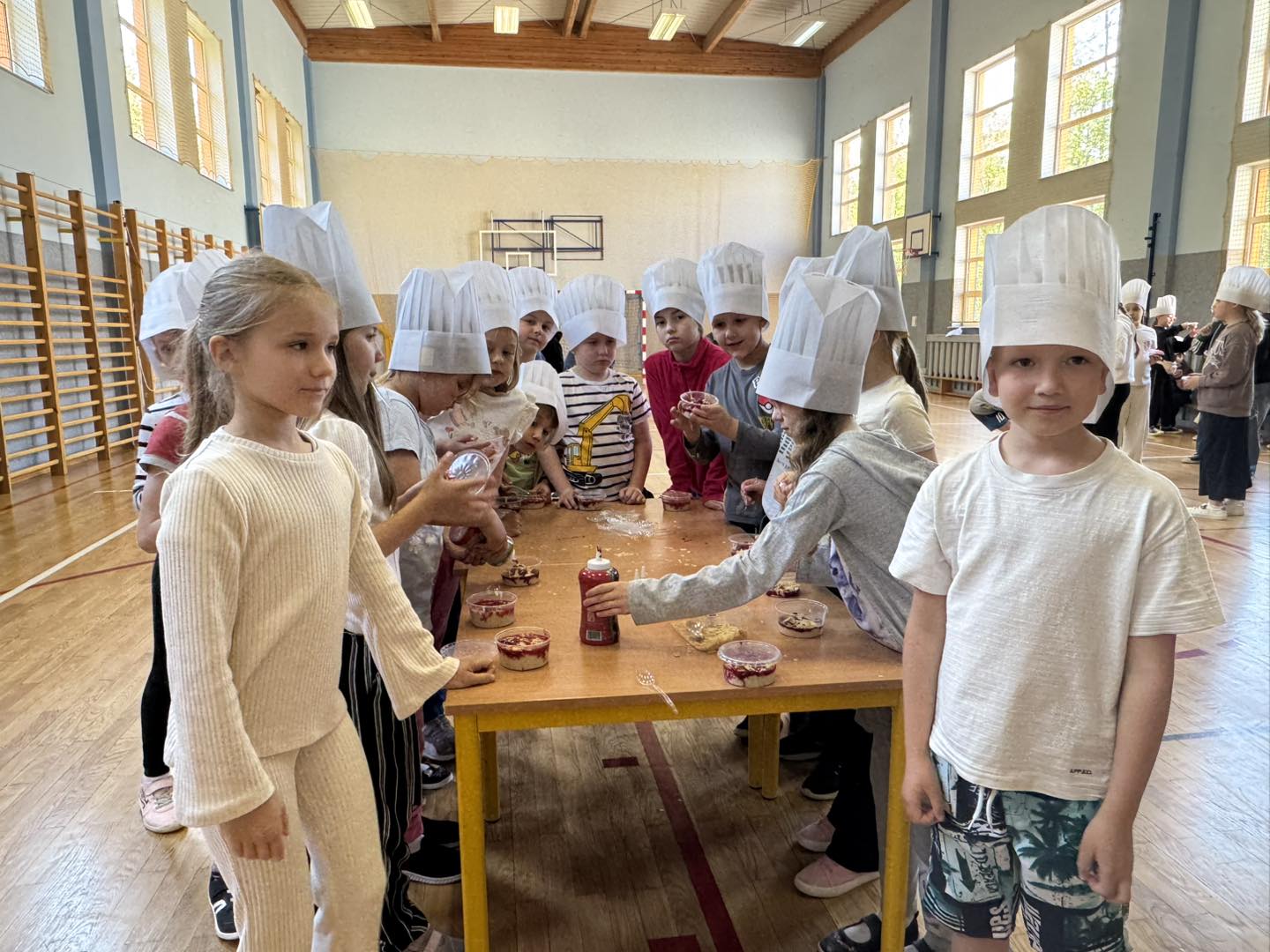 24 kwietnia klasy 1 - 3 wspólnie celebrowały najważniejszy posiłek dnia. Doskonale wiemy, że śniadanie dostarcza nam energii potrzebnej do prawidłowego funkcjonowania organizmu. Dzięki uprzejmości Pana Pawła Oszczyka uczniowie mogli samodzielnie komponować zdrowe śniadanie, składające się z pudingu ryżowego gotowanego na mleku owsianym z dodatkiem sosu wiśniowego, malinowego lub o smaku owoców leśnych. Bardzo dziękujemy Panu Pawłowi za pyszną kulinarną niespodziankę!