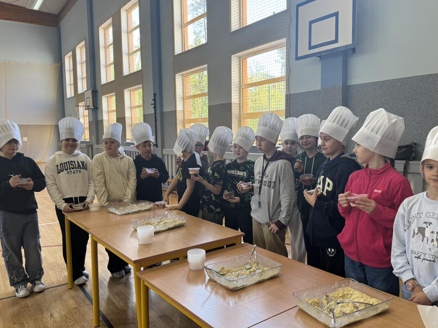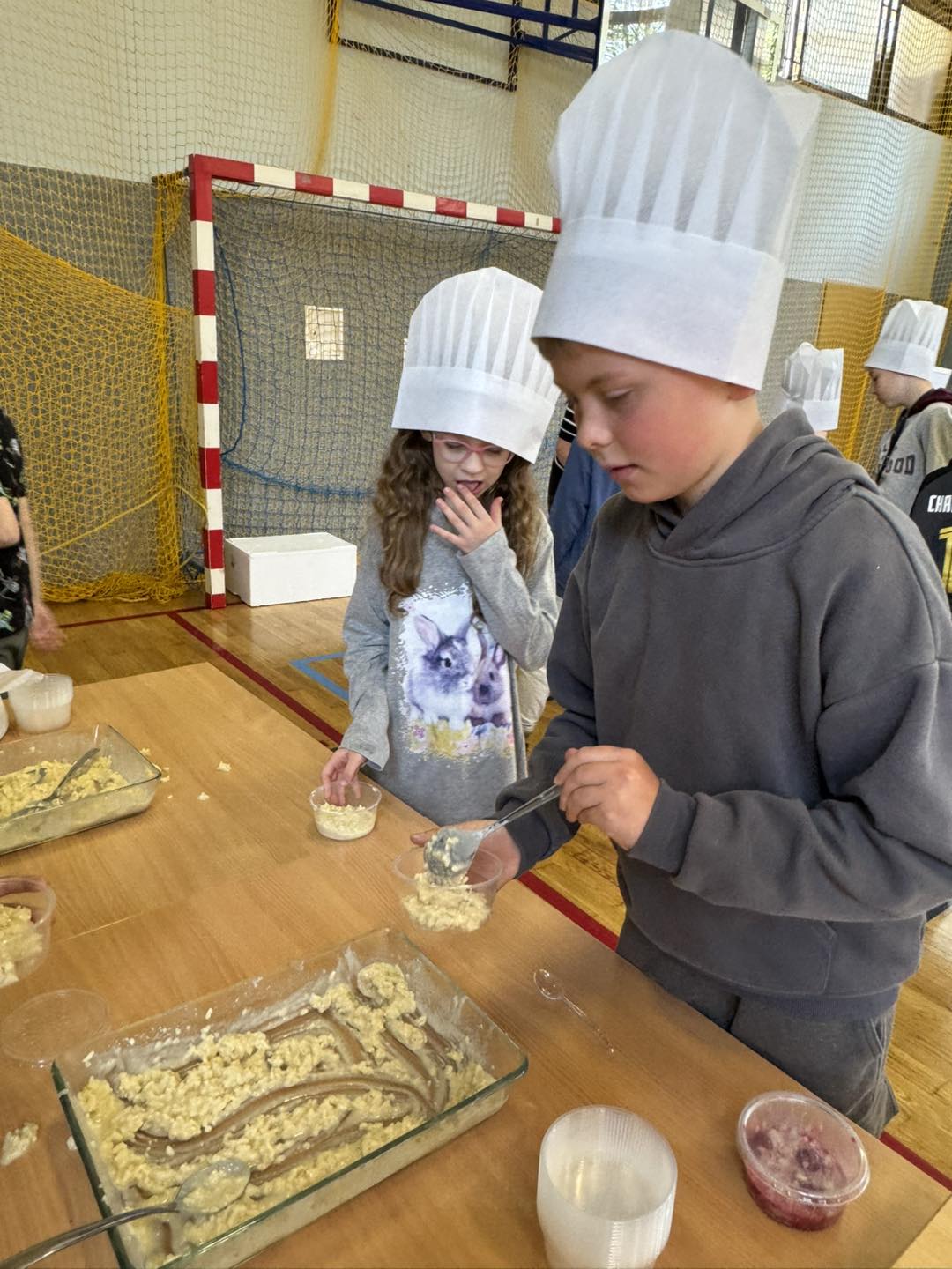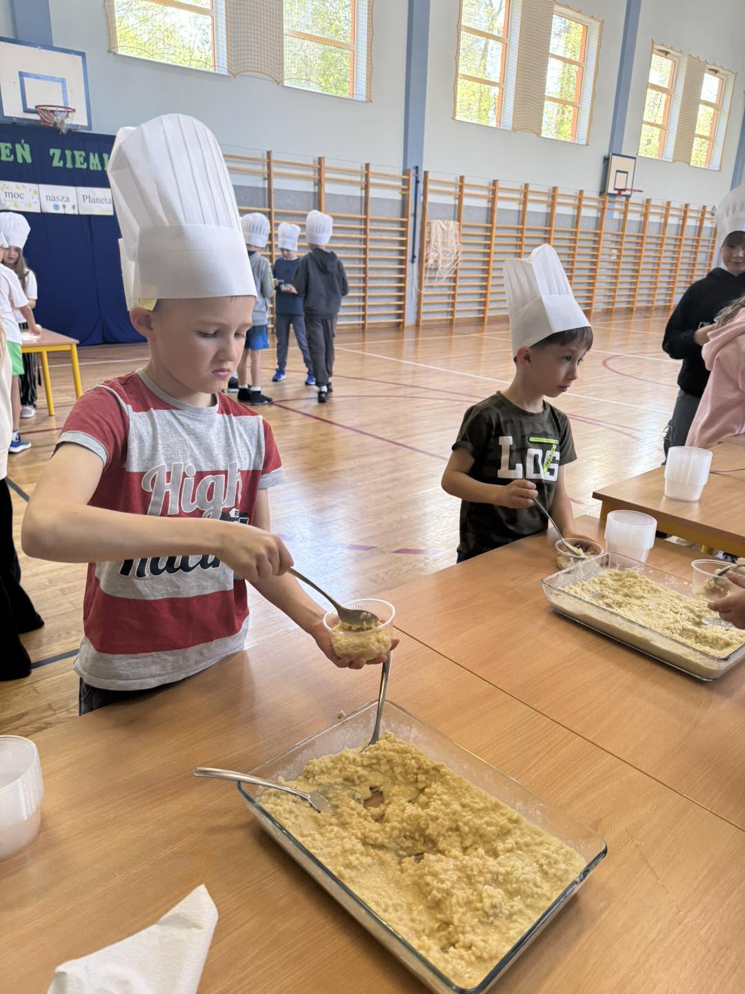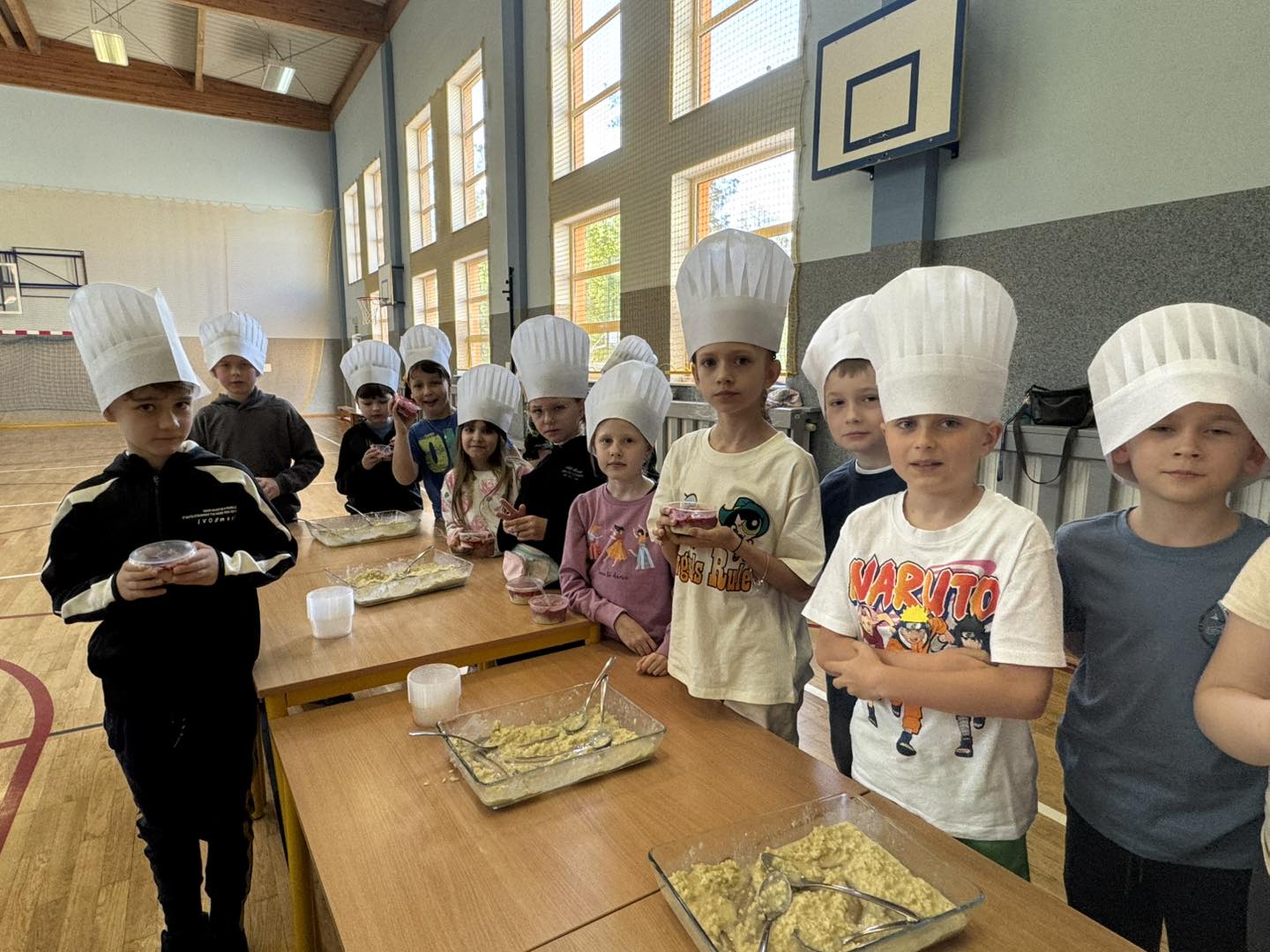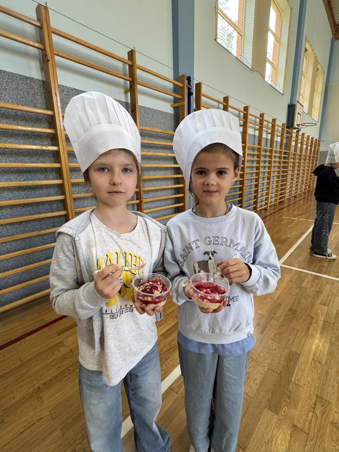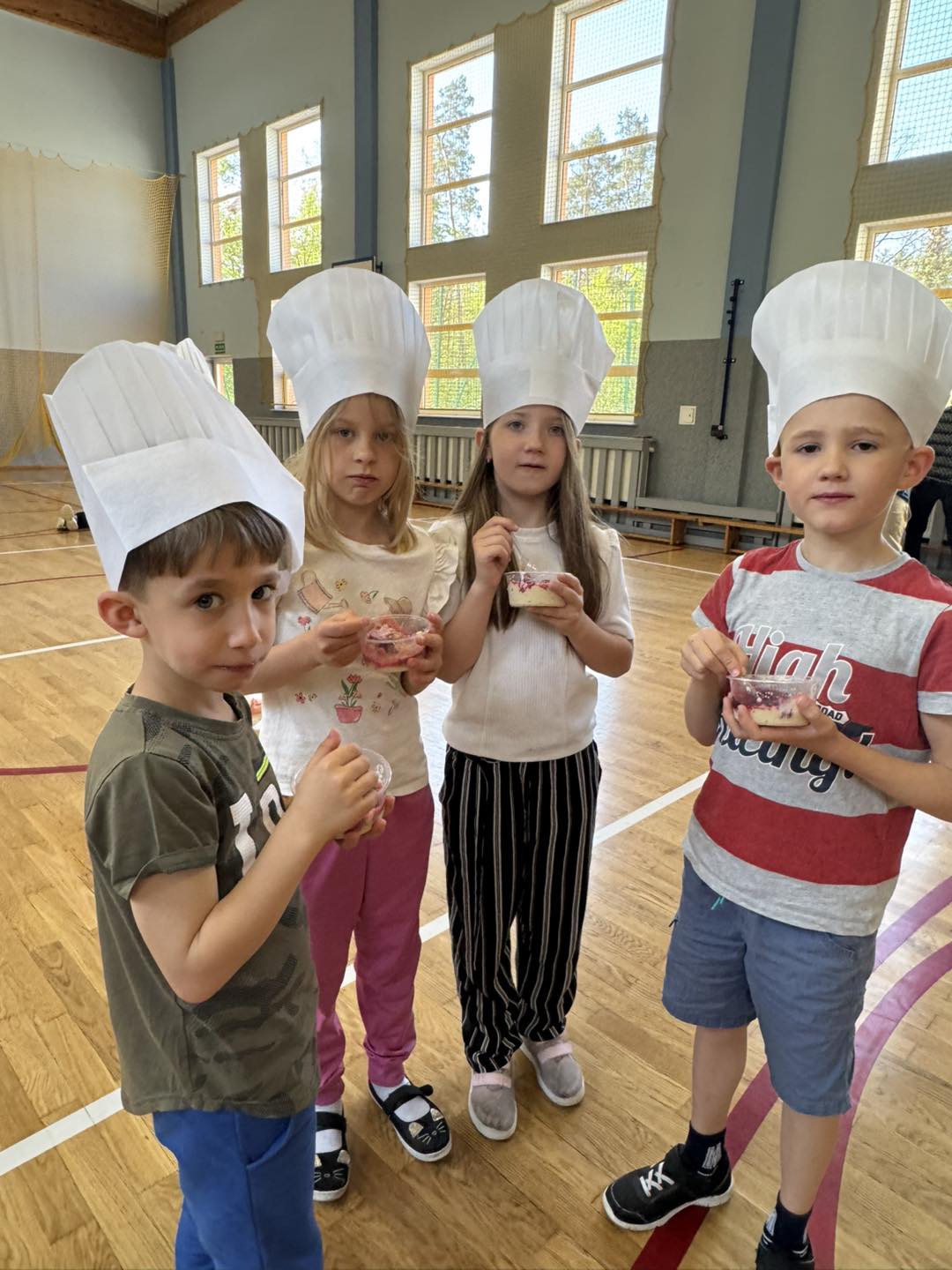 24 kwietnia klasy 1 - 3 wspólnie celebrowały najważniejszy posiłek dnia. Doskonale wiemy, że śniadanie dostarcza nam energii potrzebnej do prawidłowego funkcjonowania organizmu. Dzięki uprzejmości Pana Pawła Oszczyka uczniowie mogli samodzielnie komponować zdrowe śniadanie, składające się z pudingu ryżowego gotowanego na mleku owsianym z dodatkiem sosu wiśniowego, malinowego lub o smaku owoców leśnych. Bardzo dziękujemy Panu Pawłowi za pyszną kulinarną niespodziankę!