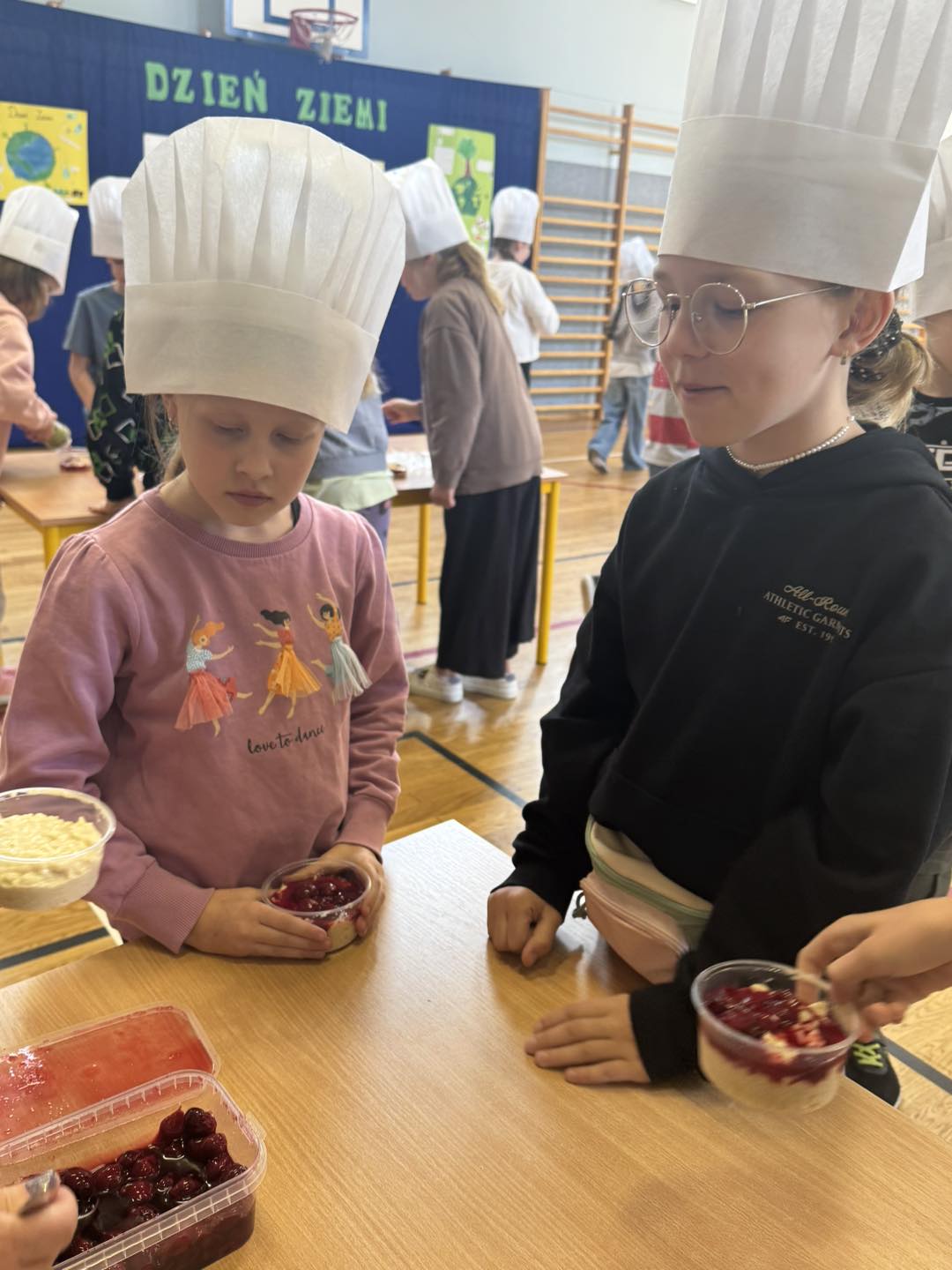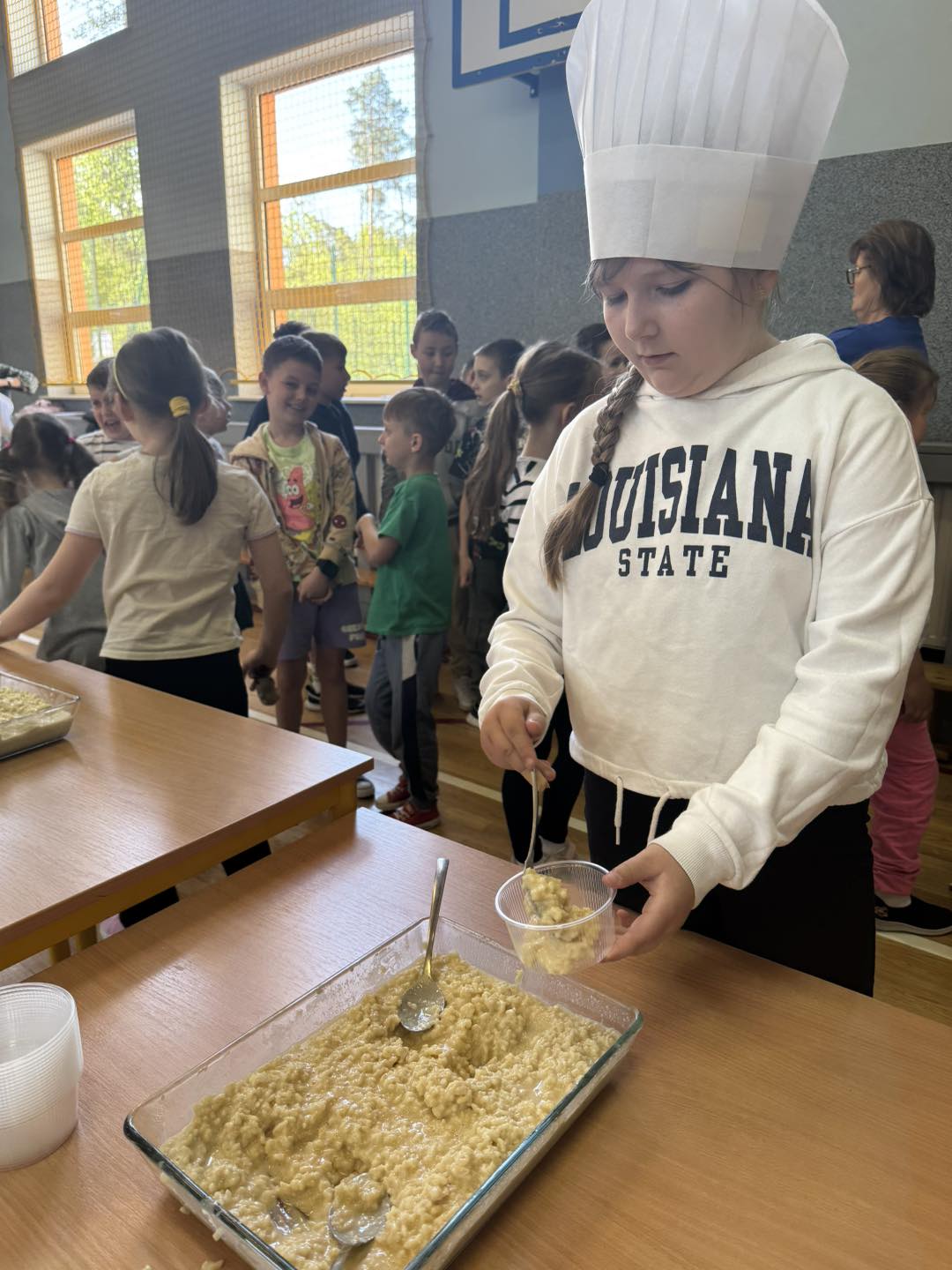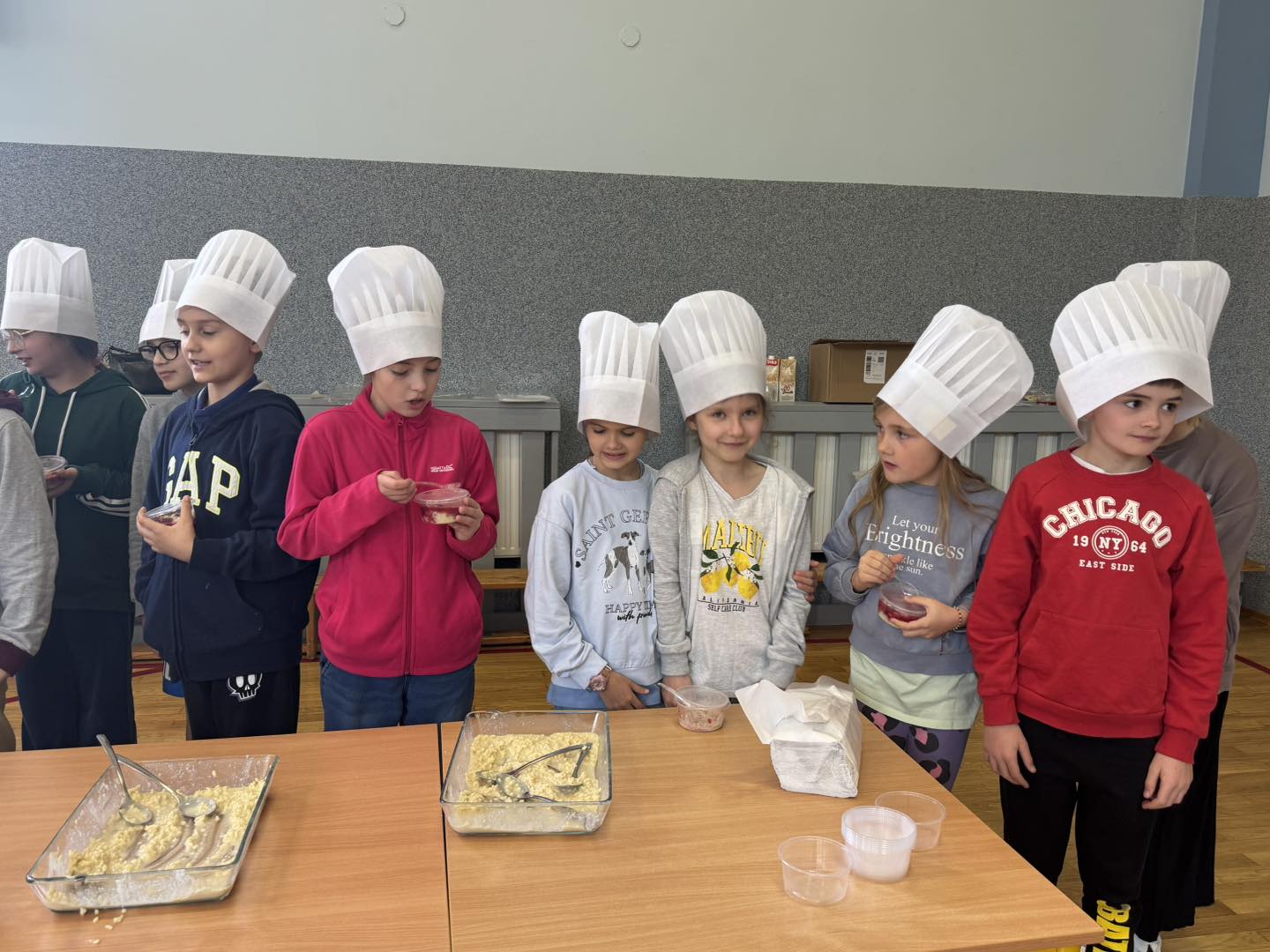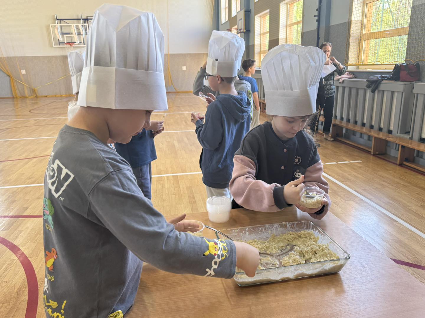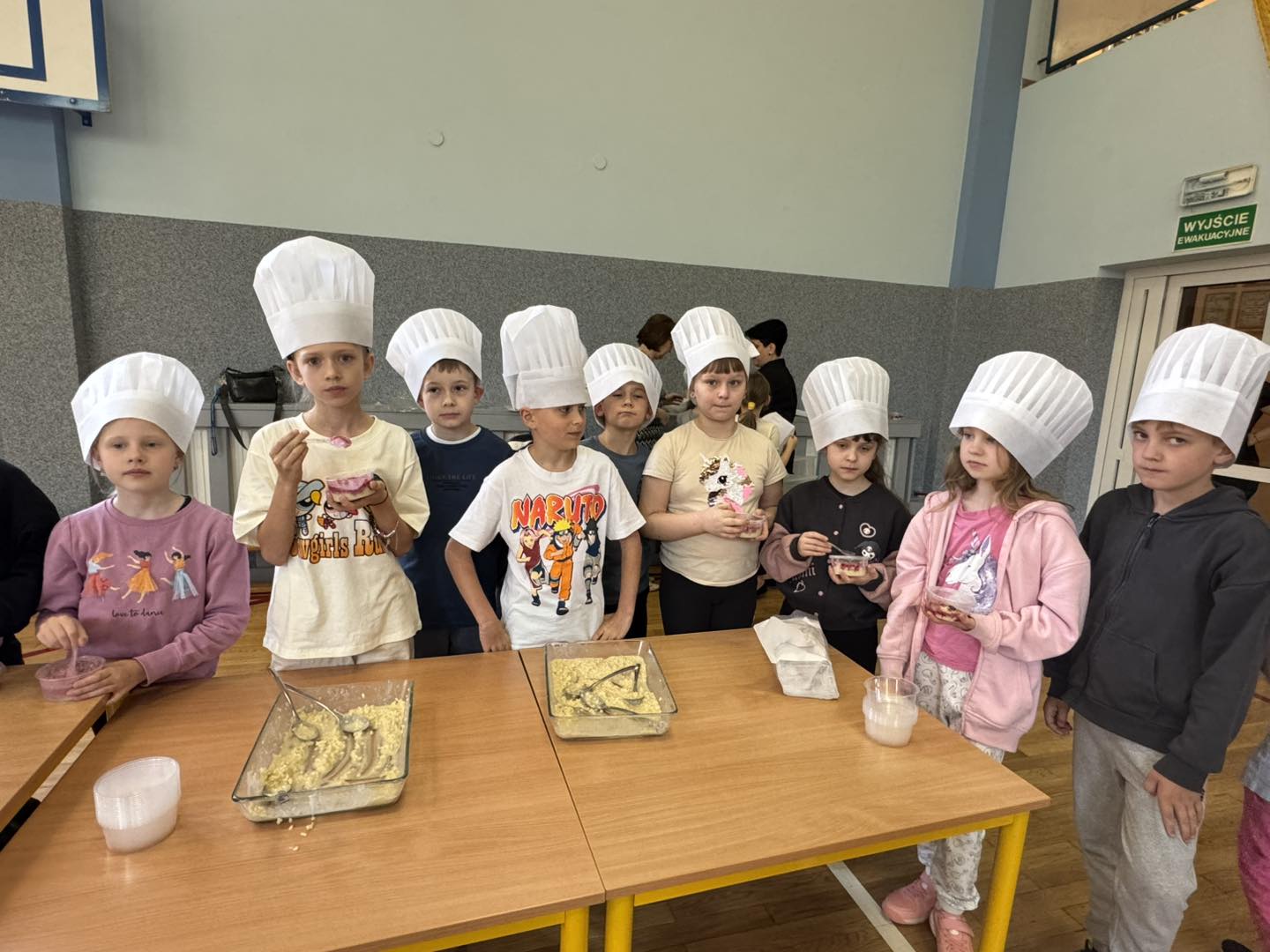 24 kwietnia klasy 1 - 3 wspólnie celebrowały najważniejszy posiłek dnia. Doskonale wiemy, że śniadanie dostarcza nam energii potrzebnej do prawidłowego funkcjonowania organizmu. Dzięki uprzejmości Pana Pawła Oszczyka uczniowie mogli samodzielnie komponować zdrowe śniadanie, składające się z pudingu ryżowego gotowanego na mleku owsianym z dodatkiem sosu wiśniowego, malinowego lub o smaku owoców leśnych. Bardzo dziękujemy Panu Pawłowi za pyszną kulinarną niespodziankę!