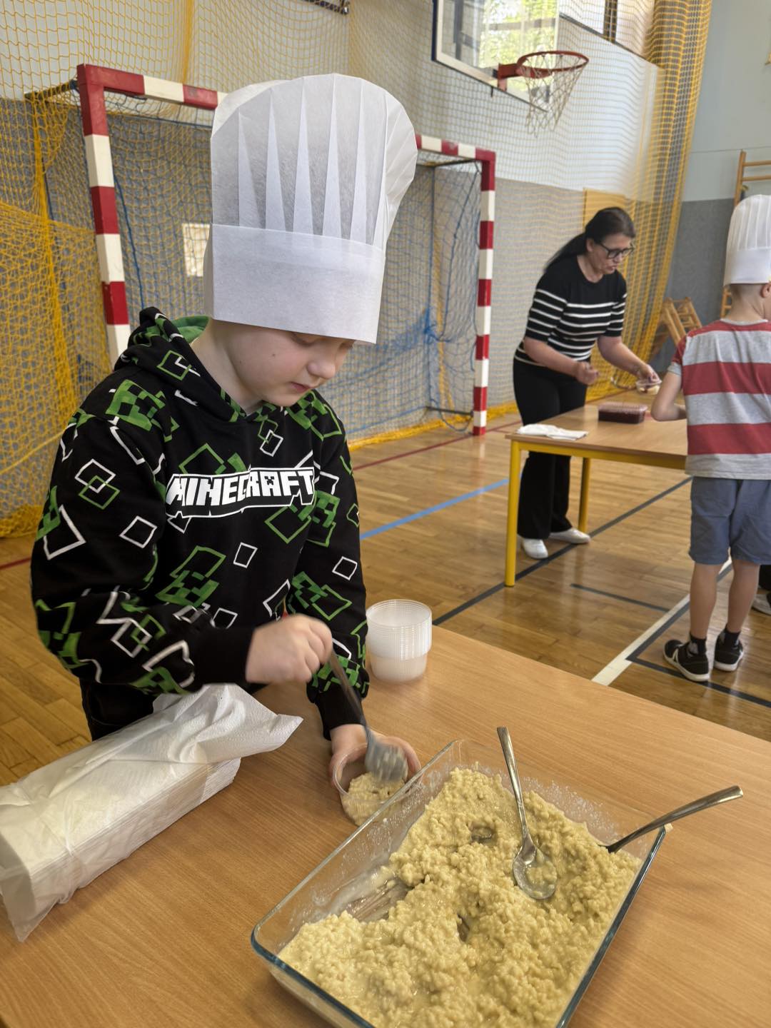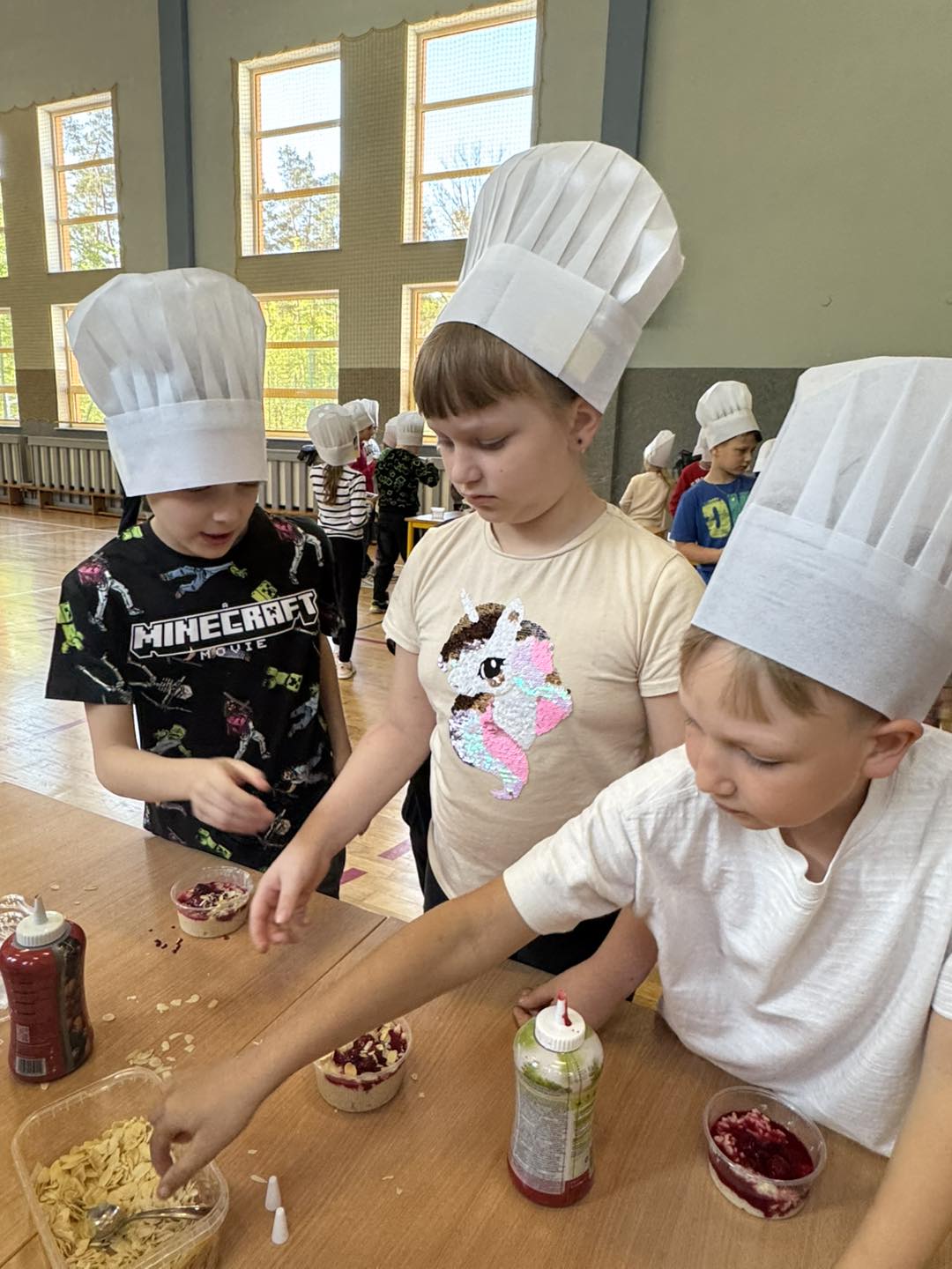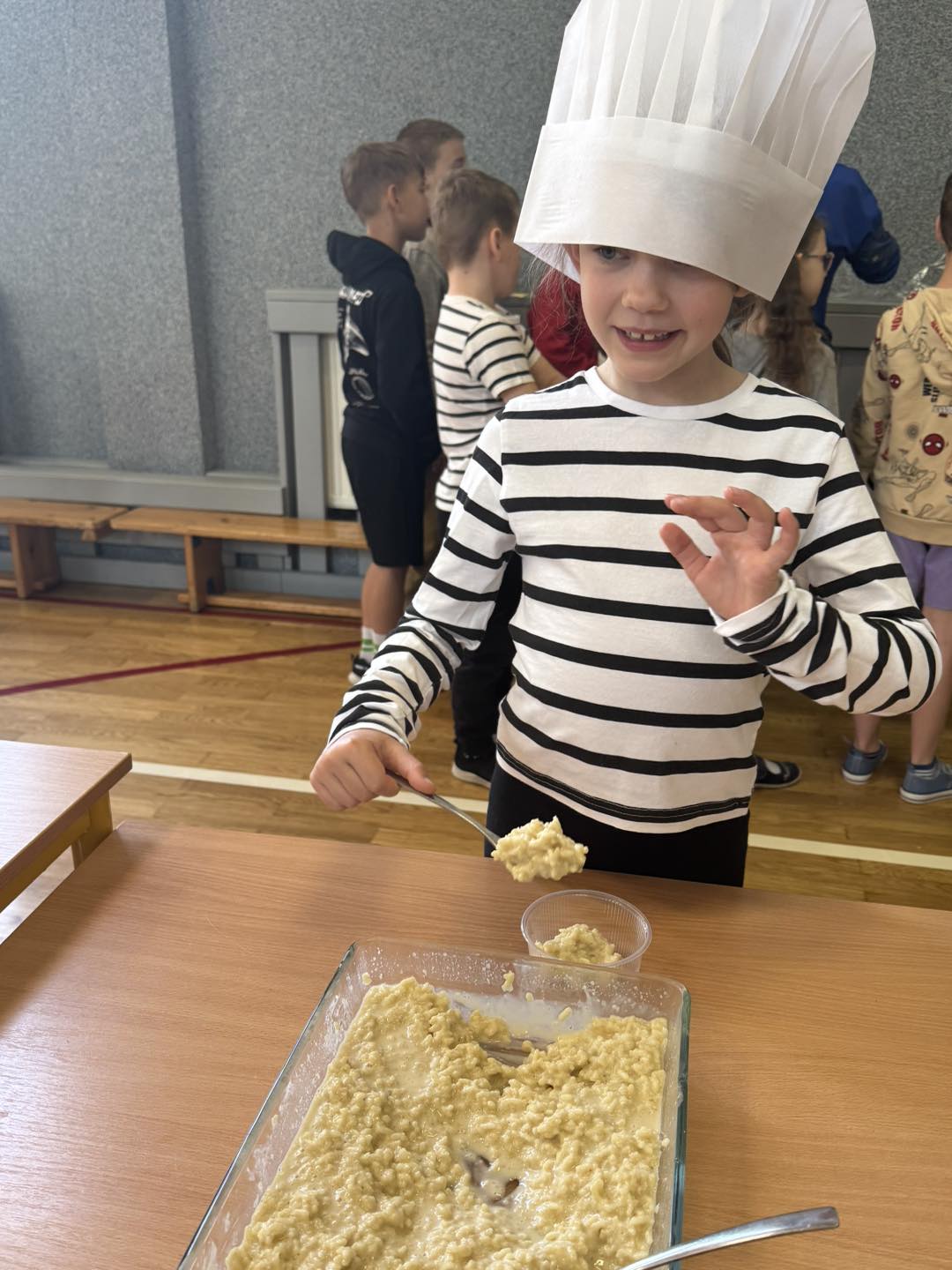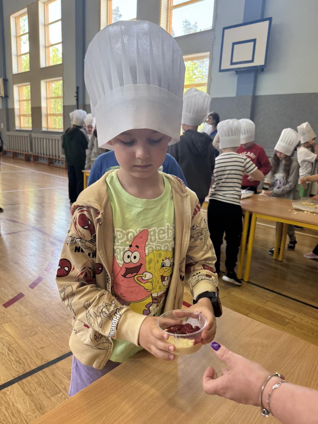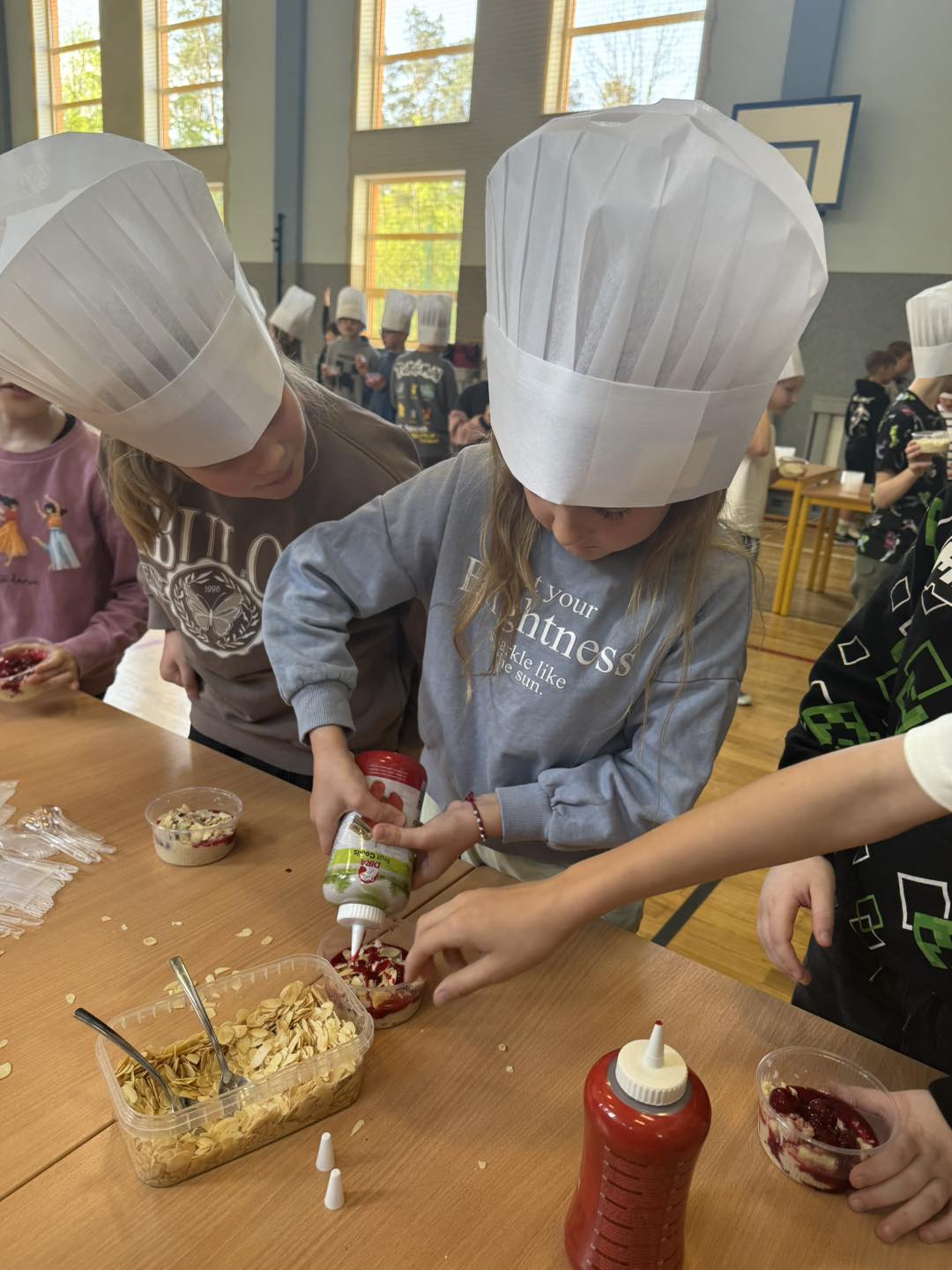 24 kwietnia klasy 1 - 3 wspólnie celebrowały najważniejszy posiłek dnia. Doskonale wiemy, że śniadanie dostarcza nam energii potrzebnej do prawidłowego funkcjonowania organizmu. Dzięki uprzejmości Pana Pawła Oszczyka uczniowie mogli samodzielnie komponować zdrowe śniadanie, składające się z pudingu ryżowego gotowanego na mleku owsianym z dodatkiem sosu wiśniowego, malinowego lub o smaku owoców leśnych. Bardzo dziękujemy Panu Pawłowi za pyszną kulinarną niespodziankę!