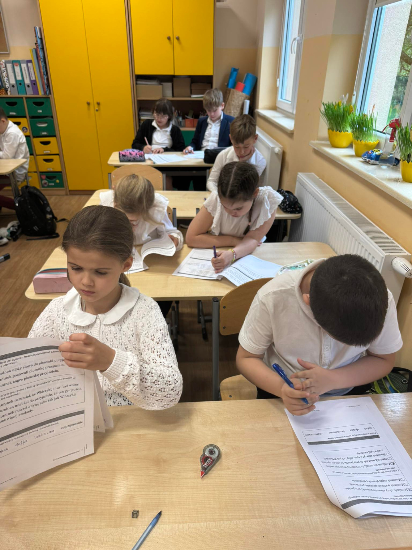 24 i 28 kwietnia 2025r. uczniowie klasy 3wzięli udział w Ogólnopolskim Teście Umiejętności Trzecioklasisty. Składa się z dwóch części: edukacji polonistycznej i matematycznej. Test pozwala rzetelnie sprawdzić wiedzę i kompetencje uczniów na zakończenie pierwszego etapu edukacyjnego. Sprawdzian obejmował następujące obszary: