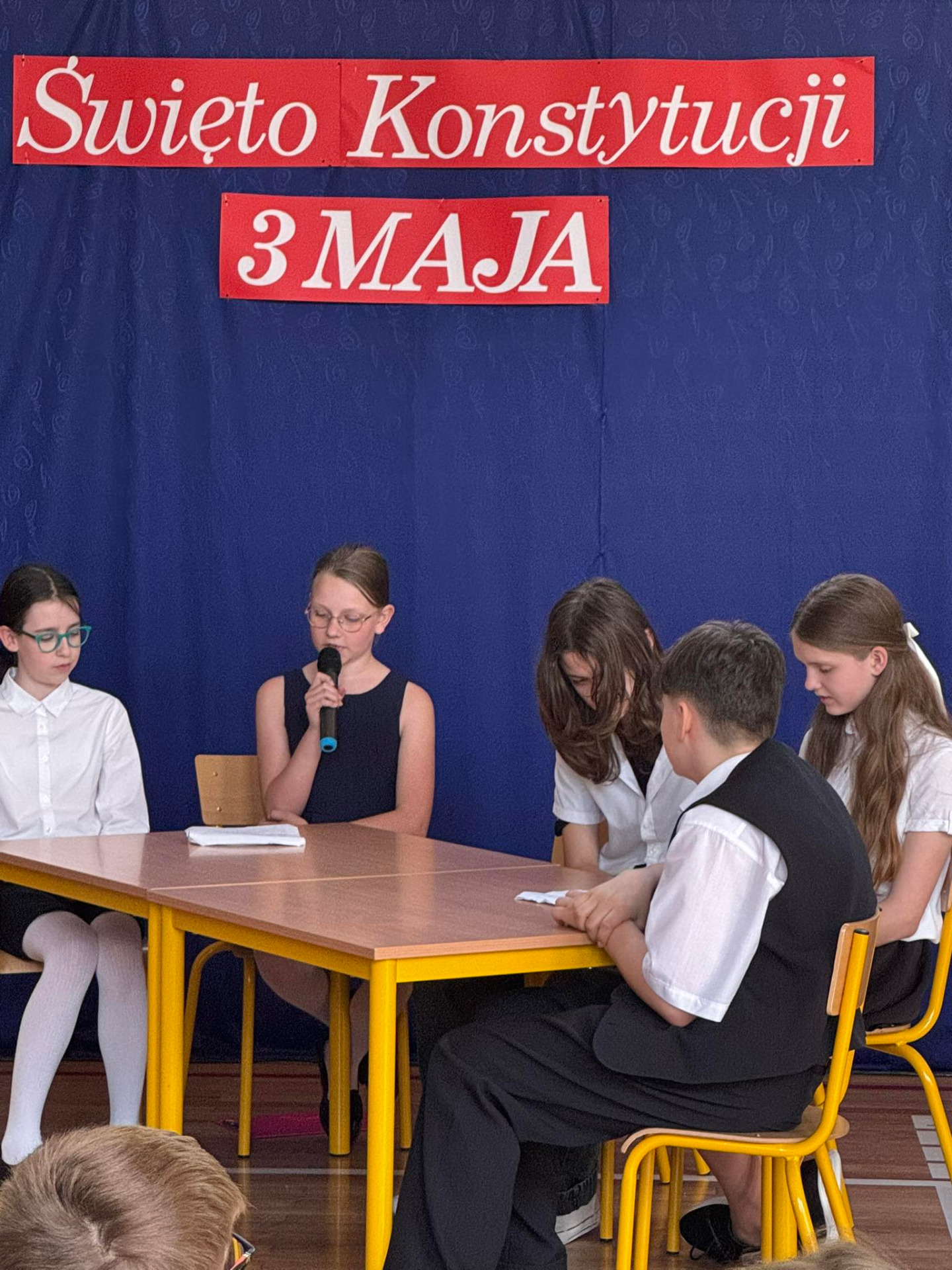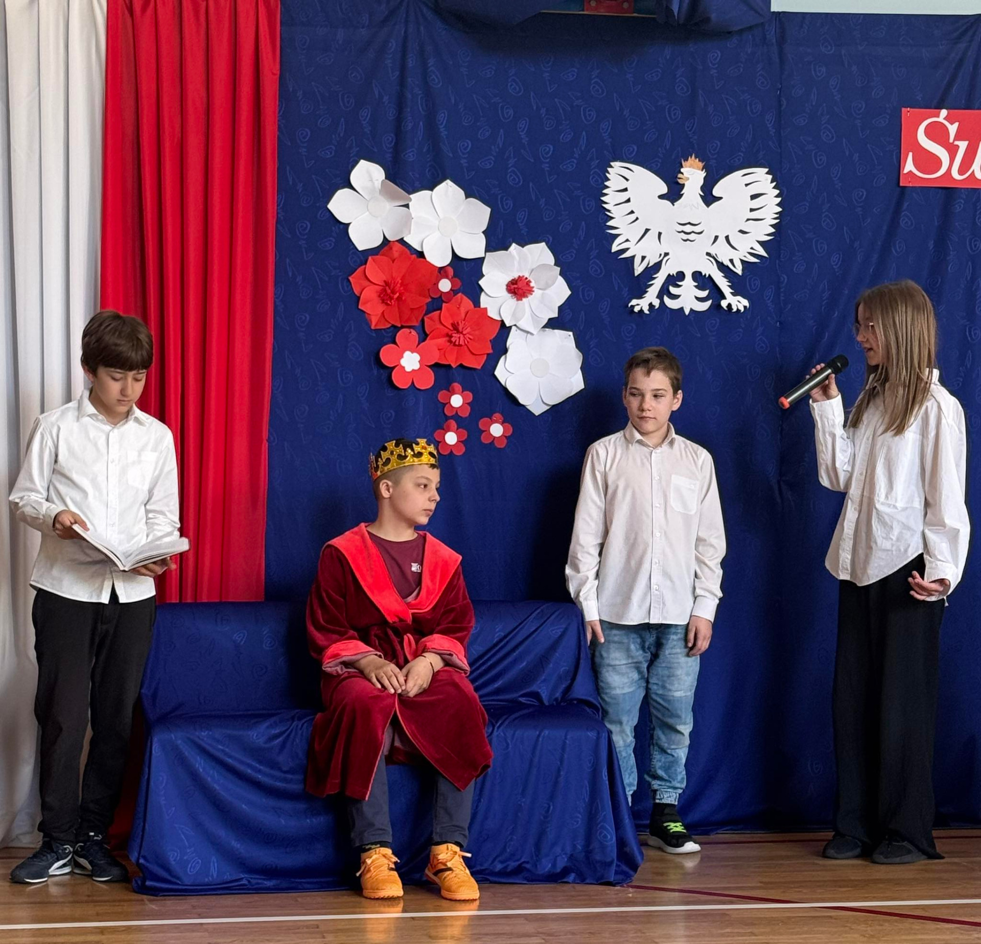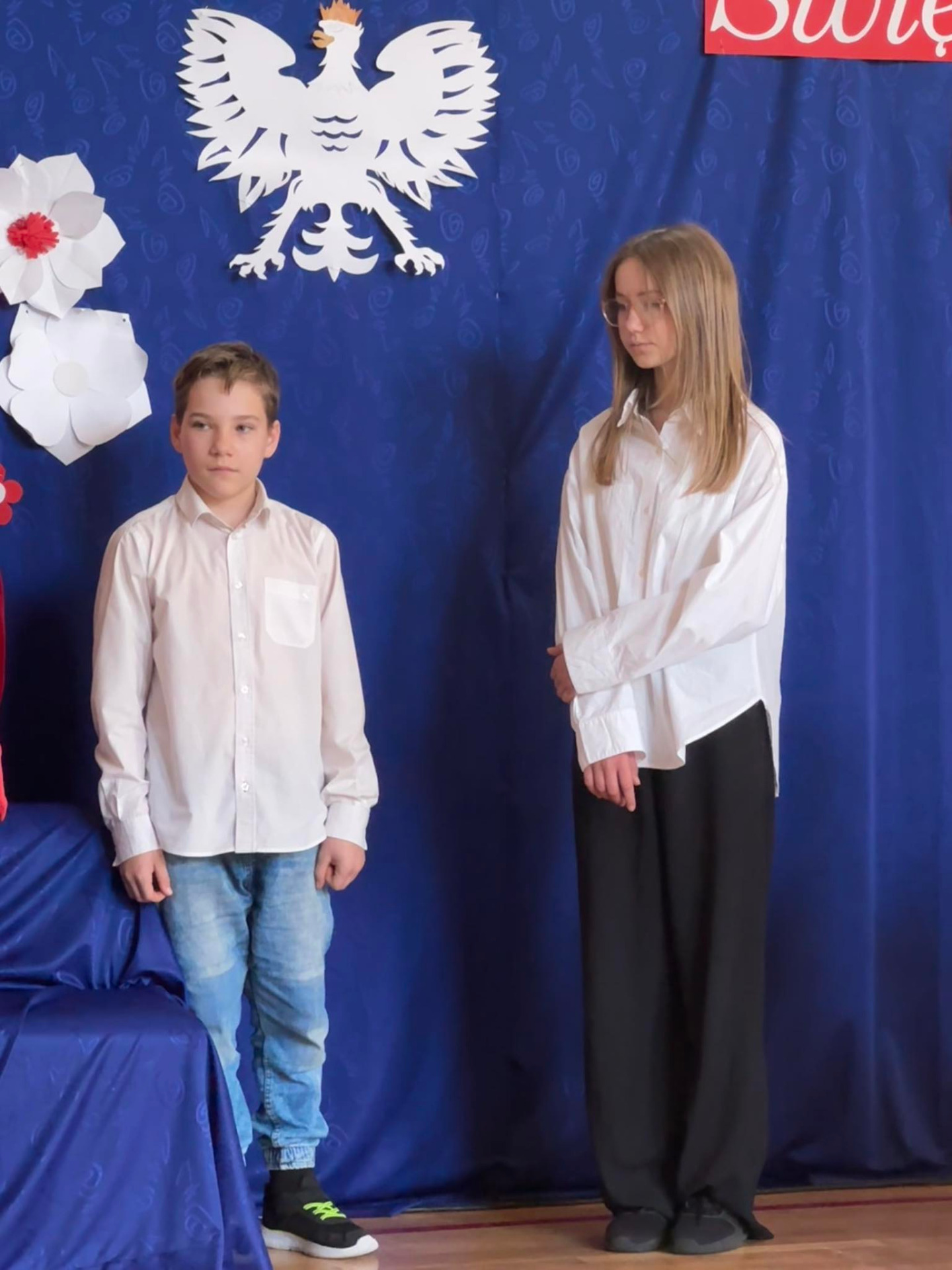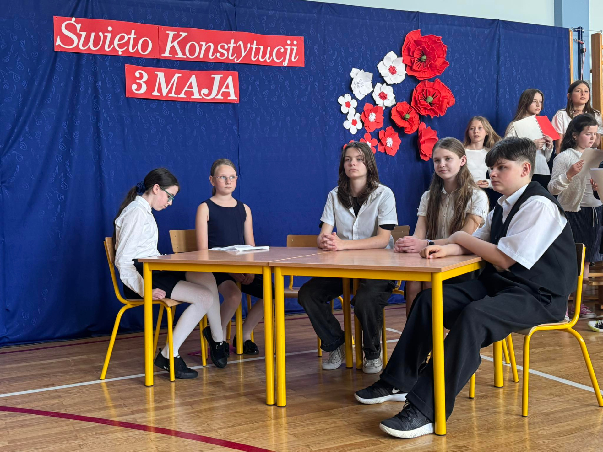 W środę (30.04.2025 r.) w naszej szkole odbył się apel związany z 234. rocznicą uchwalenia Konstytucji 3 Maja. Pan Dyrektor uroczyście wprowadził sztandar naszej placówki. Następnie wspólnie zaśpiewaliśmy hymn Polski i naszej szkoły/ Uczniowie klasy VII przekazali wiele ciekawych informacji dotyczących majowych świąt. Klasa V i VI przedstawiły specjalnie przygotowany program artystyczny. Chór szkolny zaprezentował kilka patriotycznych utworów. Zwieńczeniem uroczystości był przepiękny taniec z biało-czerwonymi flagami w wykonaniu uczniów klasy V i VI.