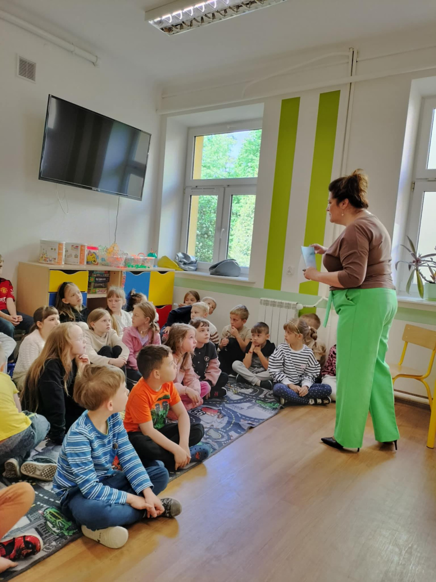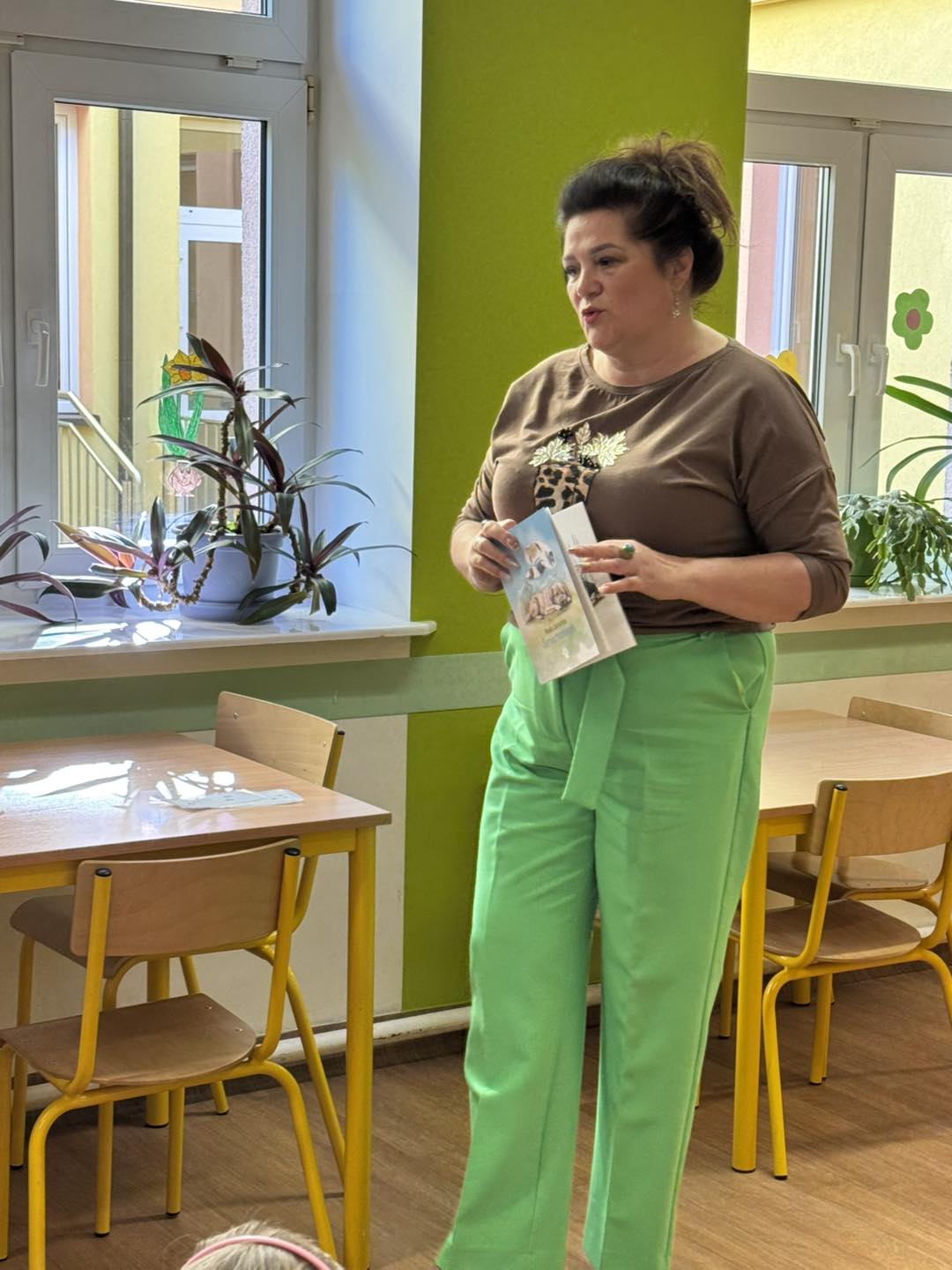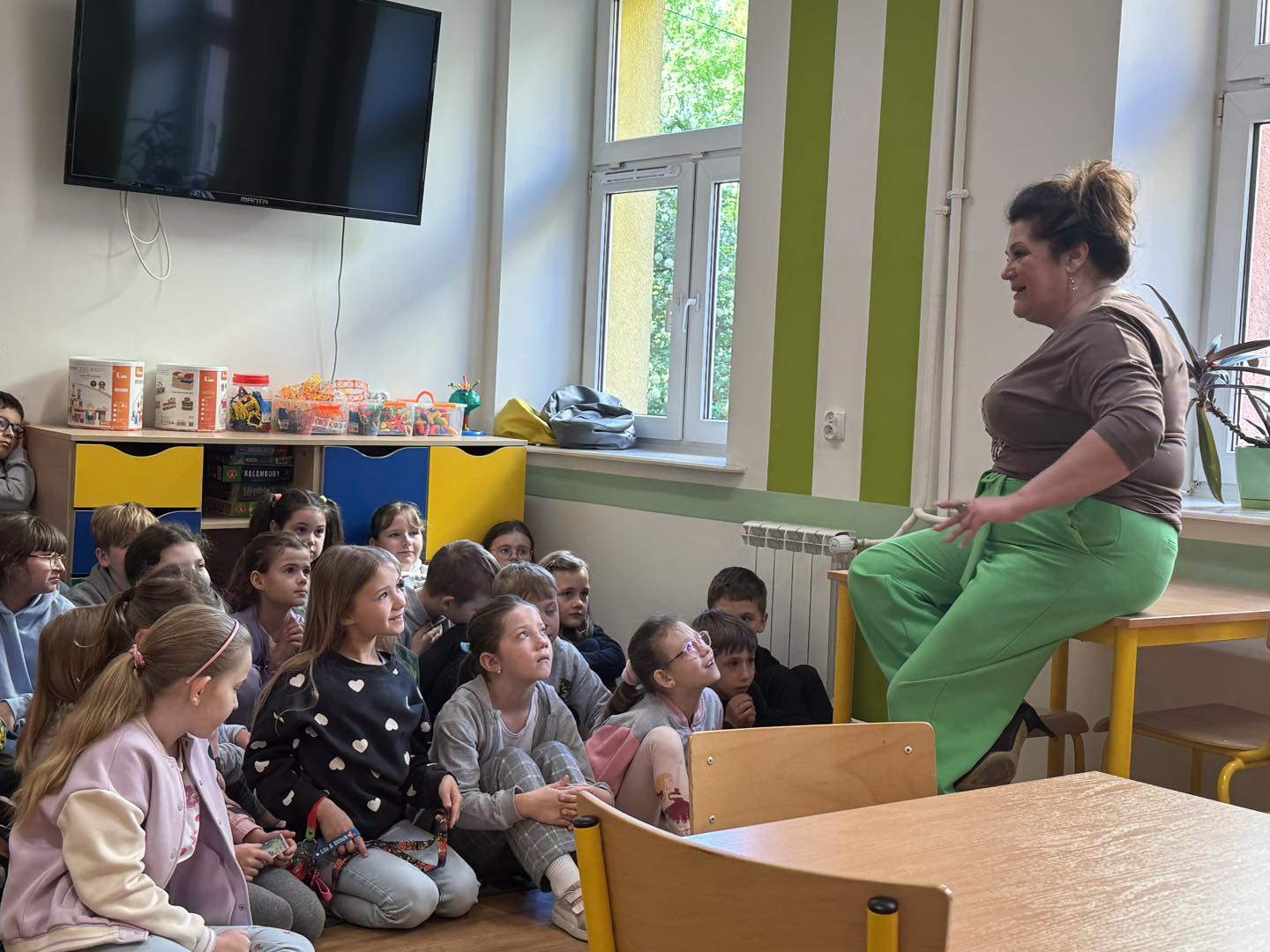 7 maja klasy młodsze uczestniczyły w bardzo ciekawym spotkaniu zorganizowanym w naszej szkole. Odwiedziła nas autorka książki dla dzieci pt. „Śmiechominek” opowiadającej historię uroczego psa o imieniu Gaja. Pani Beata Jeziorska przedstawiła również przygody innych zwierząt, które są bohaterami publikacji/ Pisarka przypomniała uczniom, że nasi „pupile” to istoty, które odczuwają emocje tak, jak my. O zwierzęta należy dbać i dobrze się nimi opiekować. Bardzo dziękujemy za miłe spotkanie i wspólną zabawę!