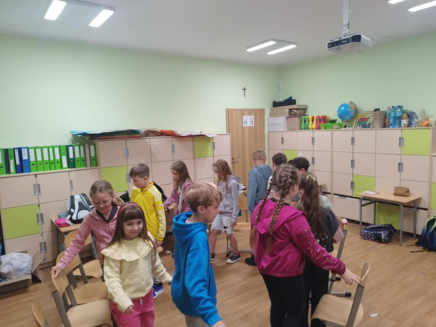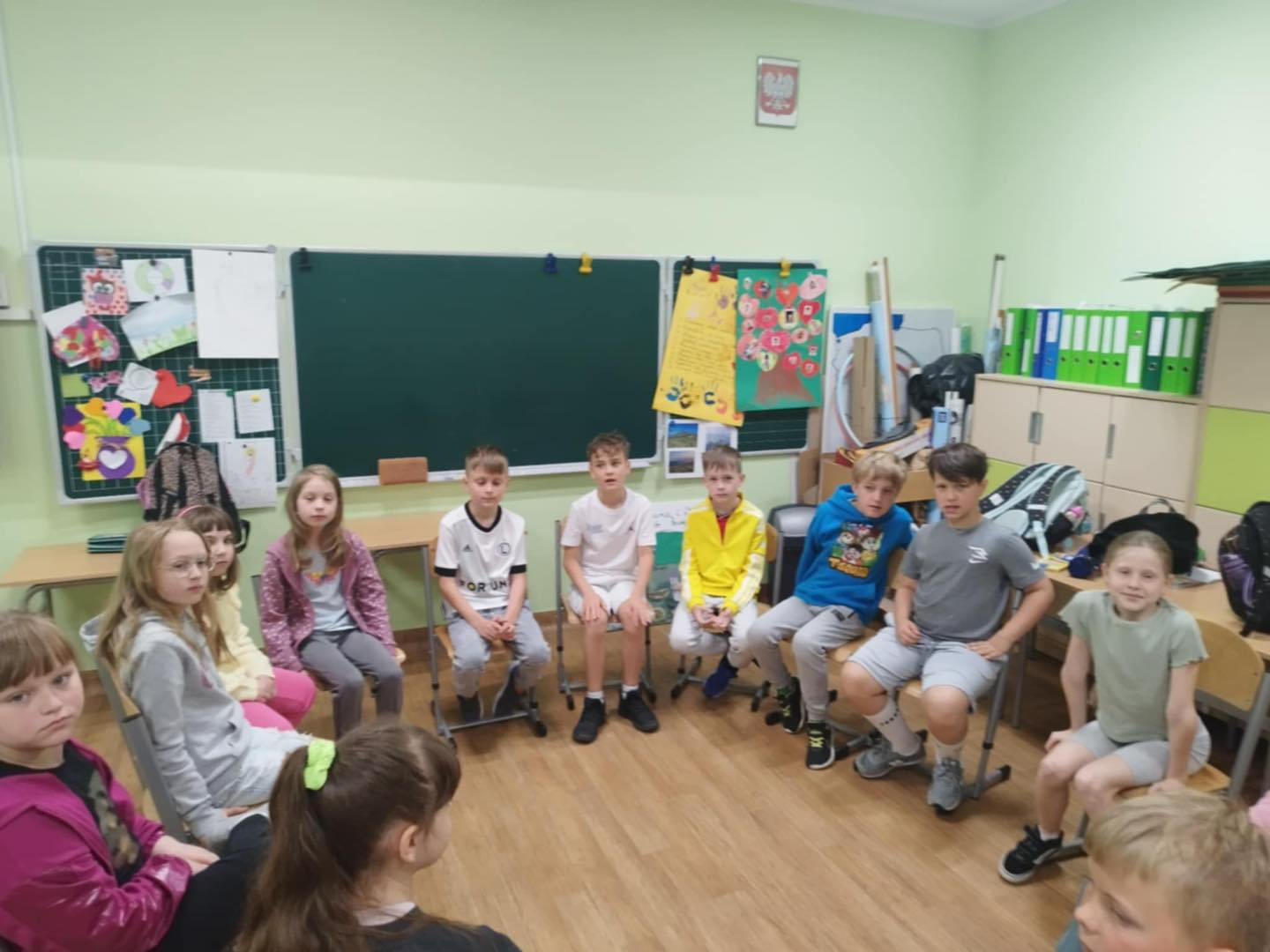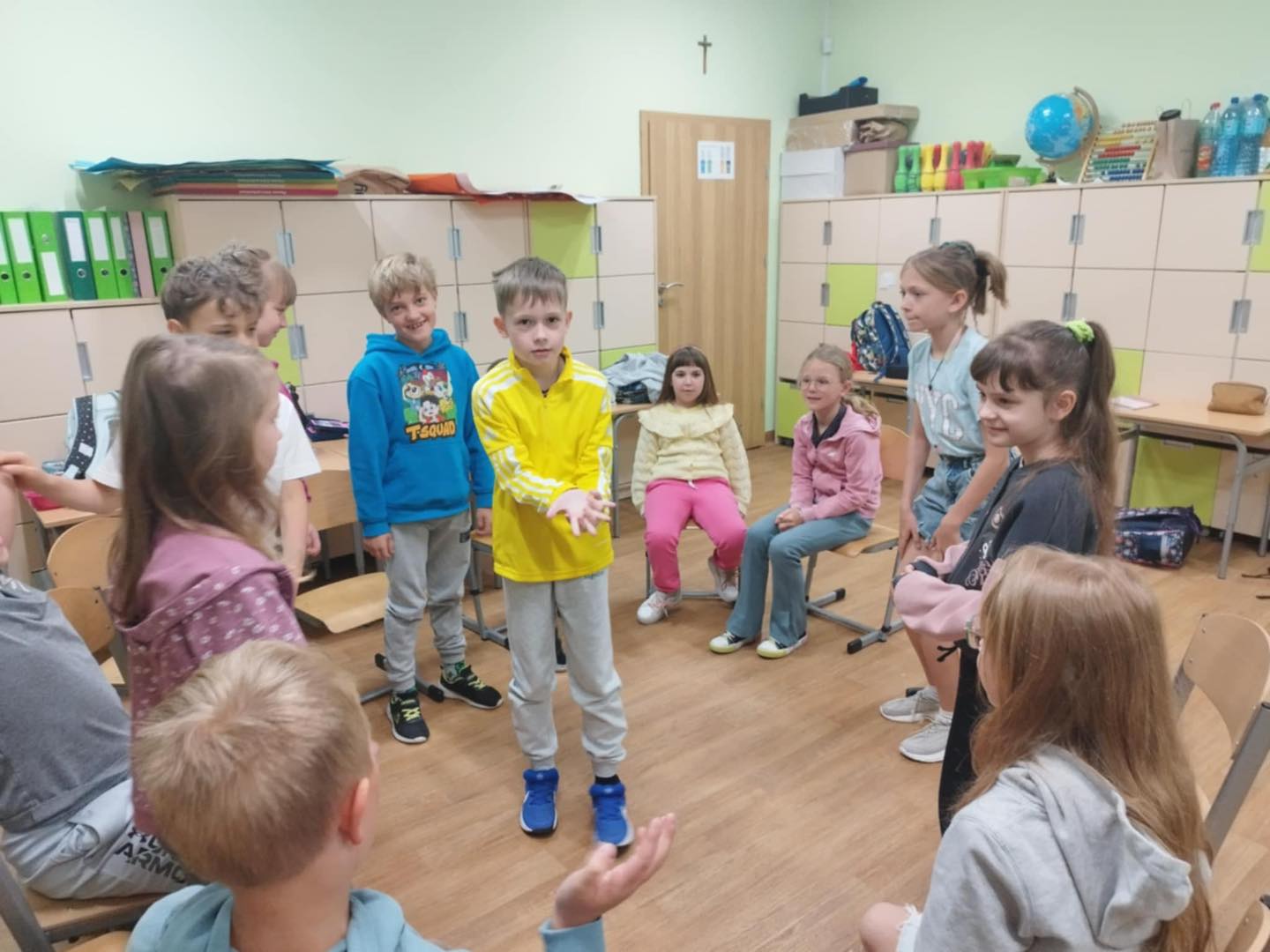 21 maja w klasie 2 odbyły się zajęcia z panią pedagog - Wioletą Karabin na temat "Jak prawidłowo wspierać uczniów w nawiązywaniu relacji rówieśniczych”. Jedną z podstawowych potrzeb człowieka, niezależnie od jego wieku, jest potrzeba przynależności do grupy społecznej, rozumiana również jako poczucie akceptacji przez daną grupę. Relacje rówieśnicze kształtują się we wspólnej zabawie, spontanicznie podejmowanych działaniach, czy zaplanowanych pracach grupowych. Klasa podczas zajęć brała udział w grze "Integracyjne krzesła", "Tratwy" oraz "Koło zadowolenia". Każde z dzieci miało możliwość na większą integrację, a co najważniejsze na wspólną pracę zespołową.