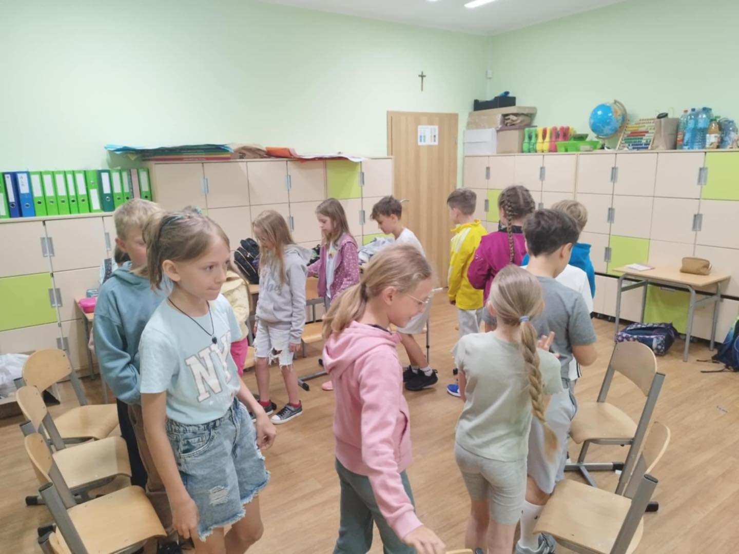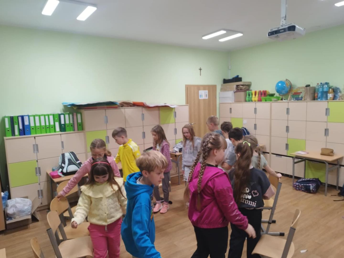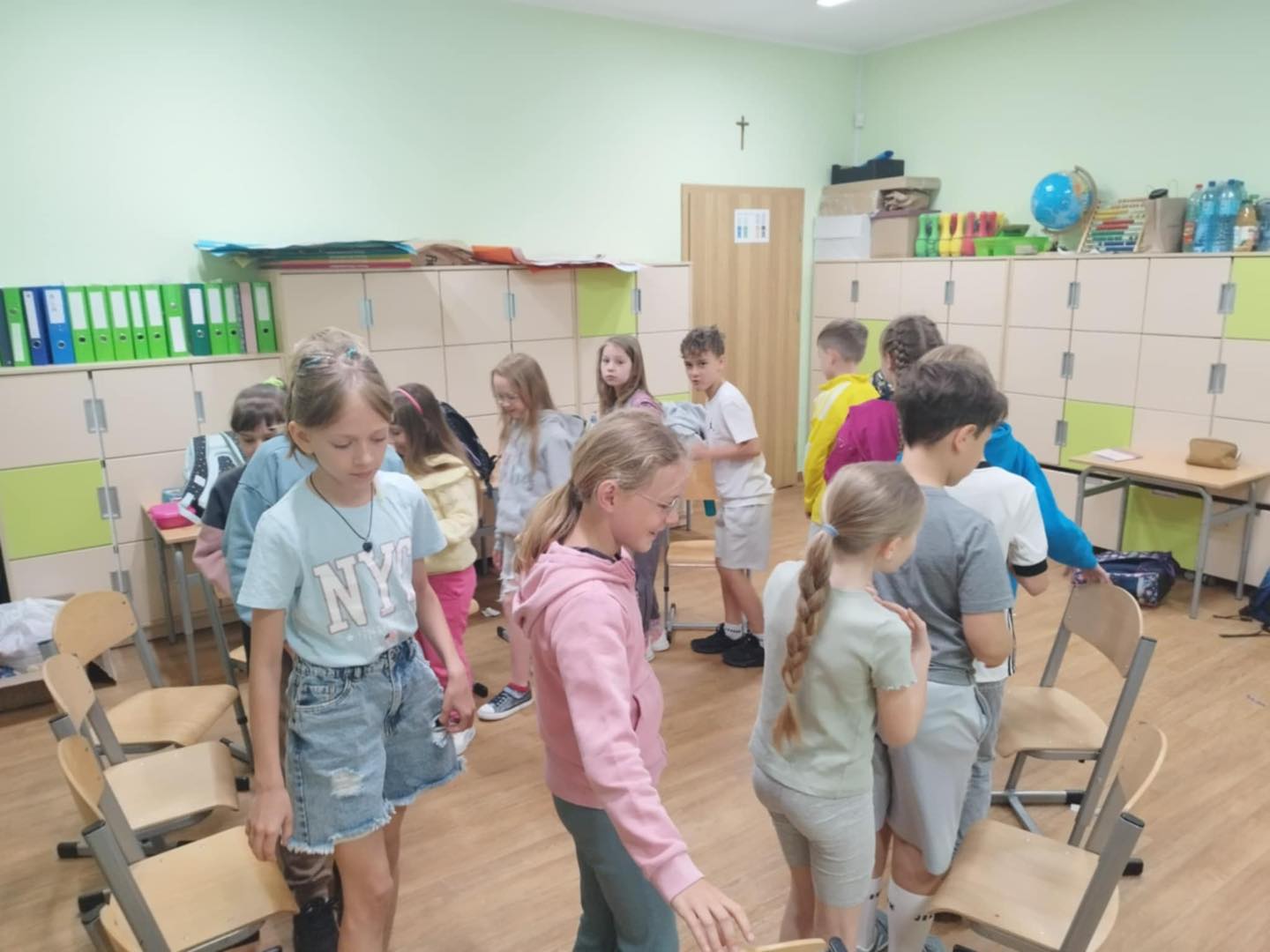 21 maja w klasie 2 odbyły się zajęcia z panią pedagog - Wioletą Karabin na temat "Jak prawidłowo wspierać uczniów w nawiązywaniu relacji rówieśniczych”. Jedną z podstawowych potrzeb człowieka, niezależnie od jego wieku, jest potrzeba przynależności do grupy społecznej, rozumiana również jako poczucie akceptacji przez daną grupę. Relacje rówieśnicze kształtują się we wspólnej zabawie, spontanicznie podejmowanych działaniach, czy zaplanowanych pracach grupowych. Klasa podczas zajęć brała udział w grze "Integracyjne krzesła", "Tratwy" oraz "Koło zadowolenia". Każde z dzieci miało możliwość na większą integrację, a co najważniejsze na wspólną pracę zespołową.