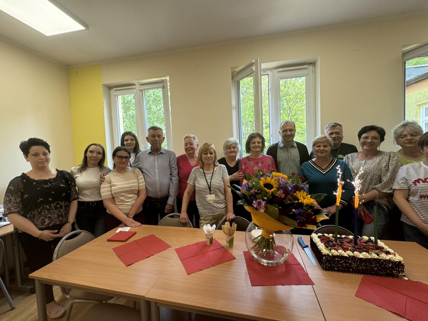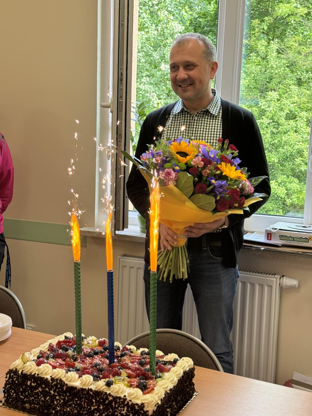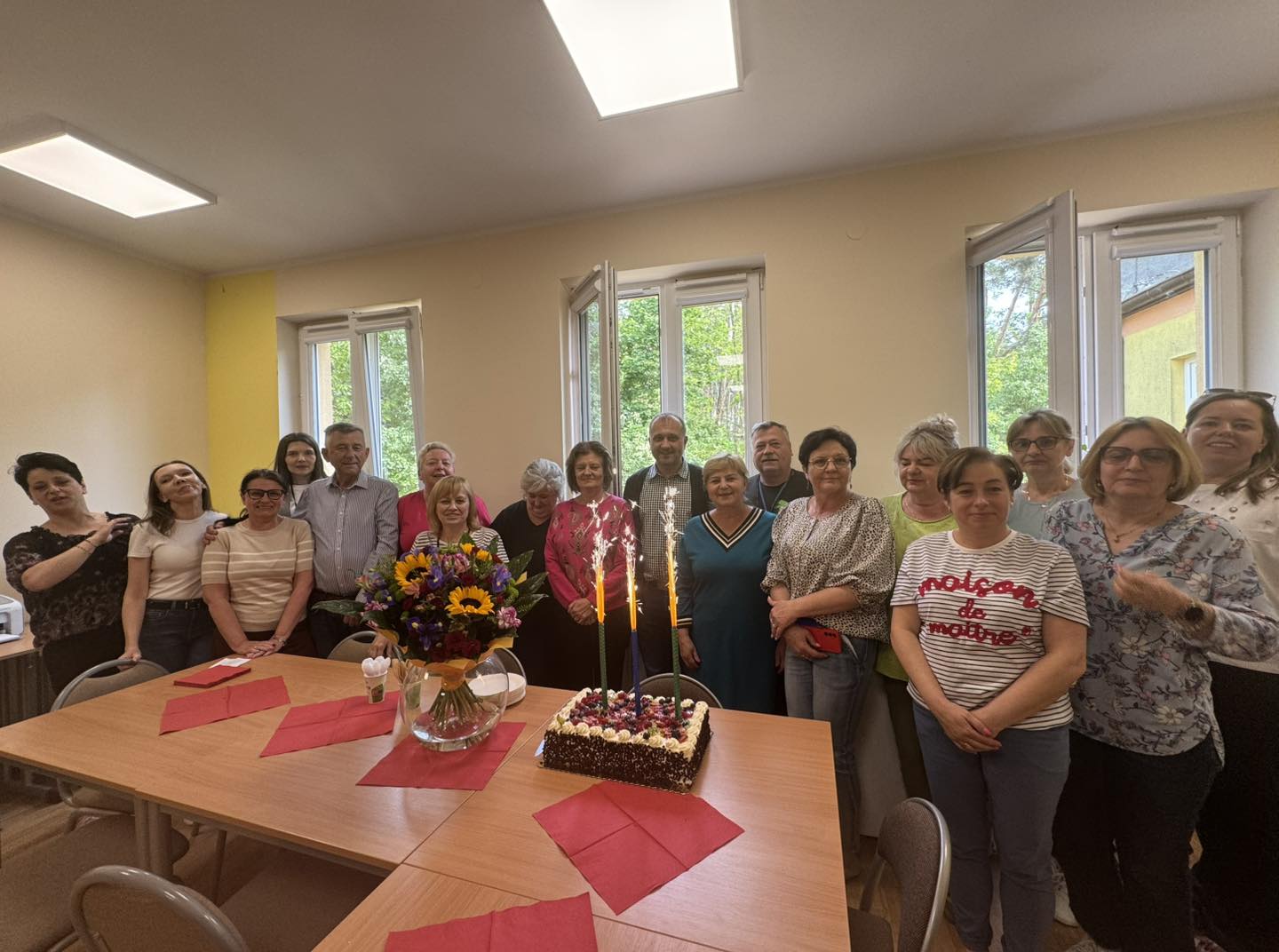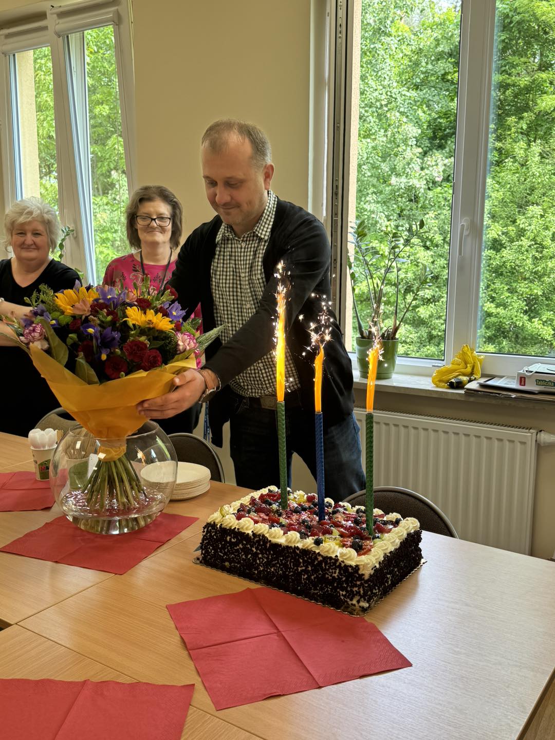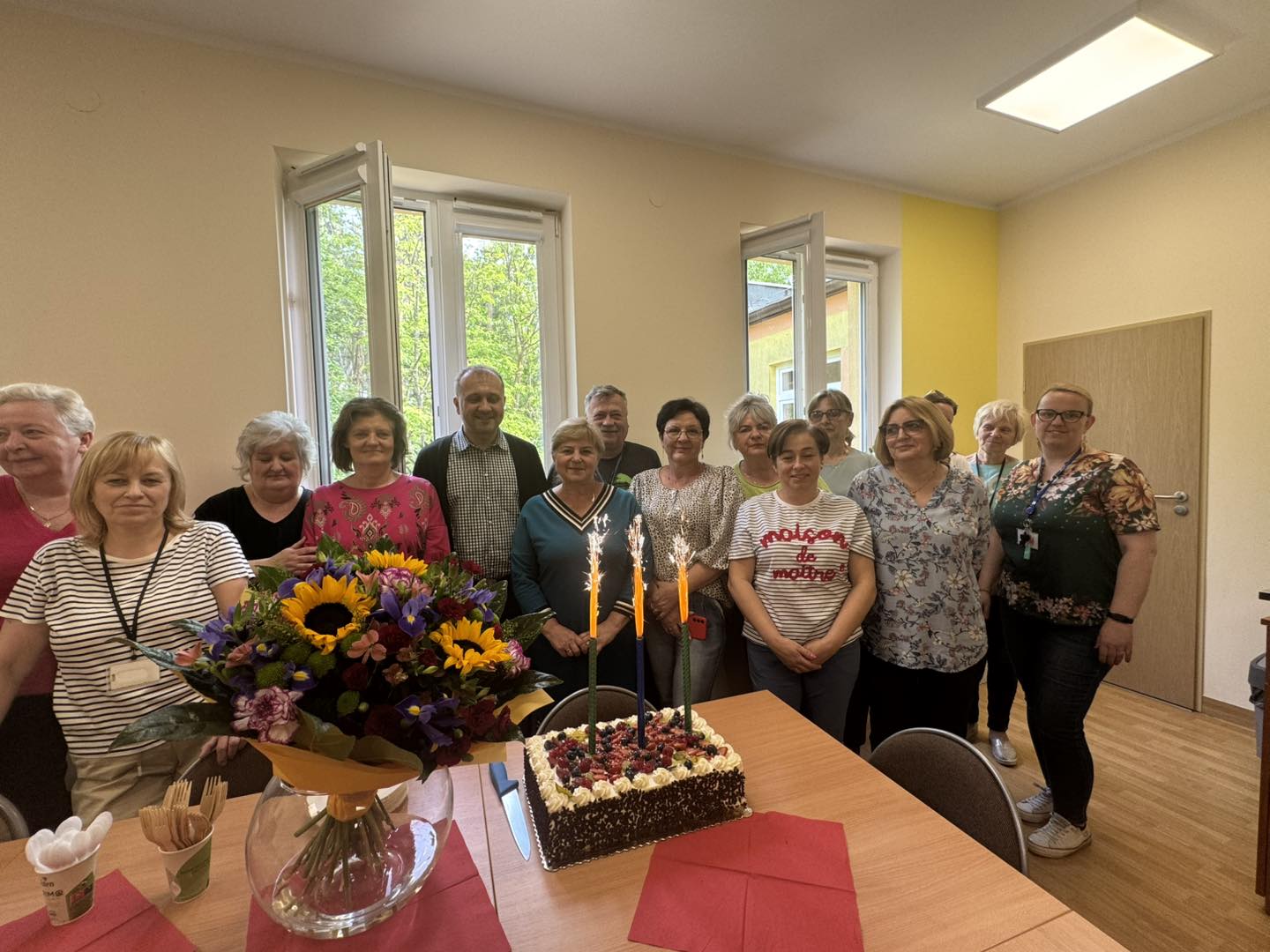 powitali piosenką, kwiatami i słodkim poczęstunkiem