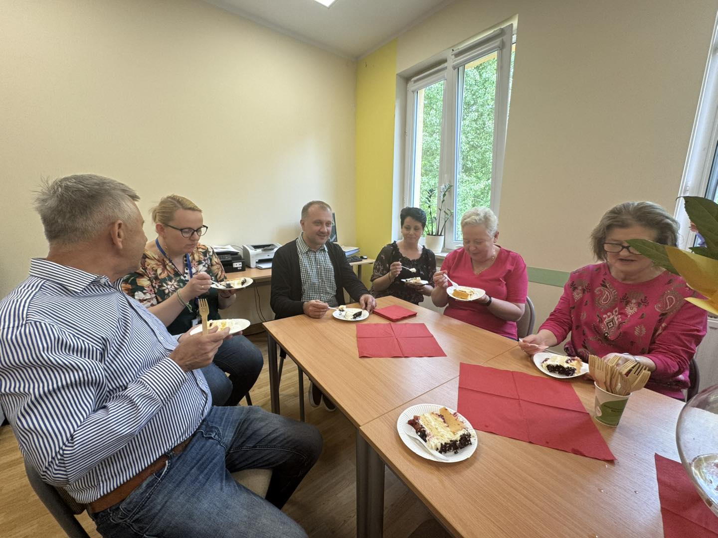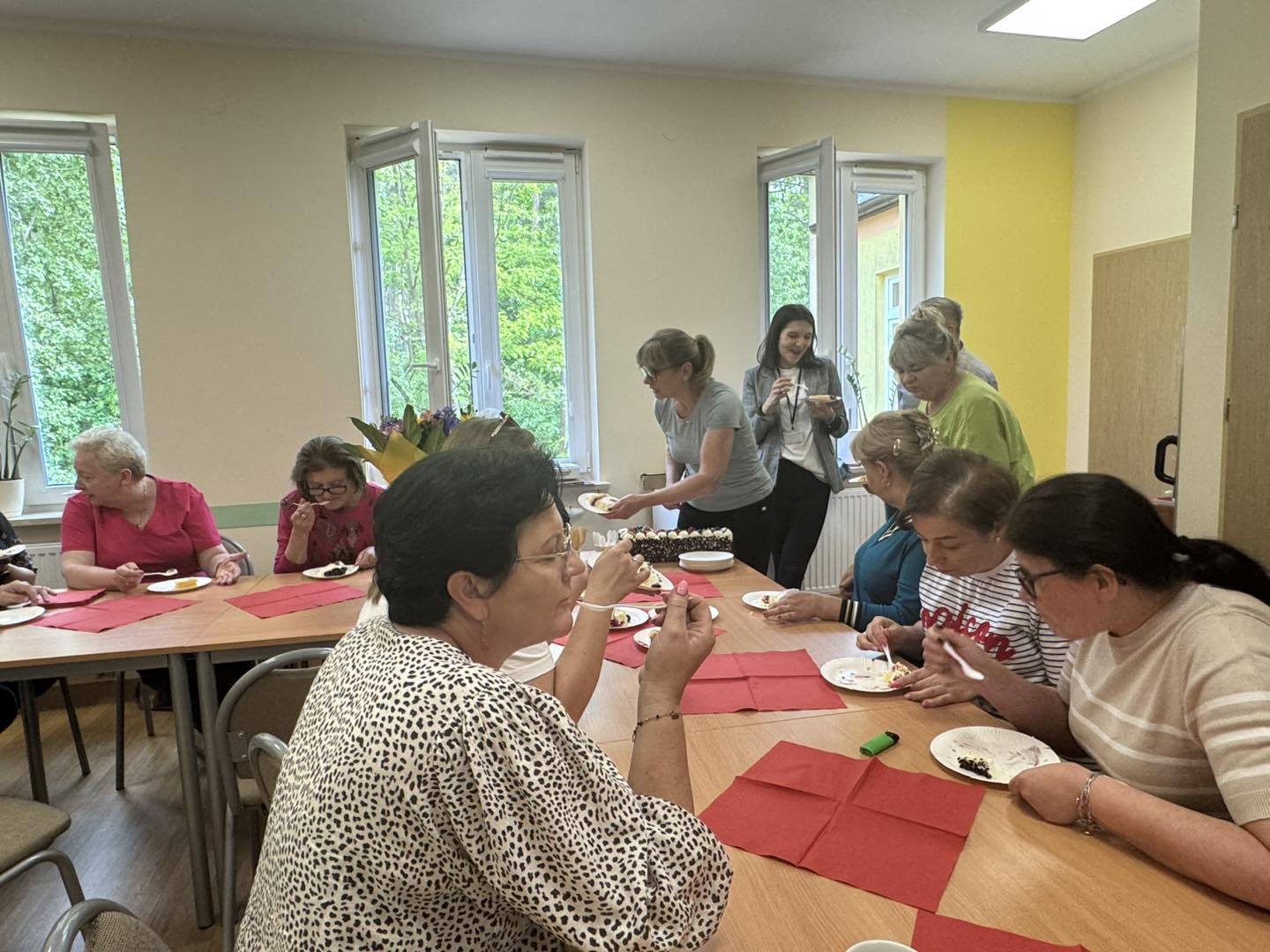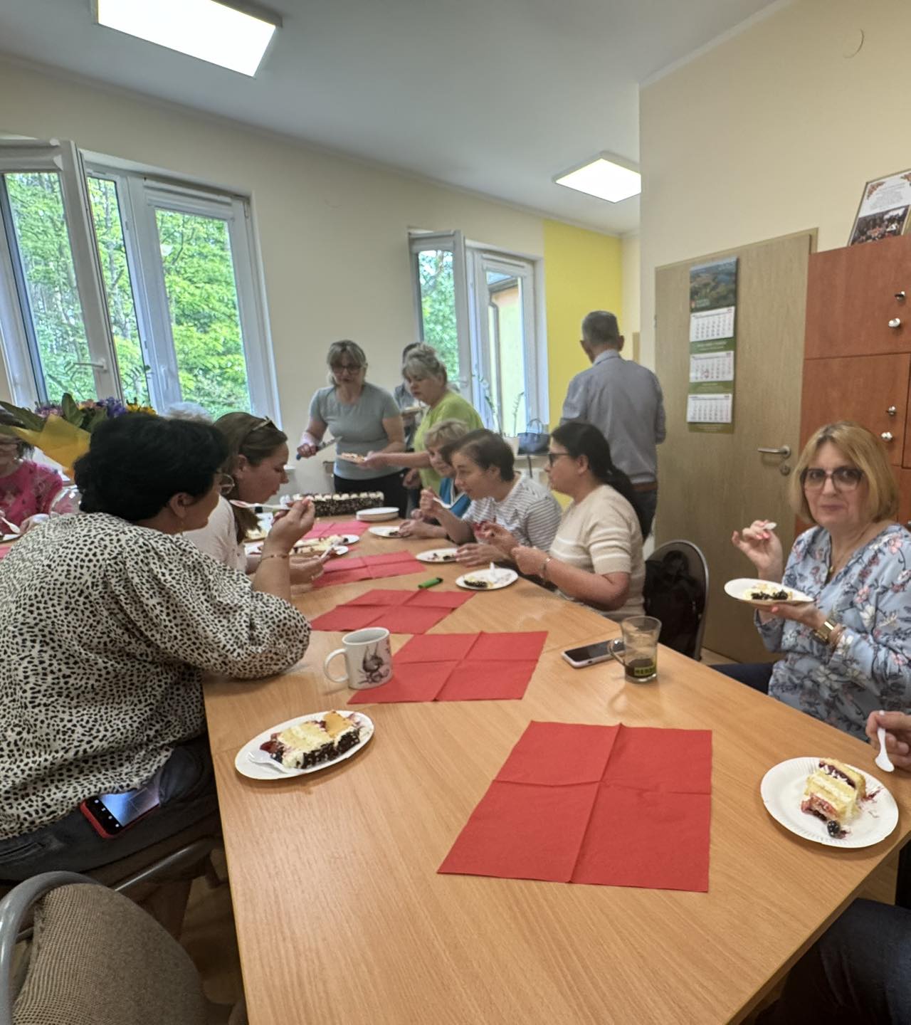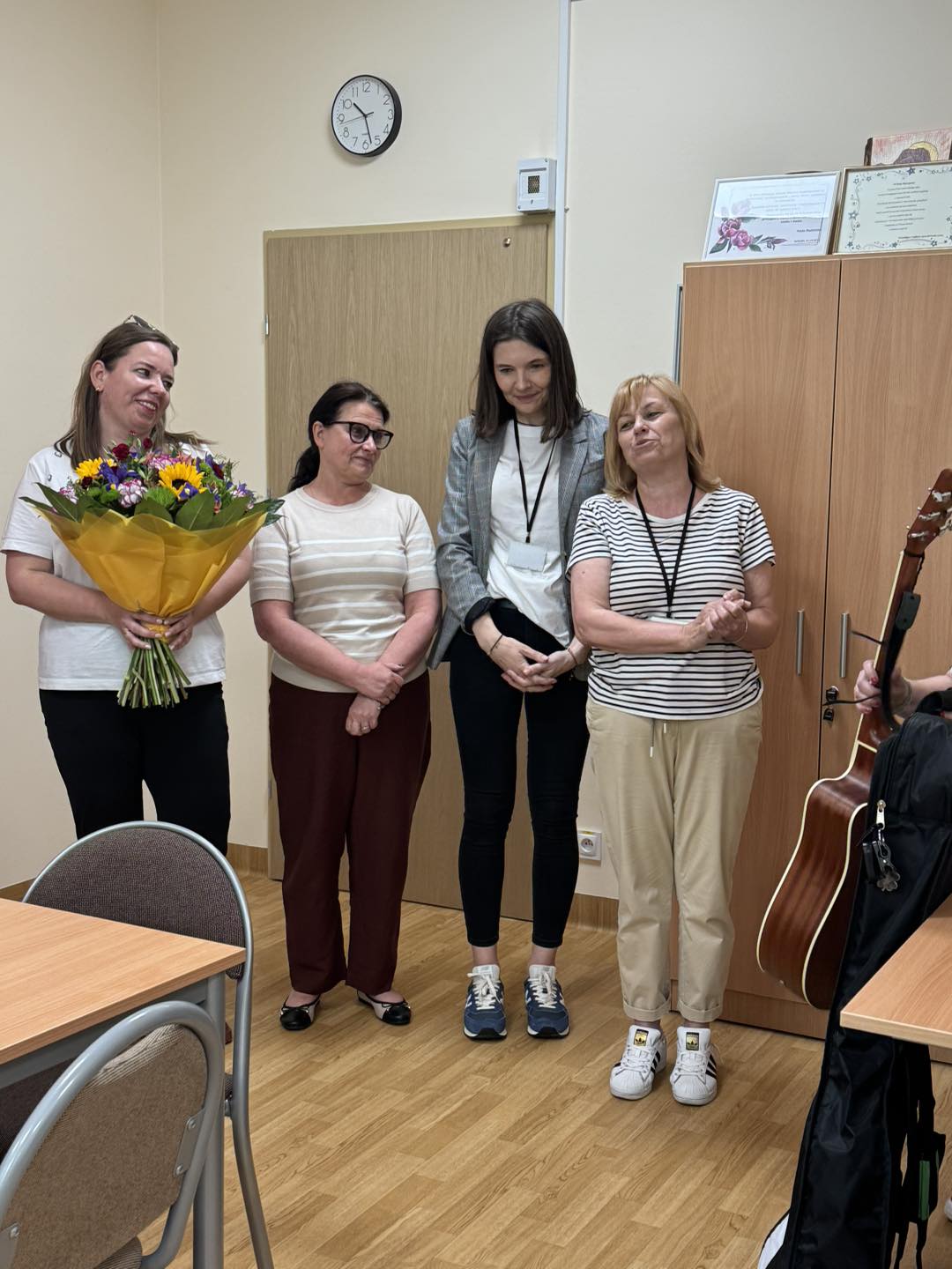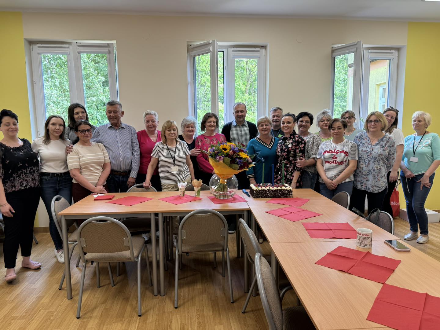powitali piosenką, kwiatami i słodkim poczęstunkiem
