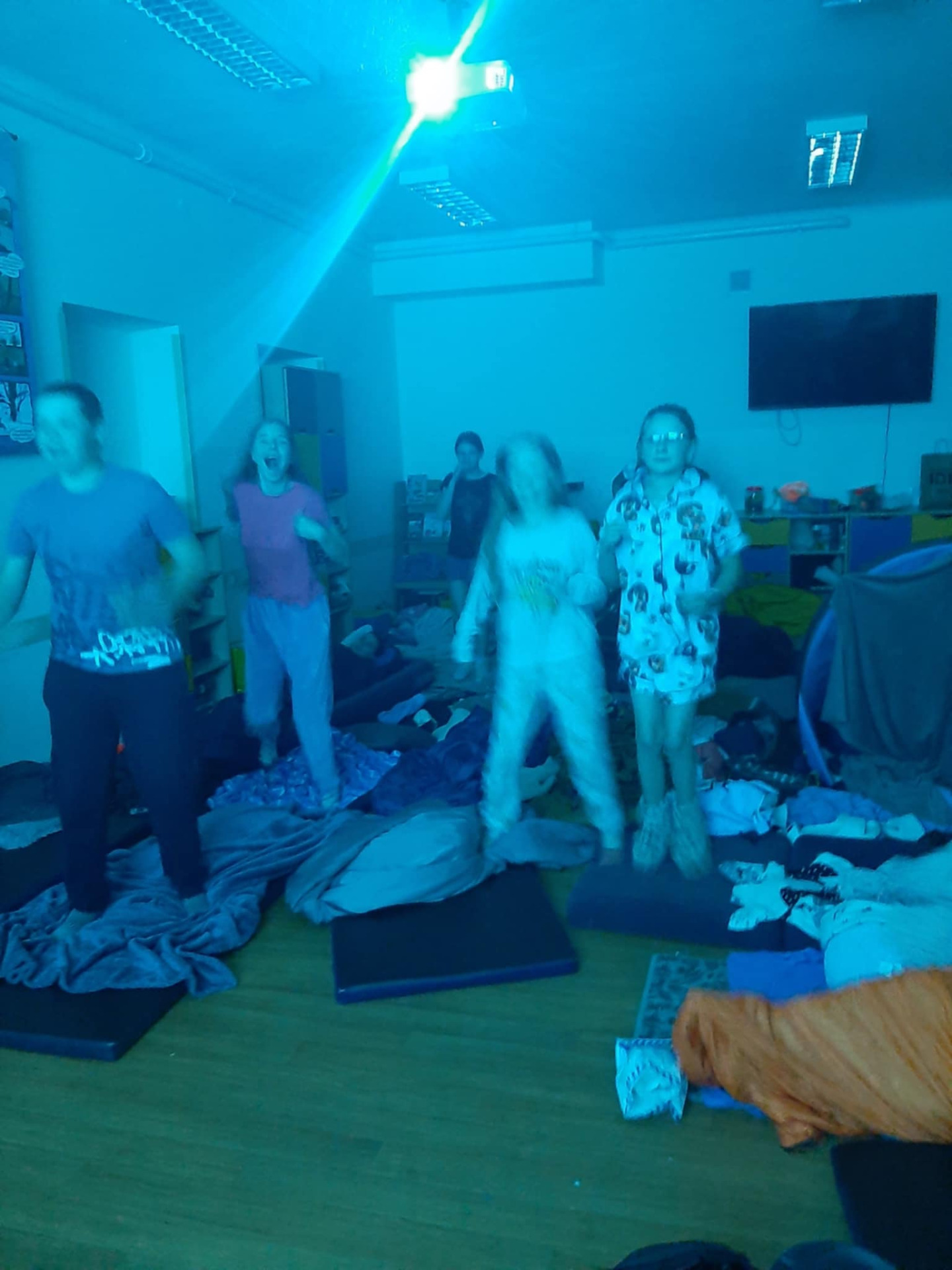 Z piątku na sobotę w naszej szkole odbyła się "Noc filmowa" dla klasy V i VI. Uczestnicy tego wydarzenia obejrzeli trzy filmy: "Harry Potter i Kamień Filozoficzny", "Jumanji" i "Kleks. Wynalazak Filipa Golarza". W przerwach między seansami dzieci spędziły czas w sali gimnastycznej grając w ulubione gry. W nocy rozegrali kilka rund gry w chowanego po szkole. Niezwykle miłym akcentem było karaoke, gdzie wszyscy śpiewali ostatnie muzyczne przeboje. "Noc filmowa" była okazją do zintegrowania się uczniów i poznania się od zupełnienie nowej strony. Nad ranem wszyscy uczestnicy pełni emocji wrócili do swoich domów.