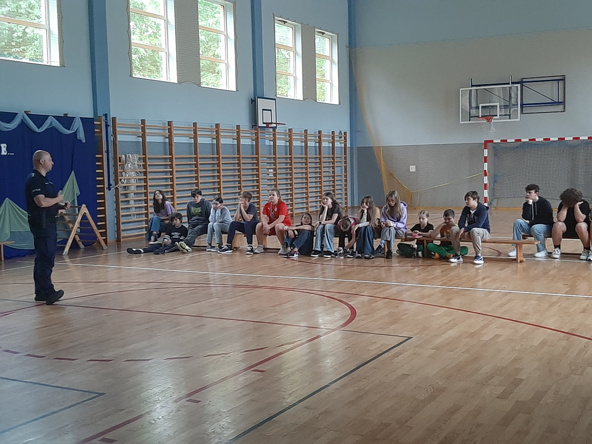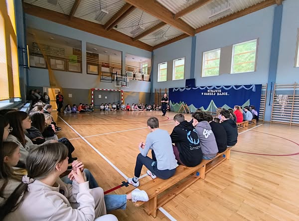 W dniu 29 maja odbyła się bardzo ciekawa pogadanka na temat cyberprzemocy oraz bezpieczeństwa podczas wakacji. Asp. szt. Kamil Maciejko z Komisariatu Policji w Czosnowie w trakcie spotkania z uczniami omówił zagadnienia związane z bezpiecznym korzystaniem z sieci Internet.