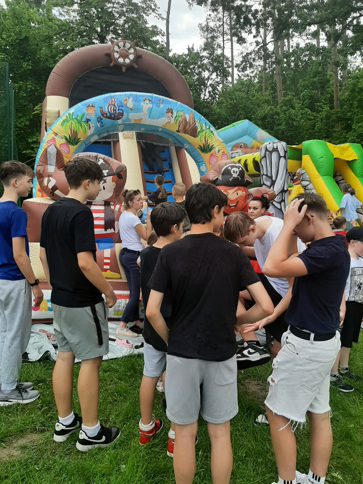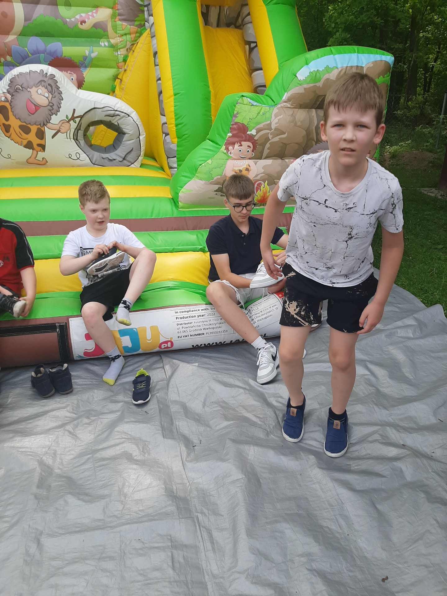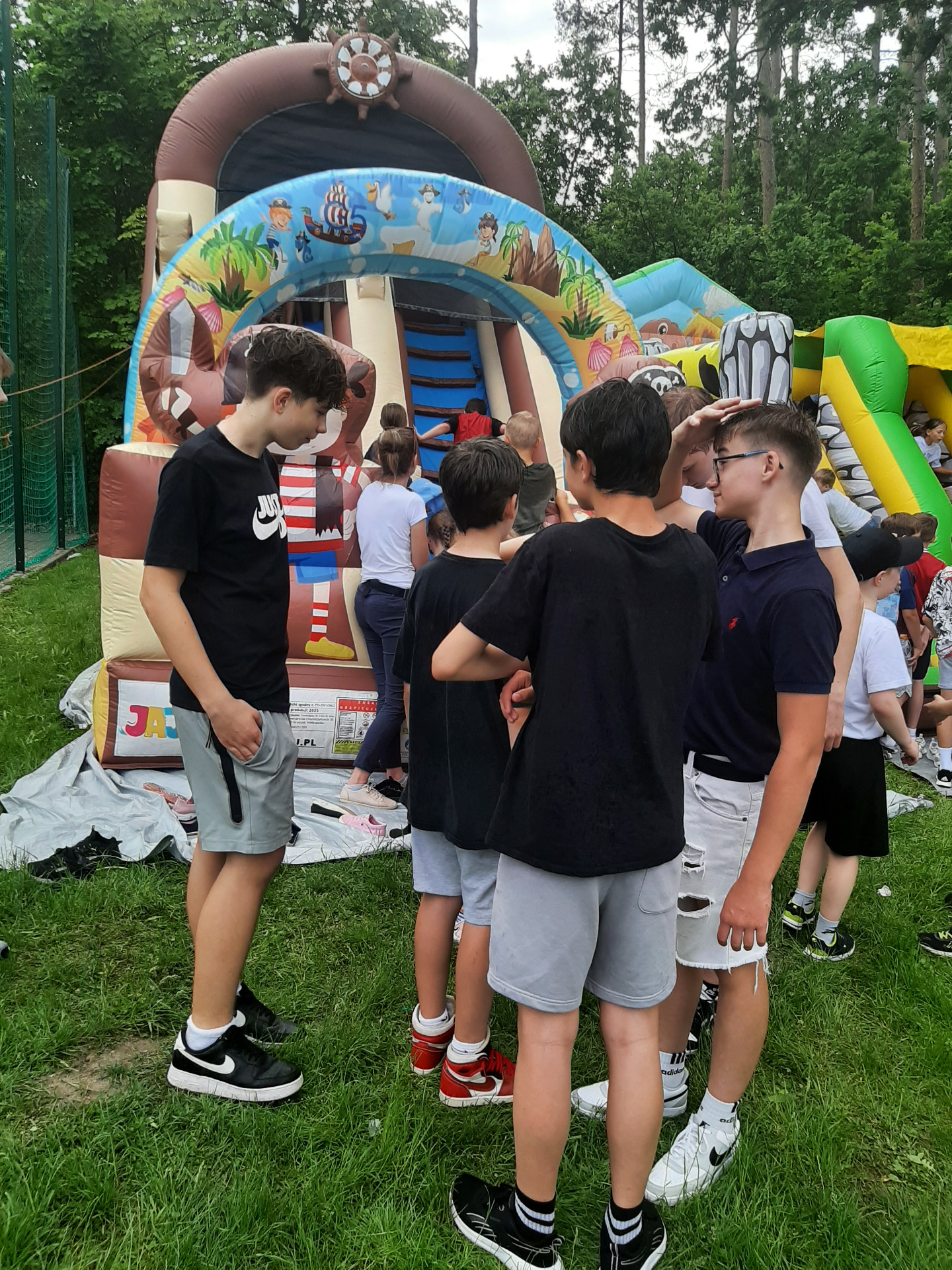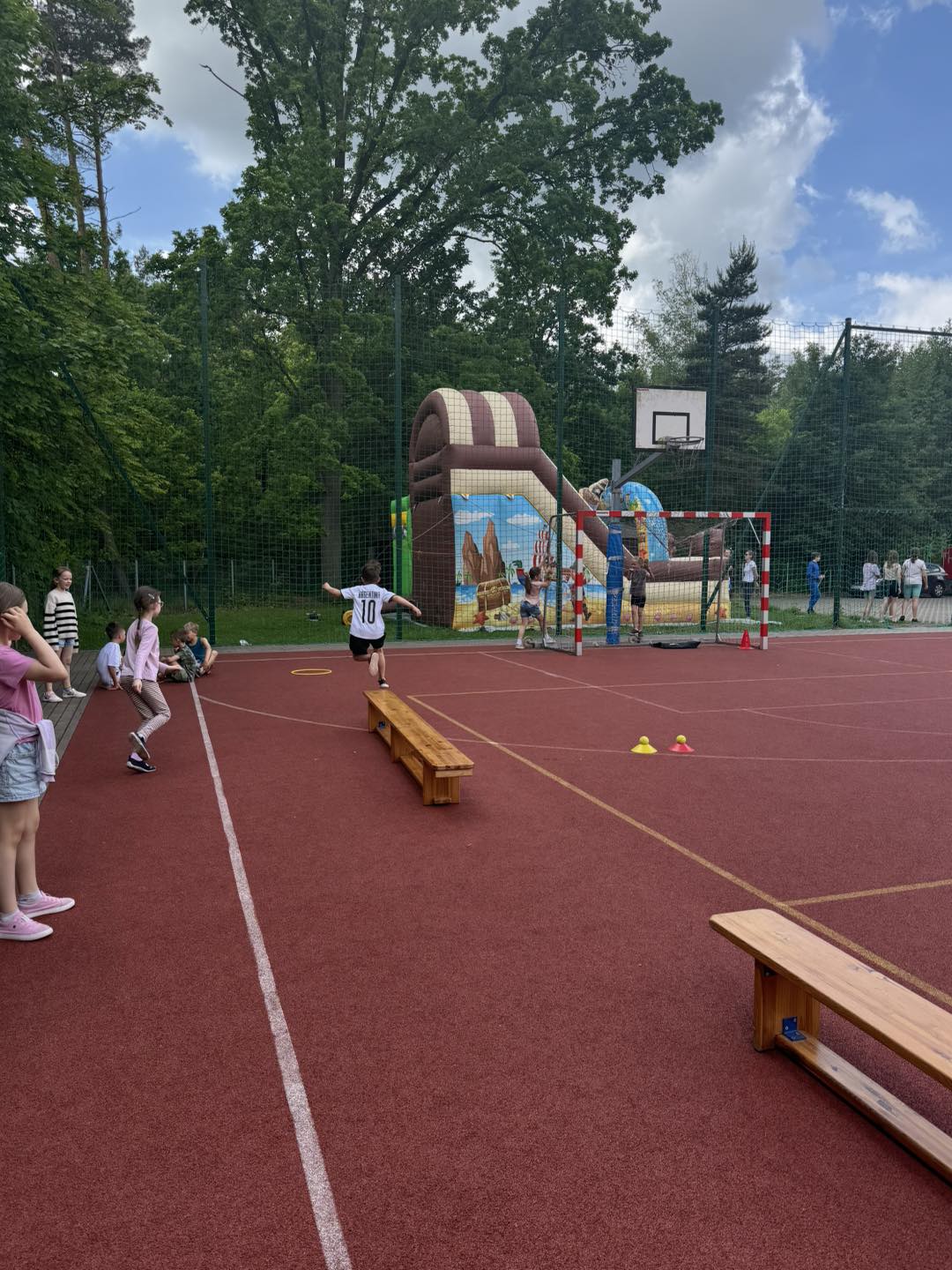 Nowy tydzie rozpoczęliśmy zupełnie inaczej. Wszyscy wzięliśmy udział w szkolnych obchodach DNIA DZIECKA. Obejrzeliśmy przygotowane przedstawienie przez naszych nauczycieli, wzięliśmy udział w zawodach sportowych, spotkaliśmy się ze Stażą Pożarną, szaleliśmy na dmuchańcach i zajadaliśmy się słodkościami.