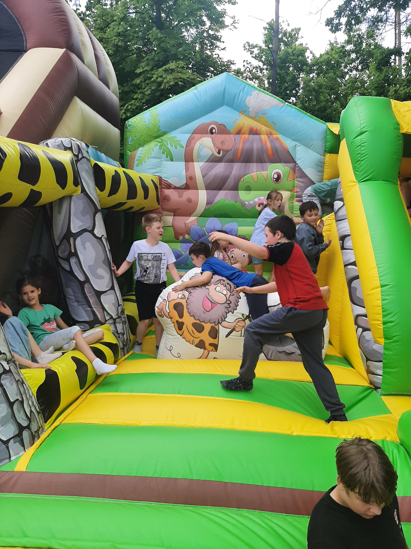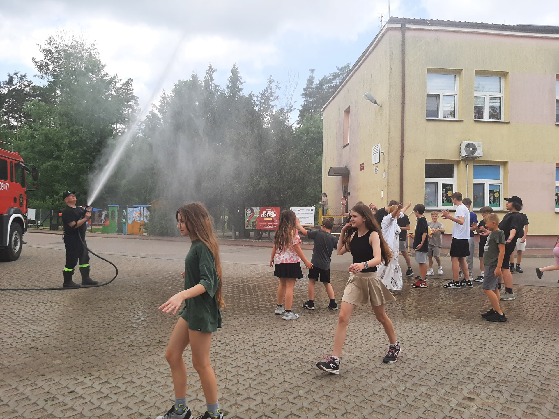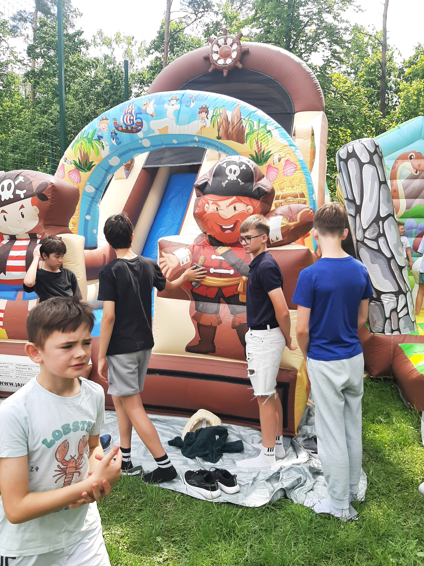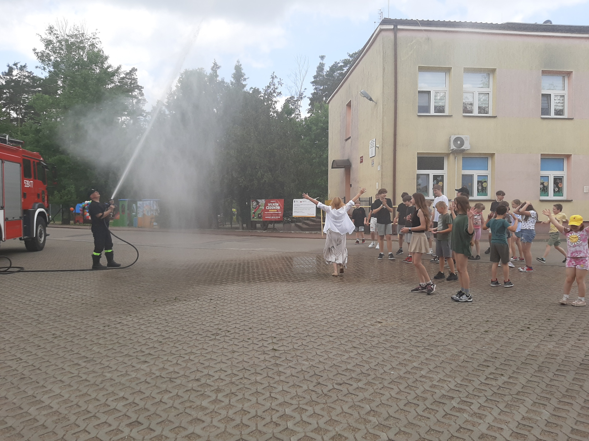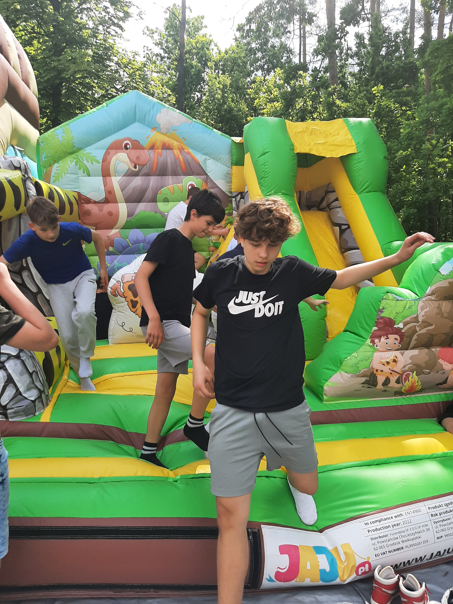 Nowy tydzie rozpoczęliśmy zupełnie inaczej. Wszyscy wzięliśmy udział w szkolnych obchodach DNIA DZIECKA. Obejrzeliśmy przygotowane przedstawienie przez naszych nauczycieli, wzięliśmy udział w zawodach sportowych, spotkaliśmy się ze Stażą Pożarną, szaleliśmy na dmuchańcach i zajadaliśmy się słodkościami.