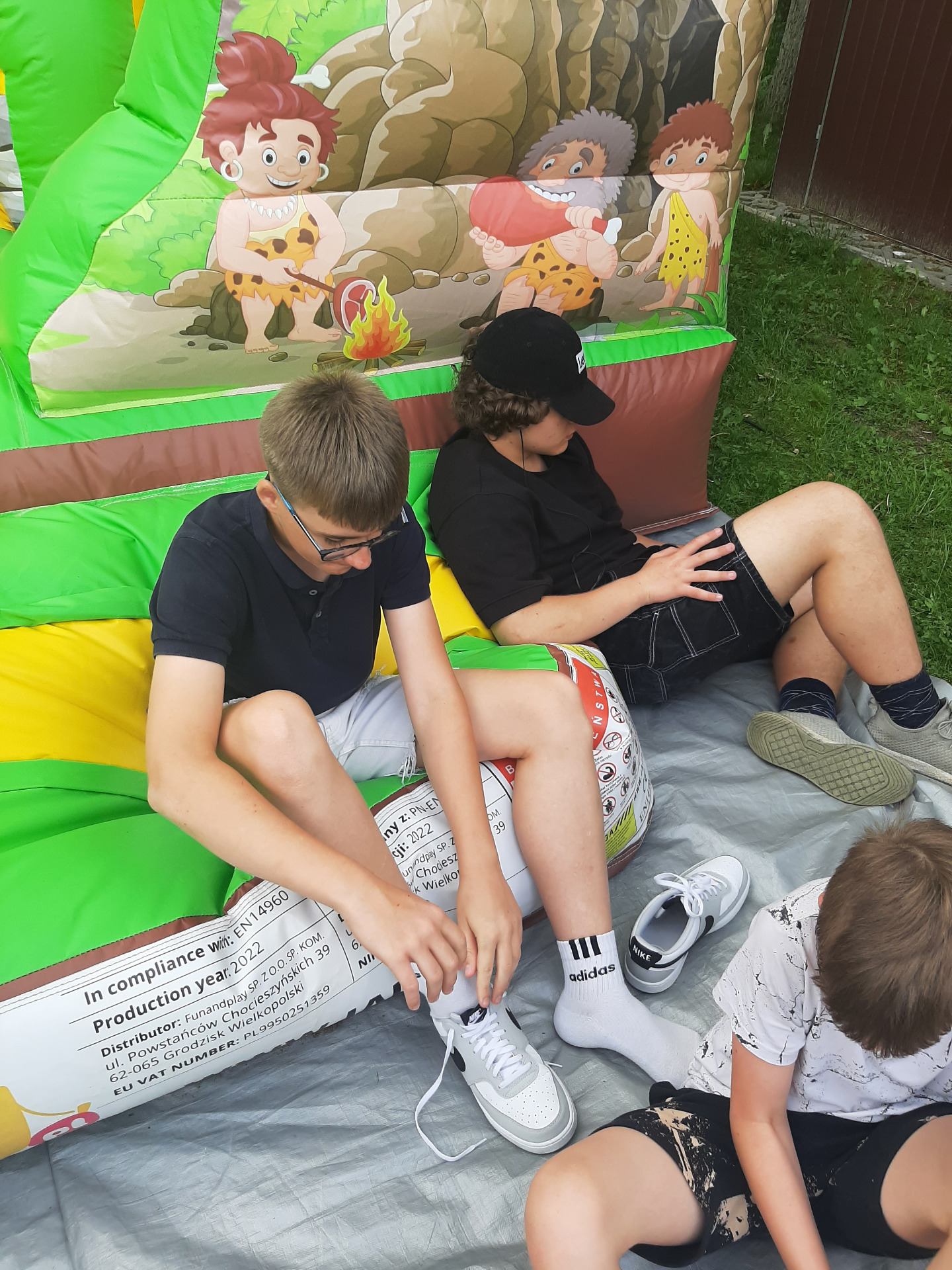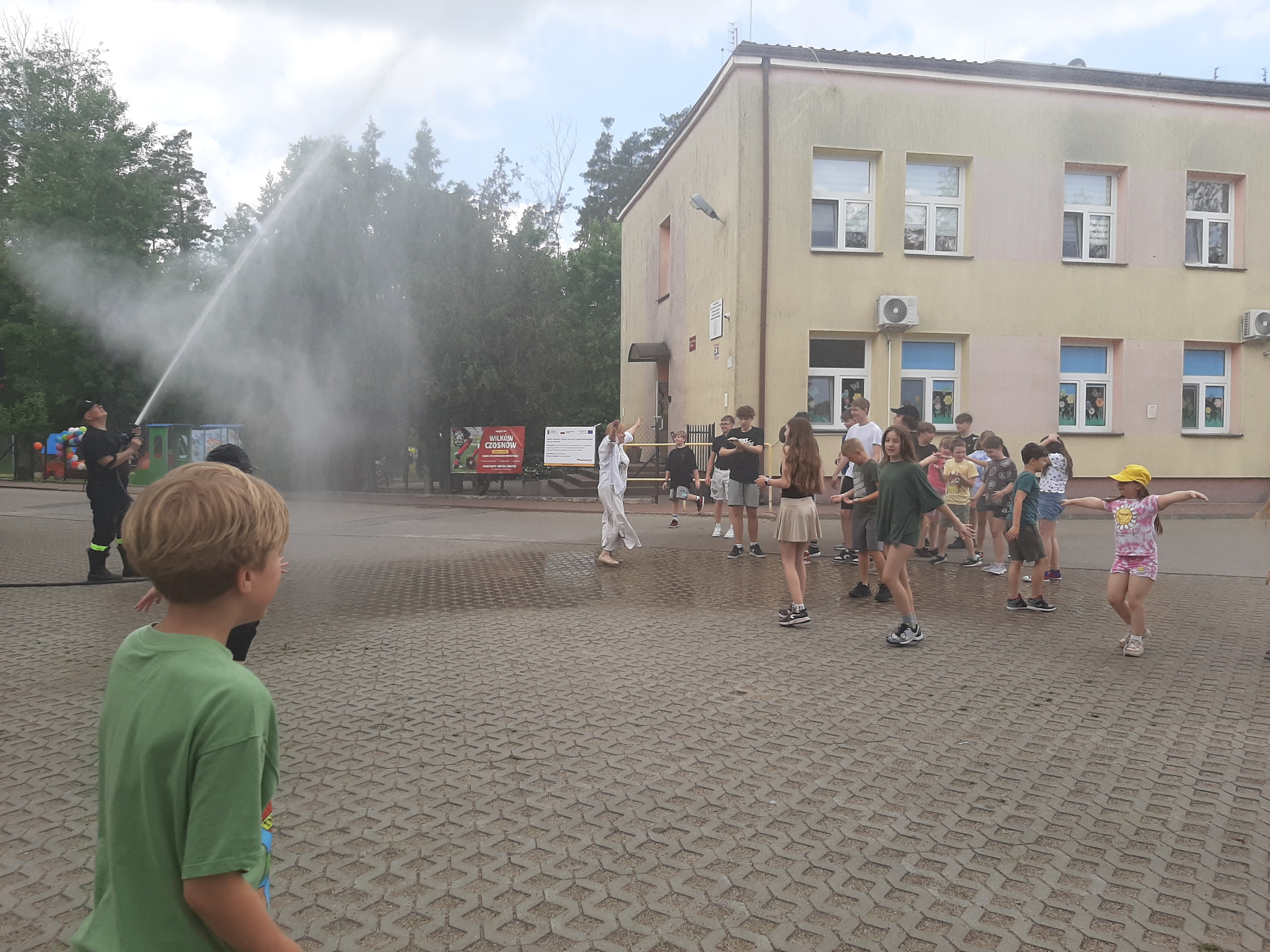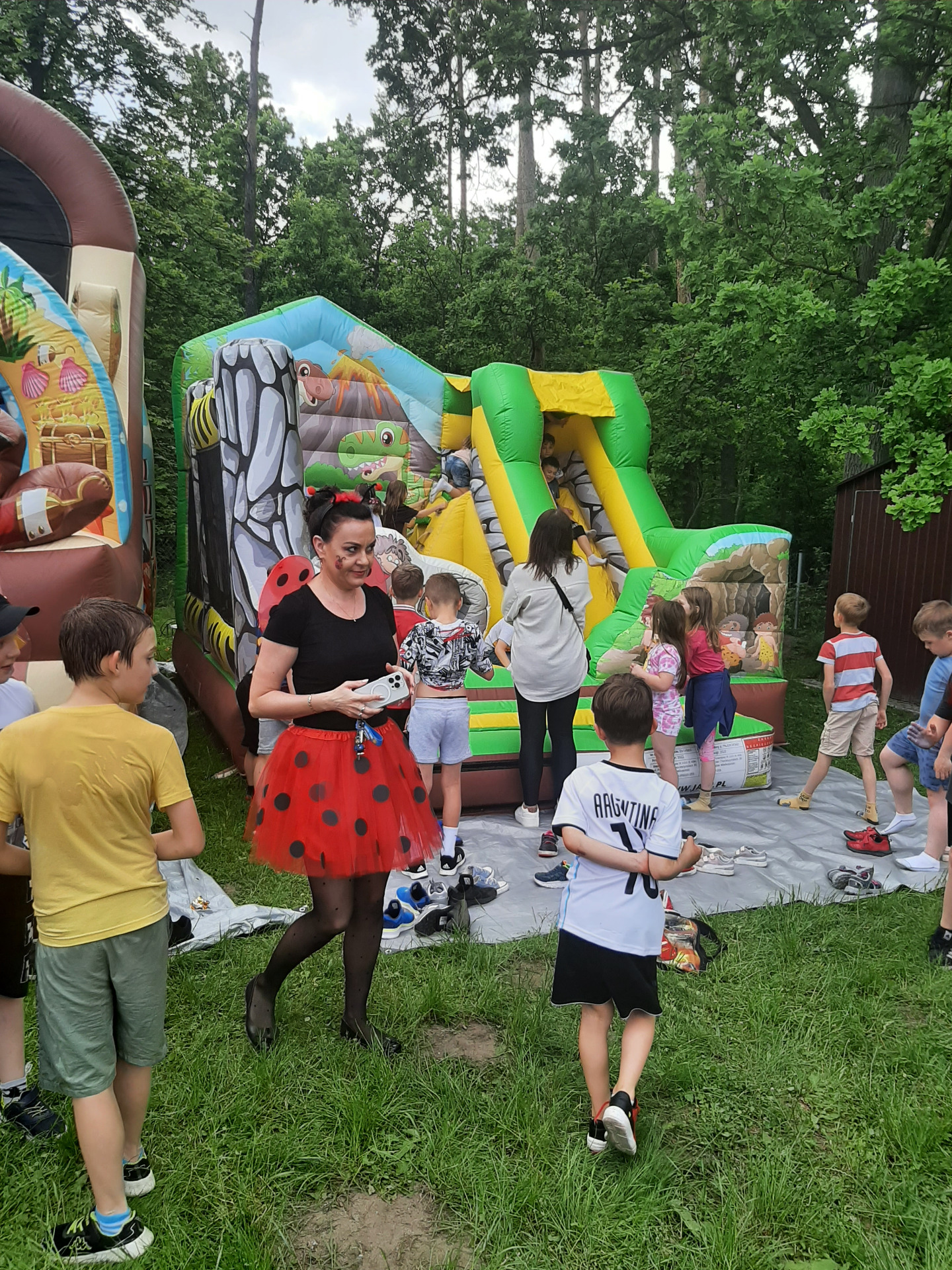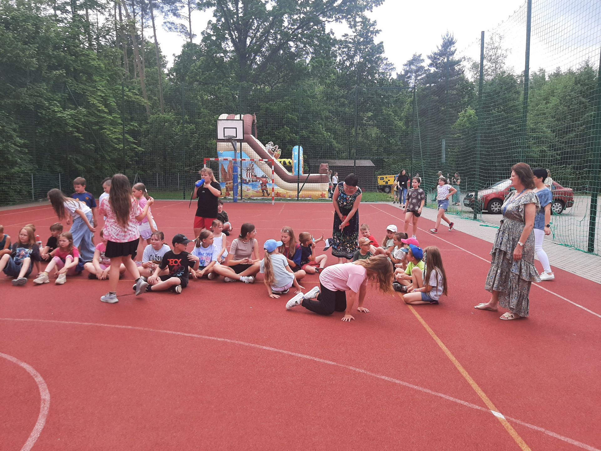 Nowy tydzie rozpoczęliśmy zupełnie inaczej. Wszyscy wzięliśmy udział w szkolnych obchodach DNIA DZIECKA. Obejrzeliśmy przygotowane przedstawienie przez naszych nauczycieli, wzięliśmy udział w zawodach sportowych, spotkaliśmy się ze Stażą Pożarną, szaleliśmy na dmuchańcach i zajadaliśmy się słodkościami.