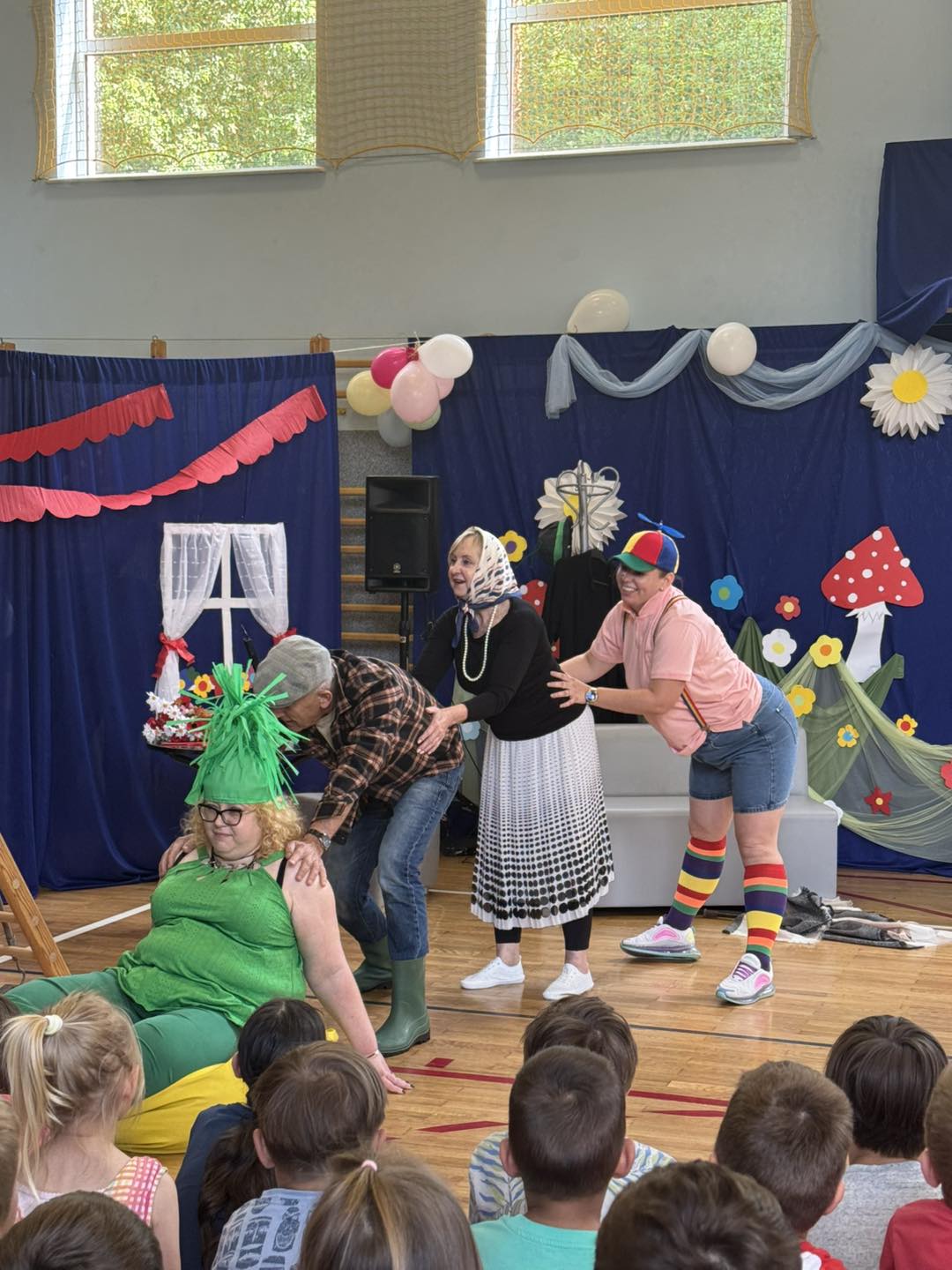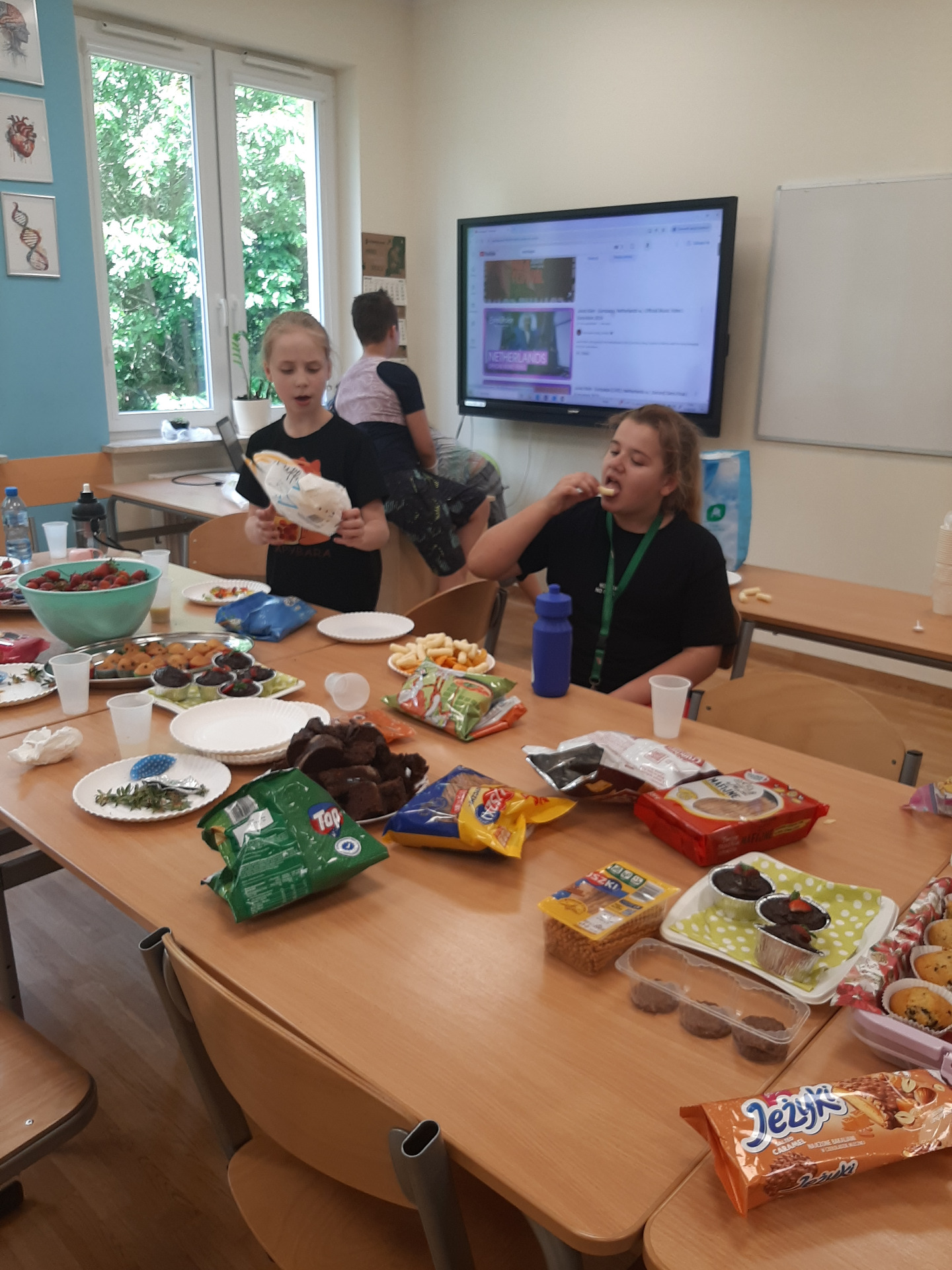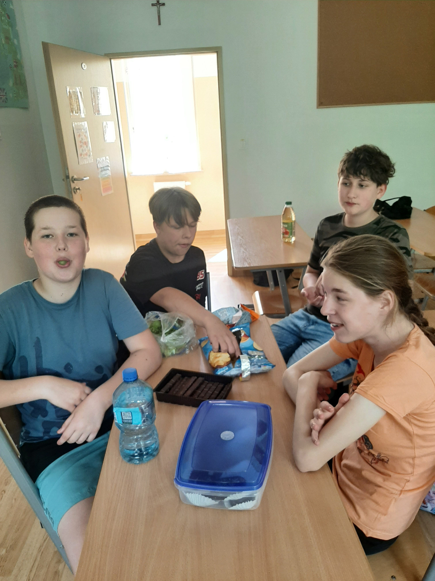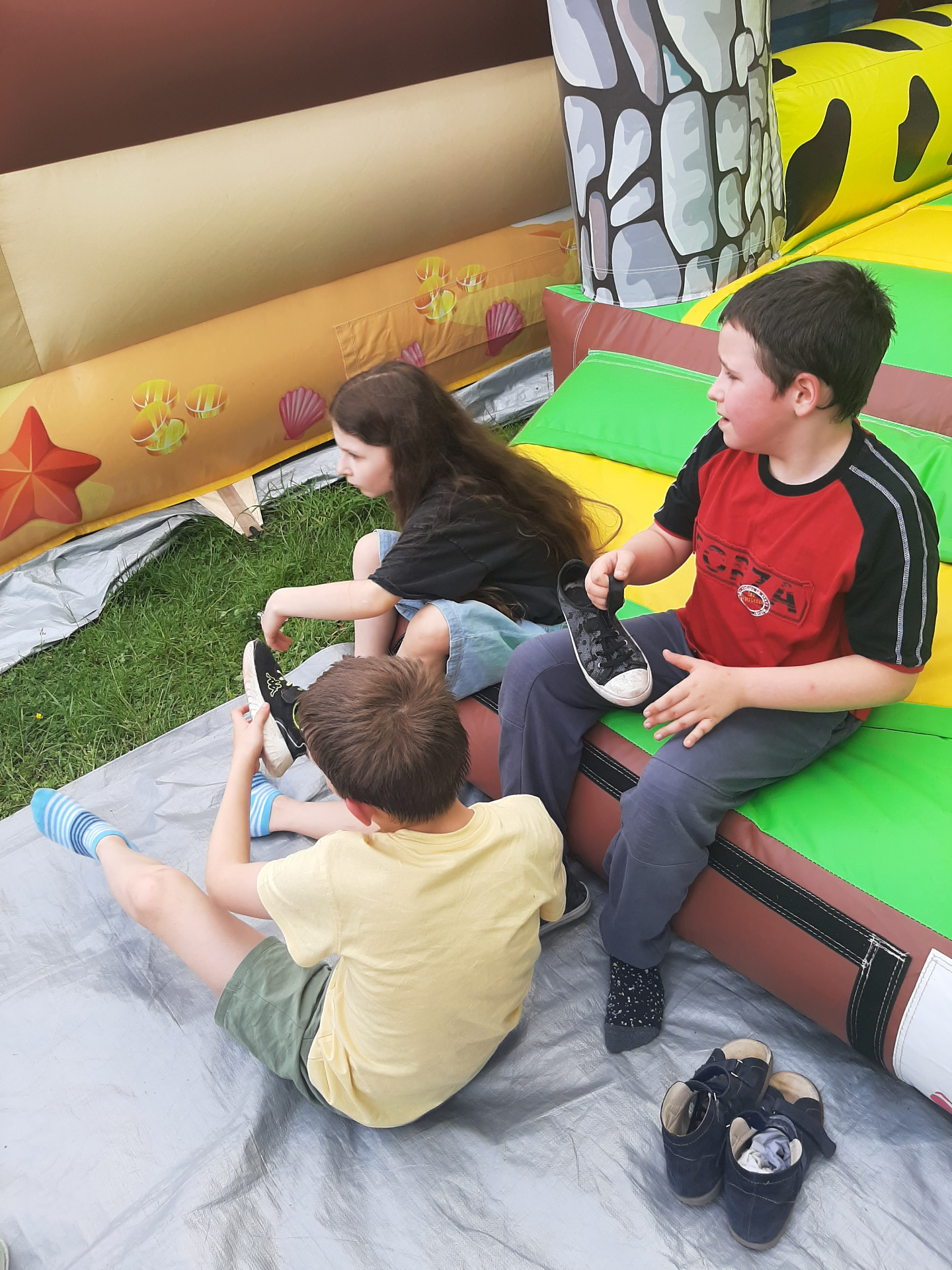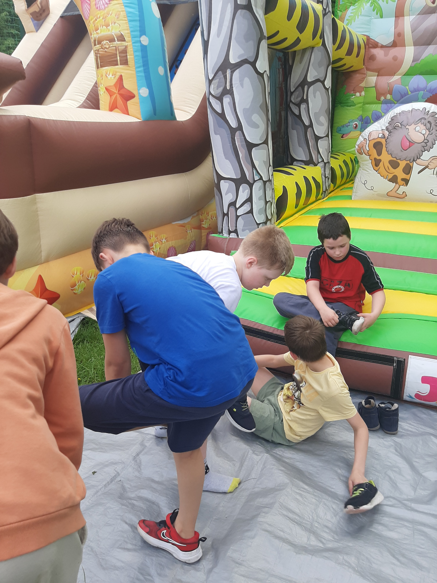 Nowy tydzie rozpoczęliśmy zupełnie inaczej. Wszyscy wzięliśmy udział w szkolnych obchodach DNIA DZIECKA. Obejrzeliśmy przygotowane przedstawienie przez naszych nauczycieli, wzięliśmy udział w zawodach sportowych, spotkaliśmy się ze Stażą Pożarną, szaleliśmy na dmuchańcach i zajadaliśmy się słodkościami.