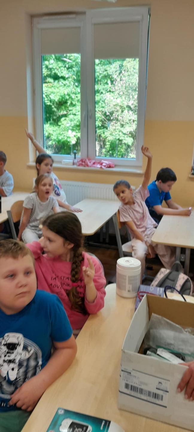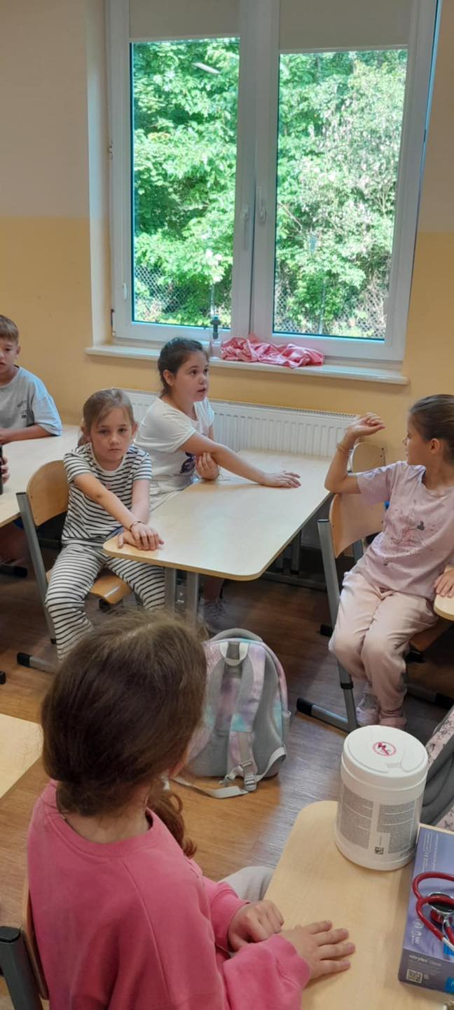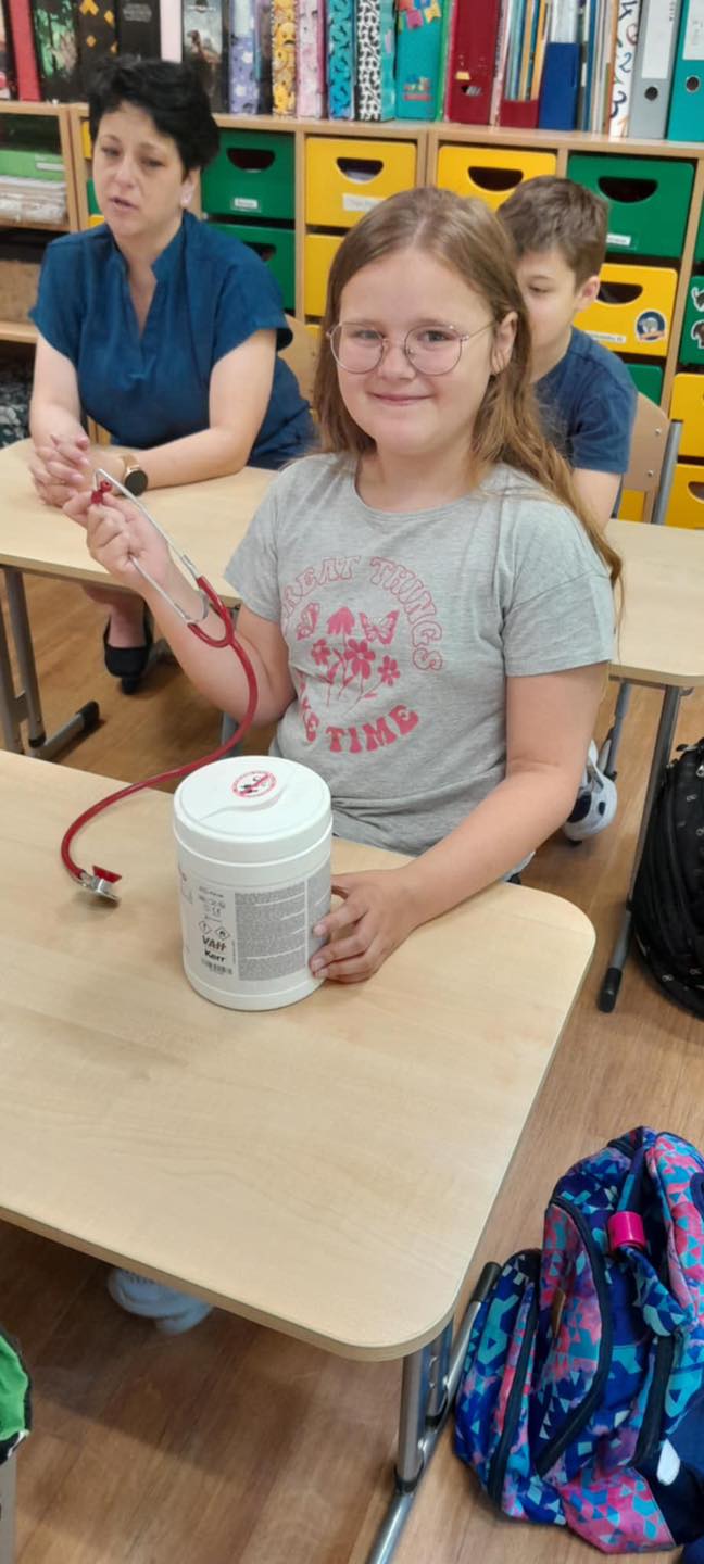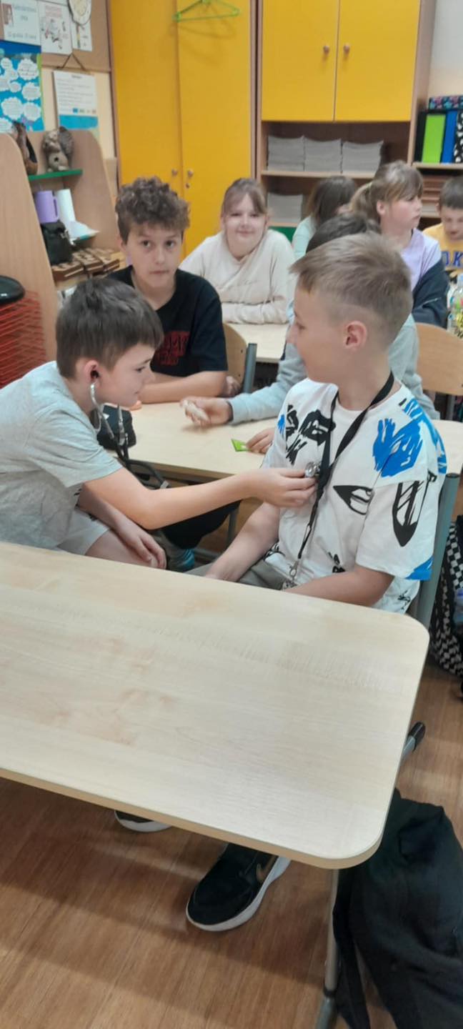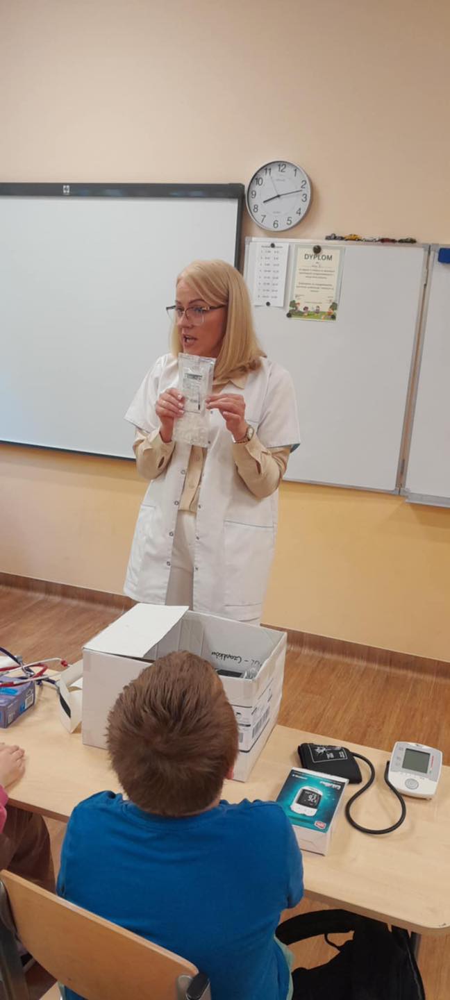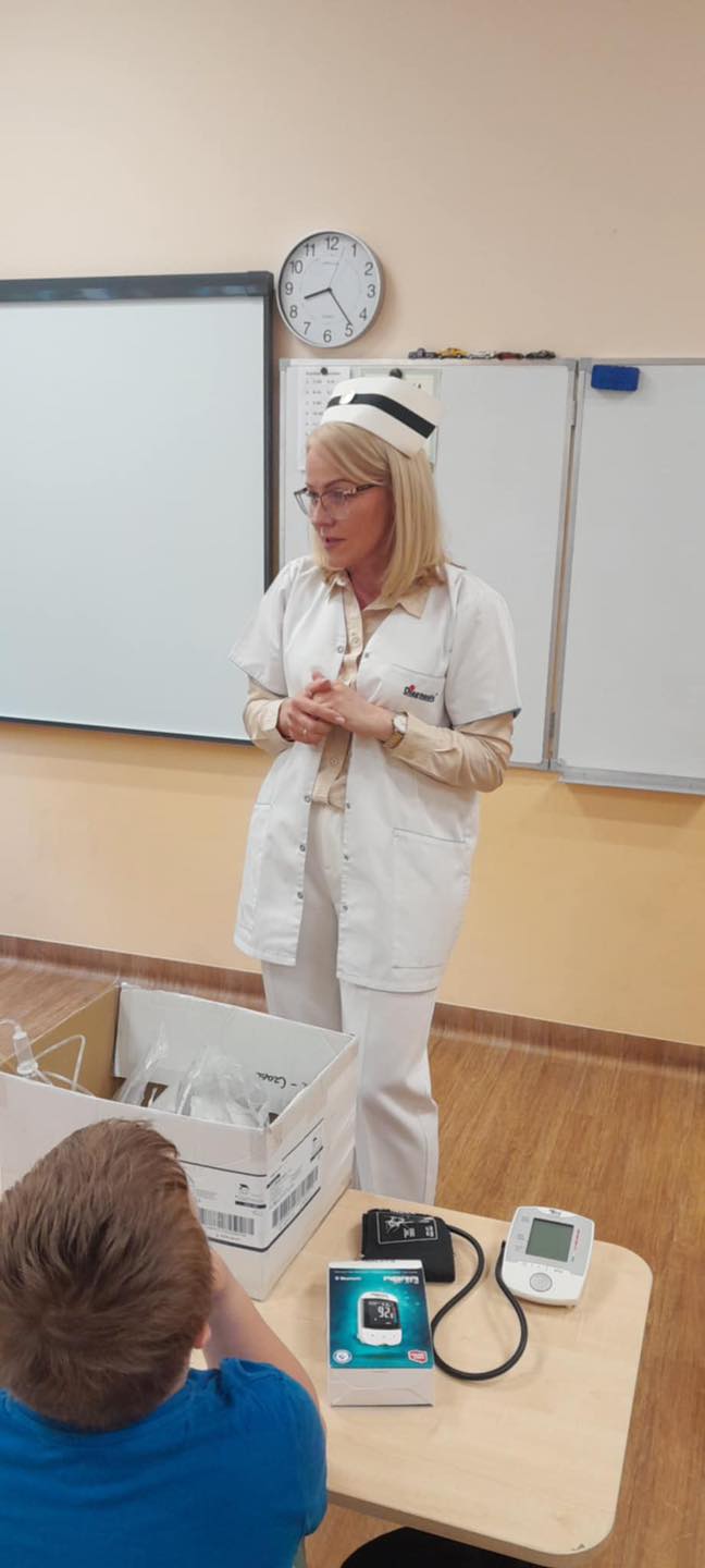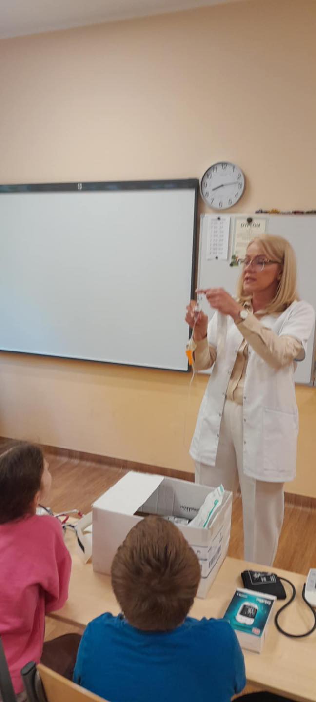 4 czerwca uczniów klasy 3 odwiedziła pielęgniarka szkolna Pani Anna Orzeszyna ubrana w biały fartuch ciekawie opowiadała o swojej pracy, codziennych obowiązkach oraz o tym, czym zajmuje się pielęgniarka w przychodni i szpitalu. Uczniowie mieli okazję zobaczyć różnego rodzaju przyrządy medyczne potrzebne do pracy w tym zawodzie. Dzieci zadawały pytania i z zainteresowaniem słuchały odpowiedzi. Pani Ania omówiła także następujące zagadnienie: Hałas a zdrowie człowieka i wyjaśniła, jak należy dbać o uszy, aby dobrze słyszeć, a następnie zorganizowała debatę wśród uczniów na temat: Jak zmniejszyć hałas na przerwach – nasze pomysły. Uczniowie podawali następujące przykłady, m.in. Strefa ciszy, Biblioteka szkolna przyjacielem ciszy, Szkolny przyjaciel ciszy to ja. Spotkanie było ciekawe i bardzo pouczające oraz stało się doskonałą okazją, by docenić zawód pielęgniarki i przypomnieć sobie, jak ważne jest dbanie o zdrowie.