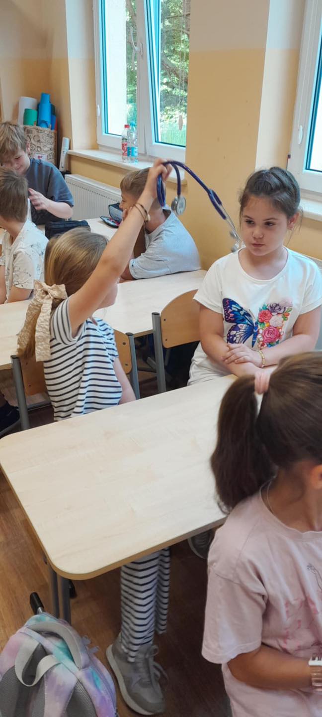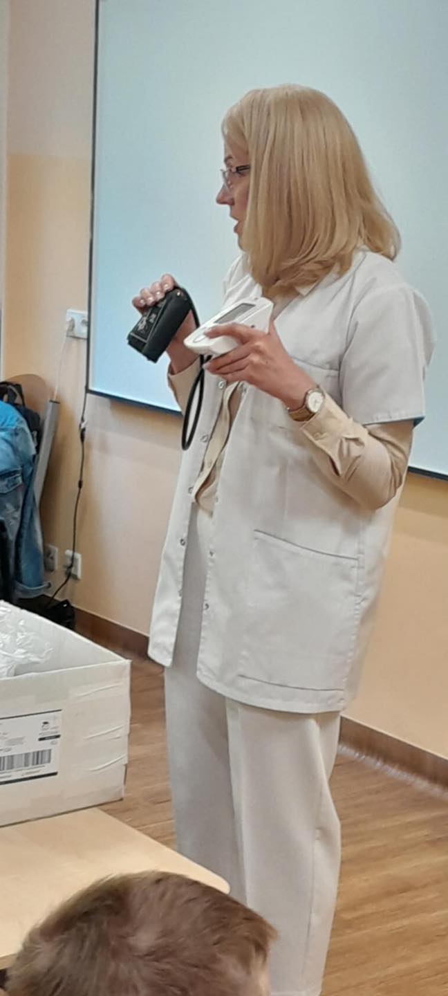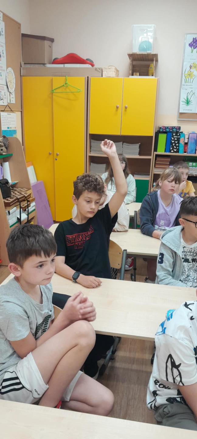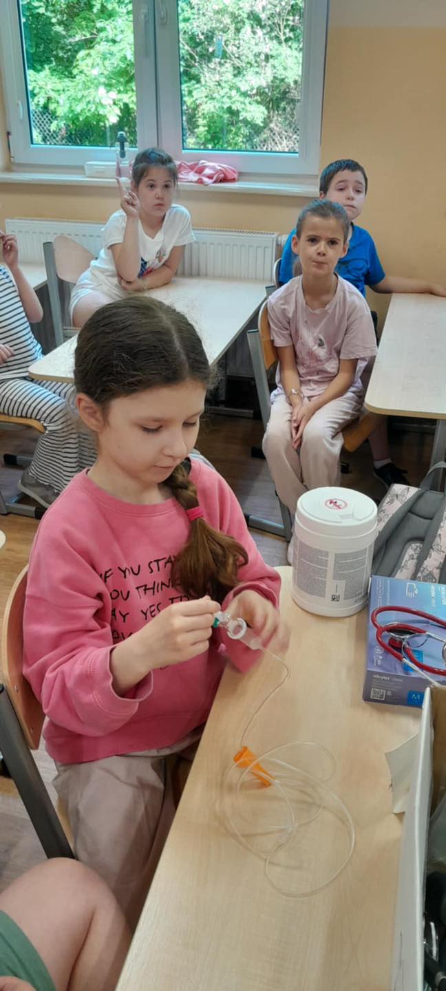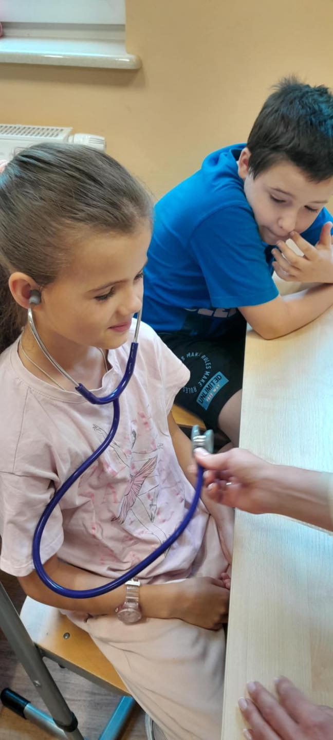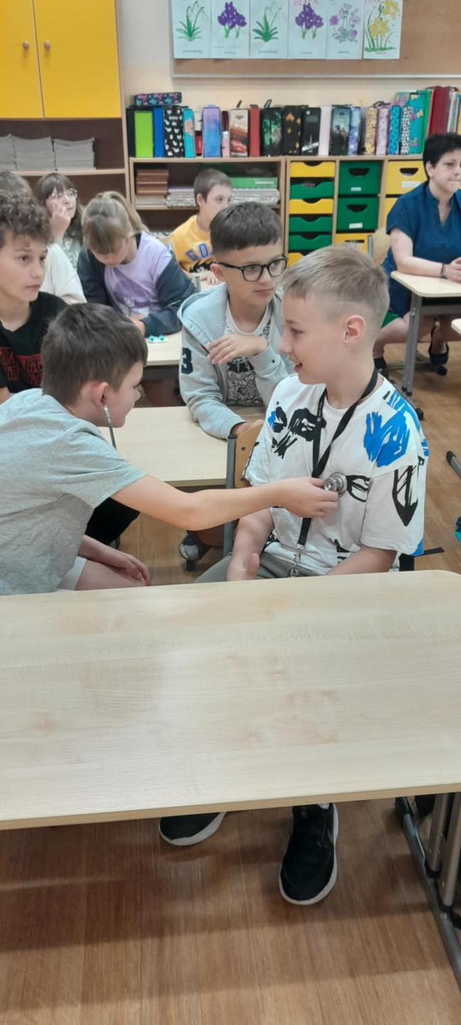 4 czerwca uczniów klasy 3 odwiedziła pielęgniarka szkolna Pani Anna Orzeszyna ubrana w biały fartuch ciekawie opowiadała o swojej pracy, codziennych obowiązkach oraz o tym, czym zajmuje się pielęgniarka w przychodni i szpitalu. Uczniowie mieli okazję zobaczyć różnego rodzaju przyrządy medyczne potrzebne do pracy w tym zawodzie. Dzieci zadawały pytania i z zainteresowaniem słuchały odpowiedzi. Pani Ania omówiła także następujące zagadnienie: Hałas a zdrowie człowieka i wyjaśniła, jak należy dbać o uszy, aby dobrze słyszeć, a następnie zorganizowała debatę wśród uczniów na temat: Jak zmniejszyć hałas na przerwach – nasze pomysły. Uczniowie podawali następujące przykłady, m.in. Strefa ciszy, Biblioteka szkolna przyjacielem ciszy, Szkolny przyjaciel ciszy to ja. Spotkanie było ciekawe i bardzo pouczające oraz stało się doskonałą okazją, by docenić zawód pielęgniarki i przypomnieć sobie, jak ważne jest dbanie o zdrowie.