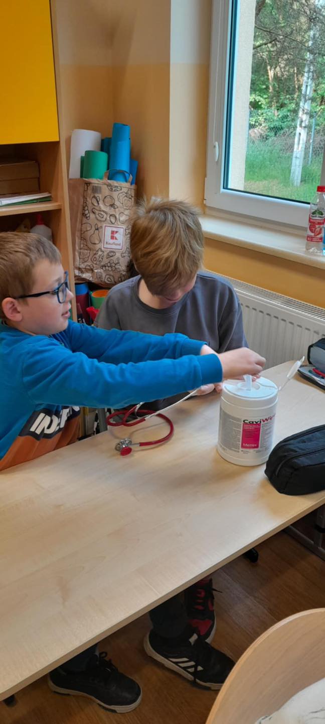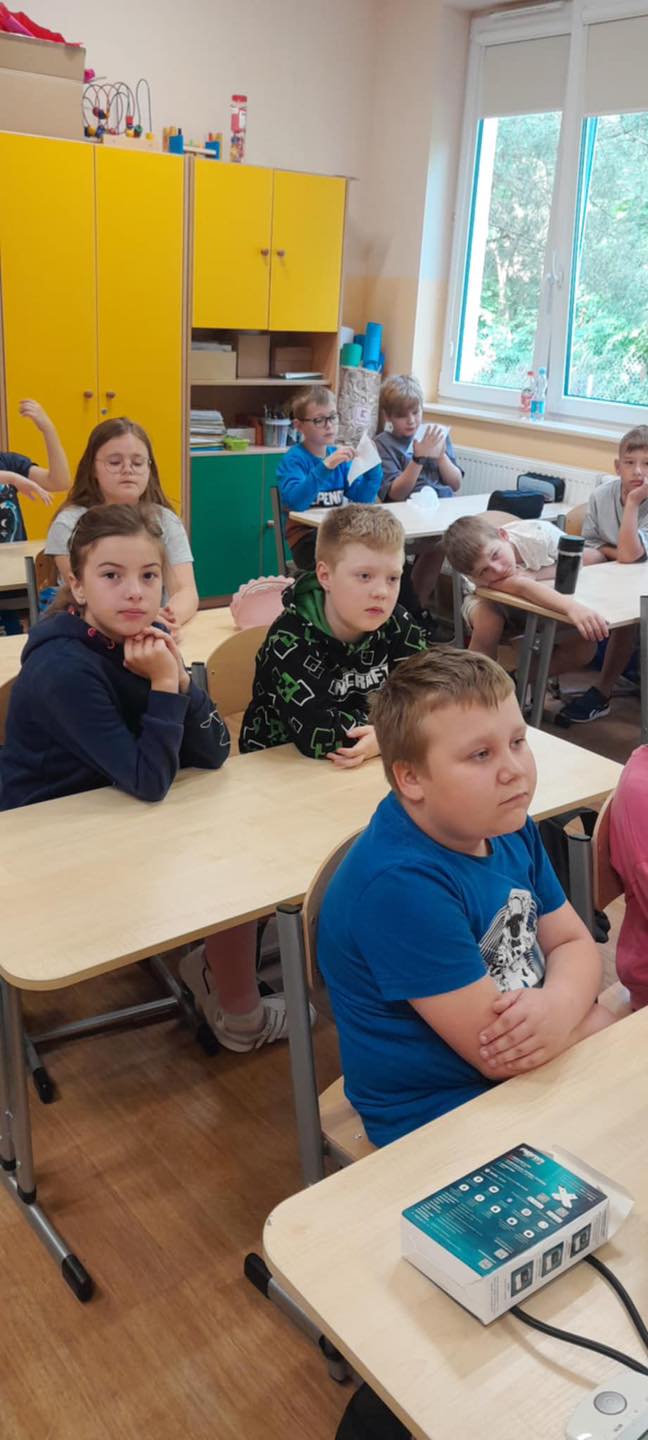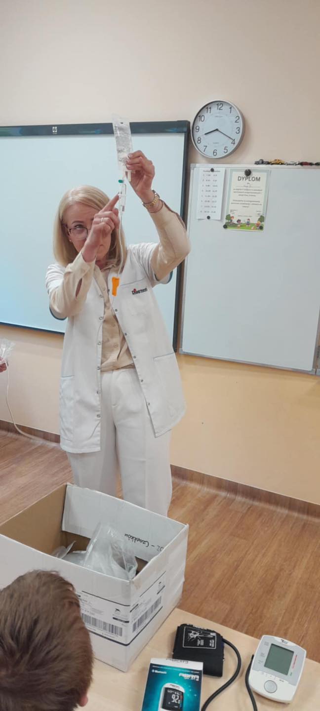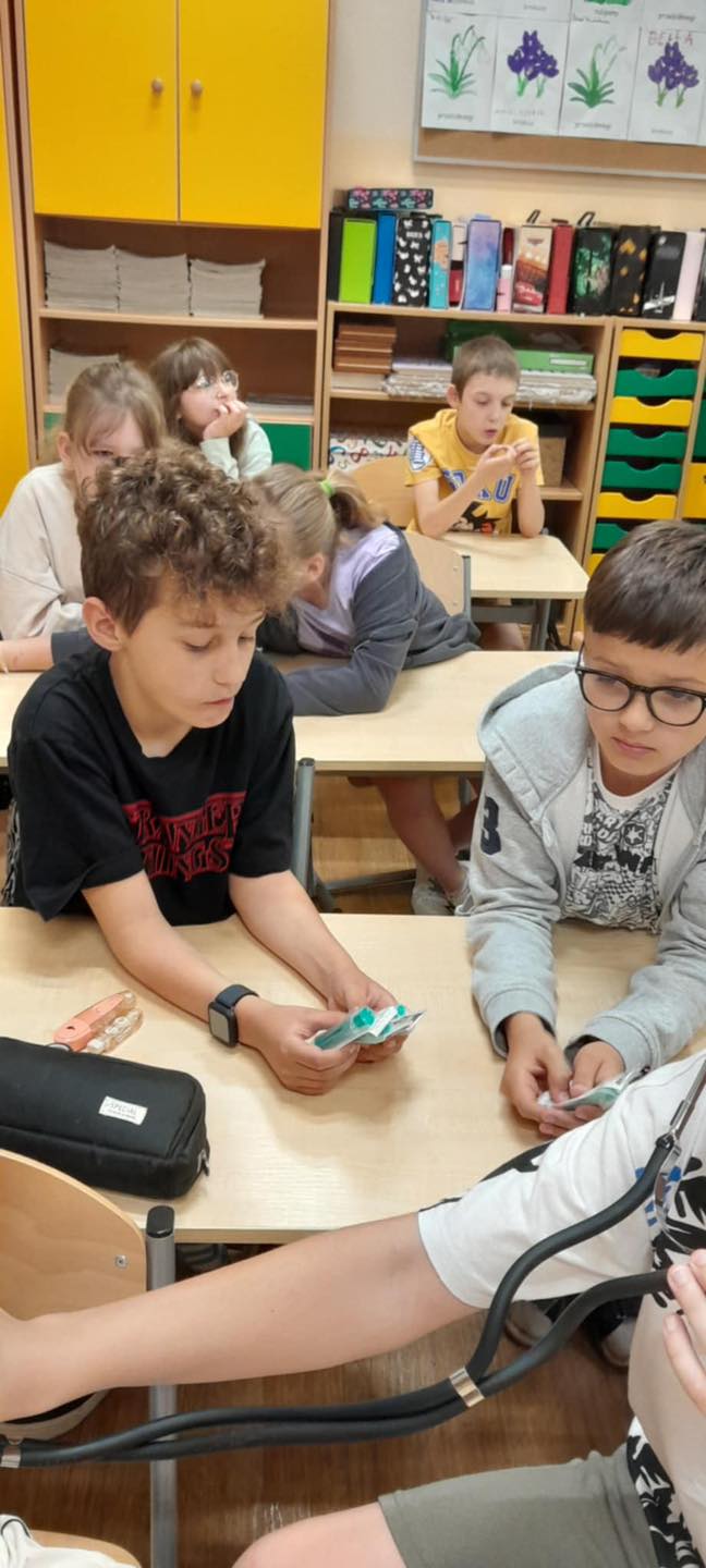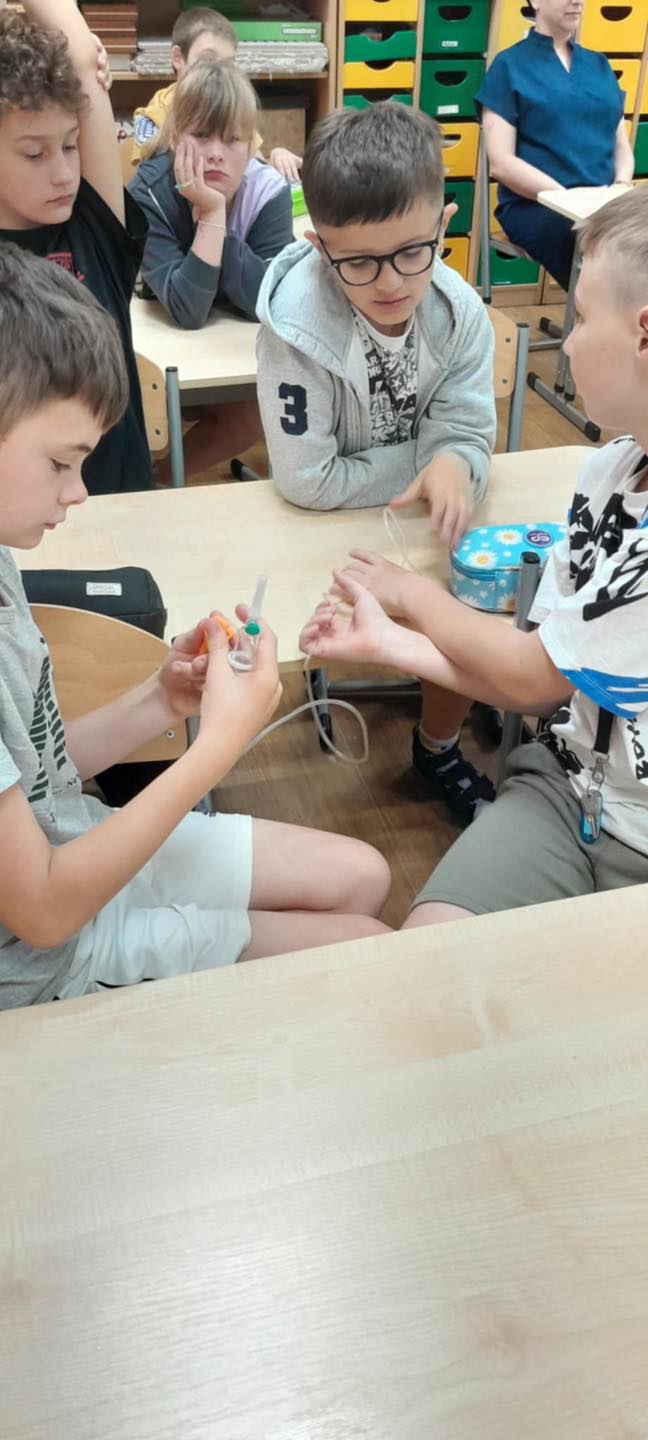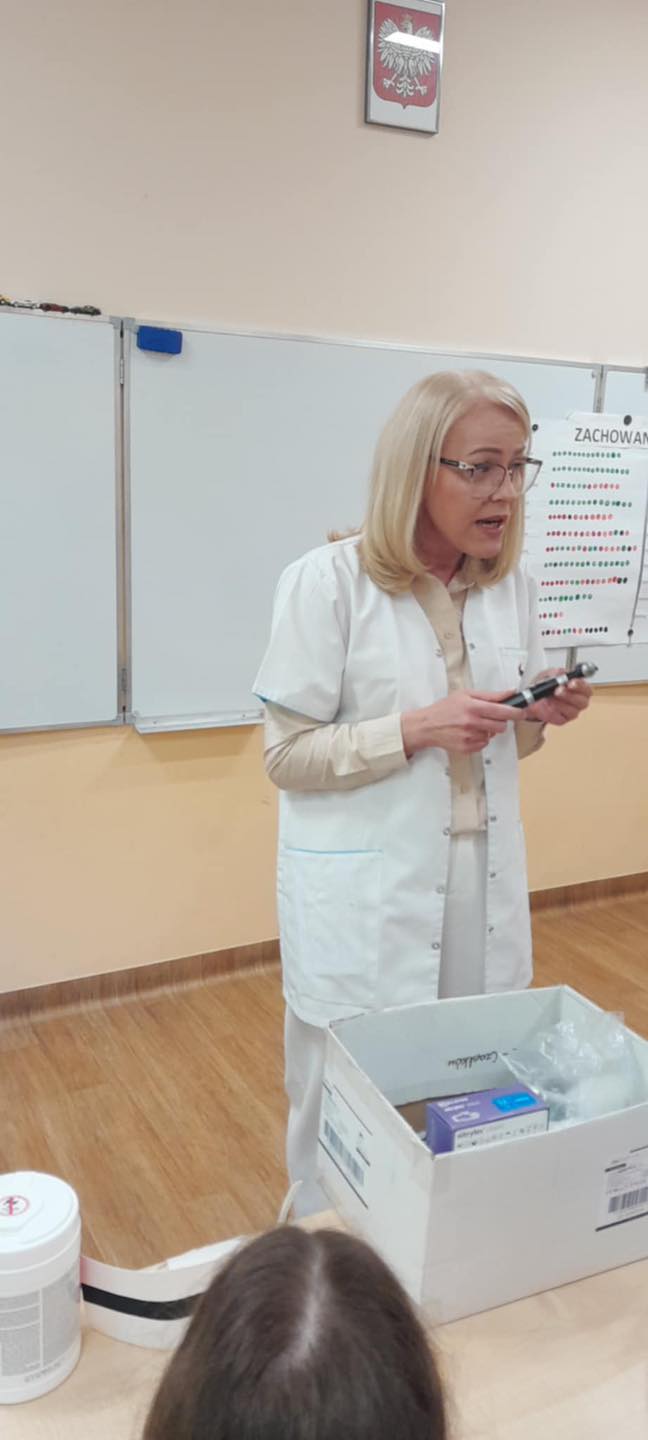 4 czerwca uczniów klasy 3 odwiedziła pielęgniarka szkolna Pani Anna Orzeszyna ubrana w biały fartuch ciekawie opowiadała o swojej pracy, codziennych obowiązkach oraz o tym, czym zajmuje się pielęgniarka w przychodni i szpitalu. Uczniowie mieli okazję zobaczyć różnego rodzaju przyrządy medyczne potrzebne do pracy w tym zawodzie. Dzieci zadawały pytania i z zainteresowaniem słuchały odpowiedzi. Pani Ania omówiła także następujące zagadnienie: Hałas a zdrowie człowieka i wyjaśniła, jak należy dbać o uszy, aby dobrze słyszeć, a następnie zorganizowała debatę wśród uczniów na temat: Jak zmniejszyć hałas na przerwach – nasze pomysły. Uczniowie podawali następujące przykłady, m.in. Strefa ciszy, Biblioteka szkolna przyjacielem ciszy, Szkolny przyjaciel ciszy to ja. Spotkanie było ciekawe i bardzo pouczające oraz stało się doskonałą okazją, by docenić zawód pielęgniarki i przypomnieć sobie, jak ważne jest dbanie o zdrowie.