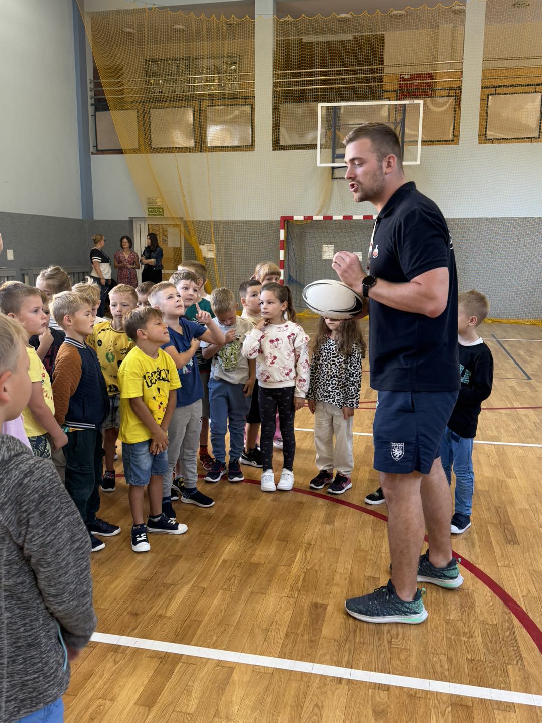 Zajecia pokazowe z rugby były doskonałą okazją, by wspierać aktywność fizyczną uczniów.